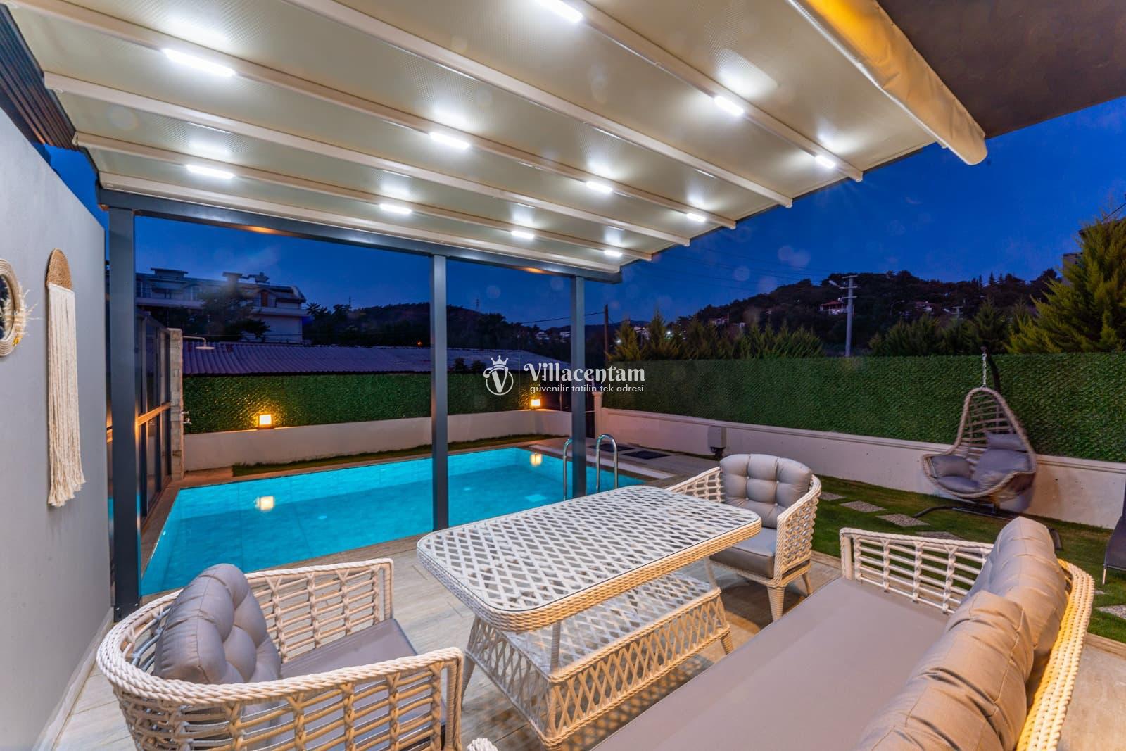 Bu villa 3 yatak odası ve 6 kişilik konaklama kapasitesi ile aileler ve arkadaş grupları için ideal bir tatil seçeneğidir.