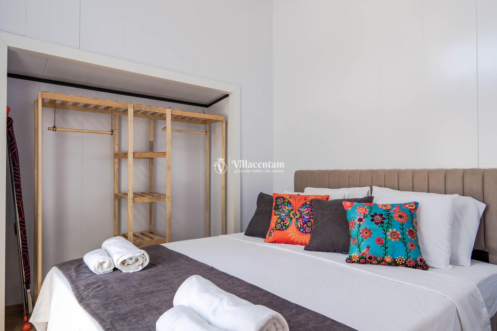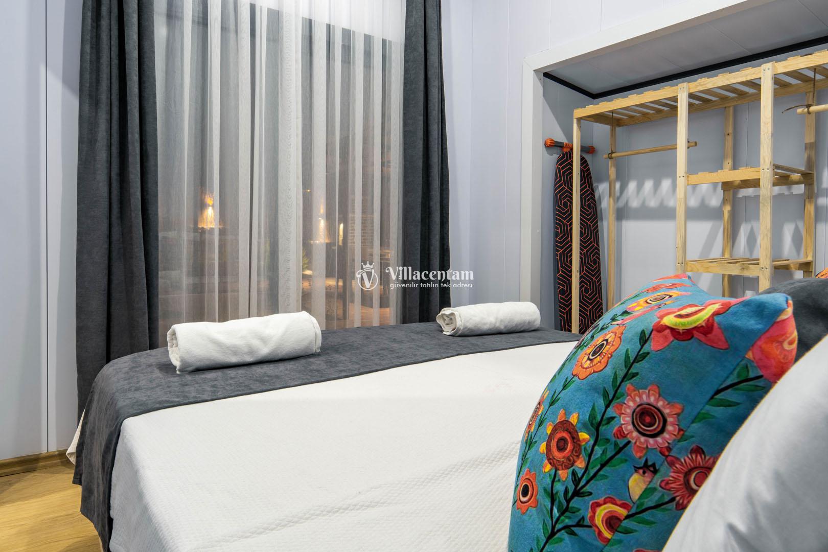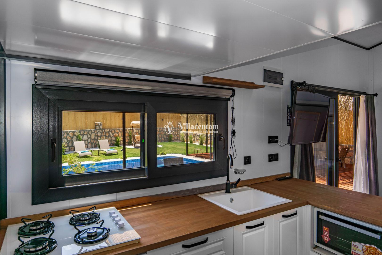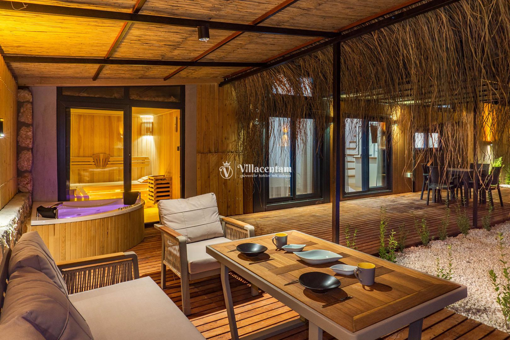 *Villalarda sıcak su için güneş enerjili su ısıtma sistemleri kullanılmaktadır. Çok yoğun sıcak su kullanımında, yoğunluğa ve su tankının büyüklüğüne bağlı olarak su tankında sıcak su tükenebilmekte ve tekrar suyun ısınması için belirli bir süre geçmesi gerekmektedir. Bu not sadece bu villa ile ilgili değil, tüm villalarımız için geçerli bir durumdur