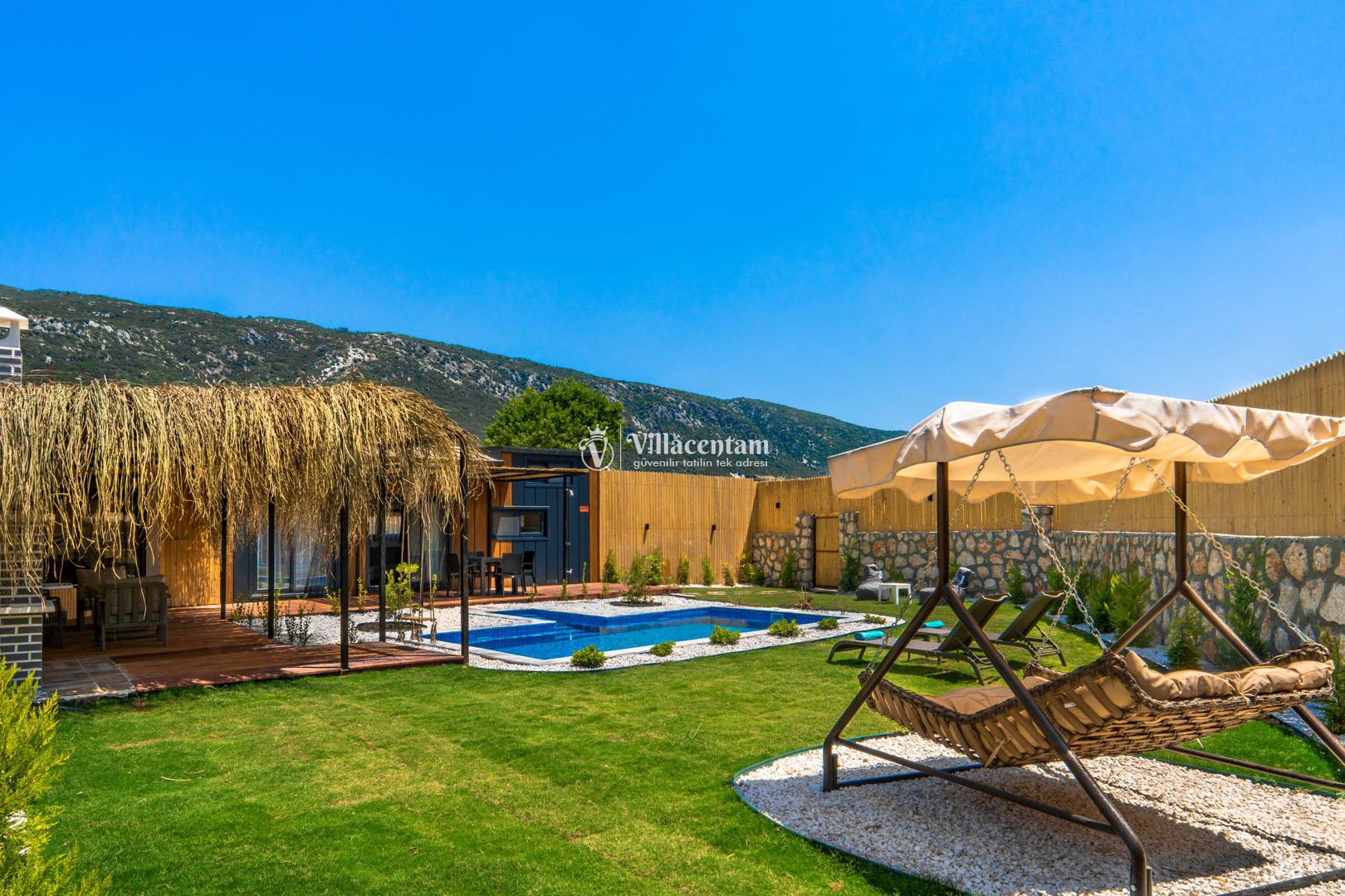 Villa Perlas, Kalkan Sarıbelen mevkiinde konumlanmakta olan yeşilliklerle kaplı doğa manzarasına hakim kiralık villalarımız arasında yer almaktadır. Modern ve konforlu bir şekilde dekore edilen yazlık villamızda 2 adet yatak odası bulunmakta olup, 4 kişiye konaklama imkanı sağlamaktadır. Havuz terasında tüm yılın vermiş olduğu yorgunluğu giderebileceğiniz jakuzi bulunmaktadır. Balayı çiftlerimiz ve çekirdek ailelere hitap eden kiralık villamızın havuz ve havuz terası korunaklı hale getirilmiştir. Dışarıdan bir kimse tarafından görülmemektedir. Sessizlik ve sakinlik içerisinde huzurlu bir yazlık villada tatil düşünen misafirlerimiz Villa Perlas' ı tercih edebilirler.
