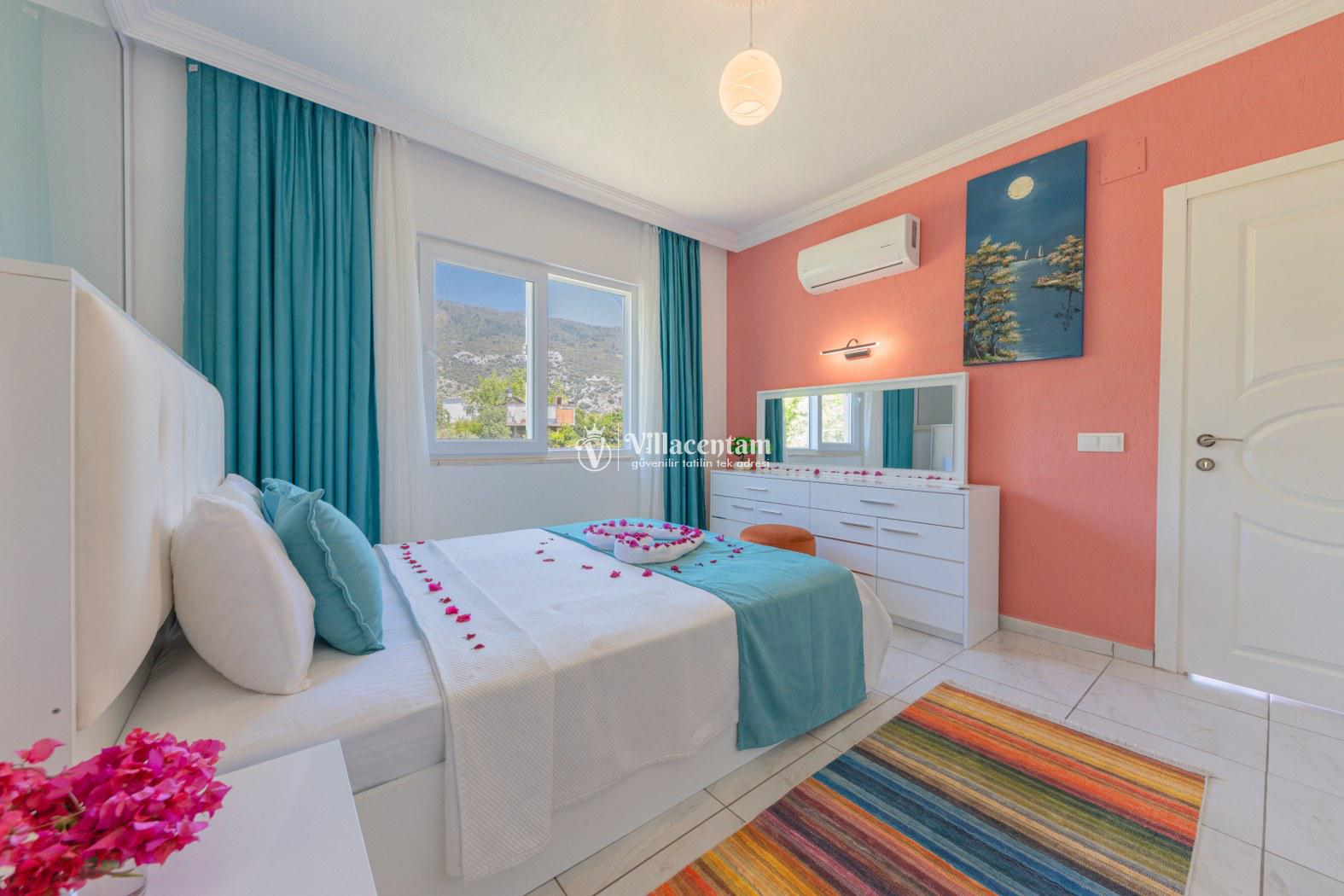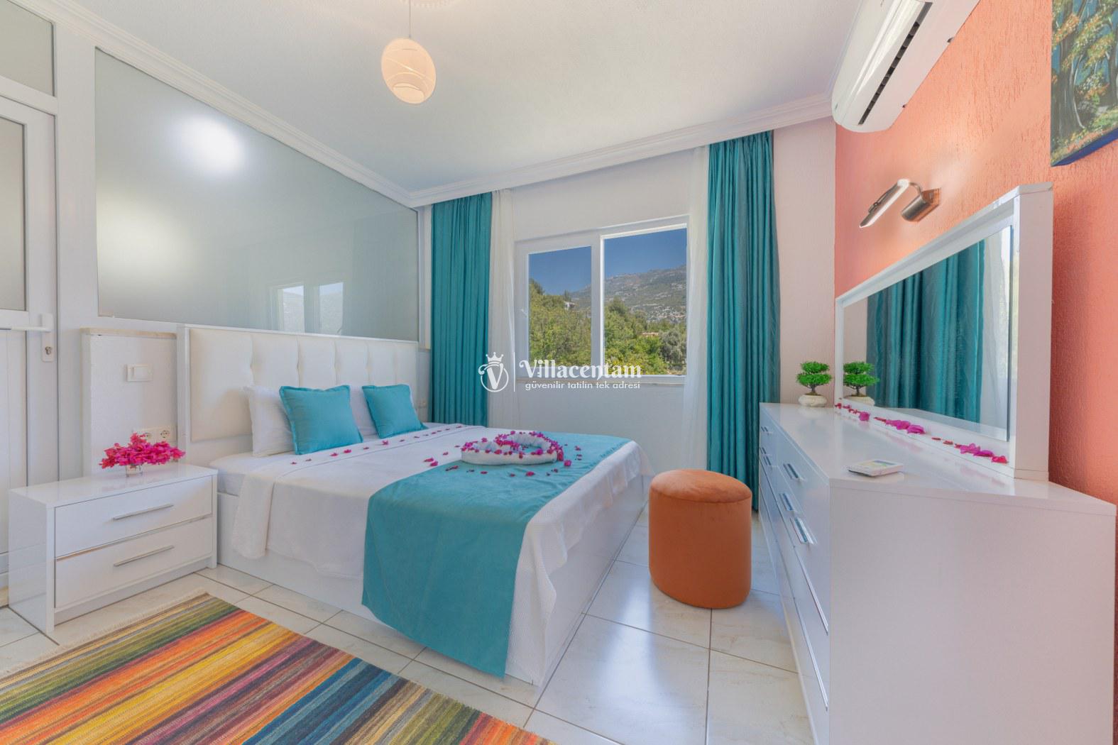Villa Platinum, Kalkan İslamlar köyünde konumlanmakta olan doğa manzarasına hakim kiralık villalarımız arasında yer almaktadır. Şık ve konforlu bir şekilde dekore edilen yazlık villamızda 2 adet yatak odası bulunmakta olup, 4 kişiye konaklama imkanı sunmaktadır. Villamızın havuz terasında tüm yılın vermiş olduğu yorgunluğu giderebileceğiniz jakuzi yer almaktadır. Bol oksijenli doğaya sahip kiralık villamızda uzun uzun kahvaltı keyifleri yapabilir, akşam yemeklerinizin tadını çıkarabilirsiniz. Sevdiklerinizle birlikte hayallerinizin de ötesinde muhteşem bir yazlık villada tatil için Villa Platinum’ u tercih edebilirsiniz.