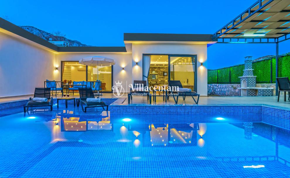 Villa Porte 4, Kalkan Bezirgan köyünde konumlanmakta olan yeşilliklerle kaplı doğa manzarasına hakim kiralık villalarımız arasında yer almaktadır. Şık ve konforlu bir şekilde konumlanmakta olan yazlık villamızda 2 adet yatak odası bulunmakta olup, 5 kişiye konaklama imkanı sağlamaktadır. Havuz ve havuz terası korunaklı olan kiralık villamızı muhafazakar aileler, balayı çiftleri rahatlıkla tercih edebilirler. Ayrıca dış özel yüzme havuzuna entegre sığ havuz yer almaktadır. Tüm gözlerden uzakta sessizlik ve sakinlik içerisinde huzur dolu bir yazlık villada tatili için Villa Porte 4’ ü tercih edebilirsiniz.
