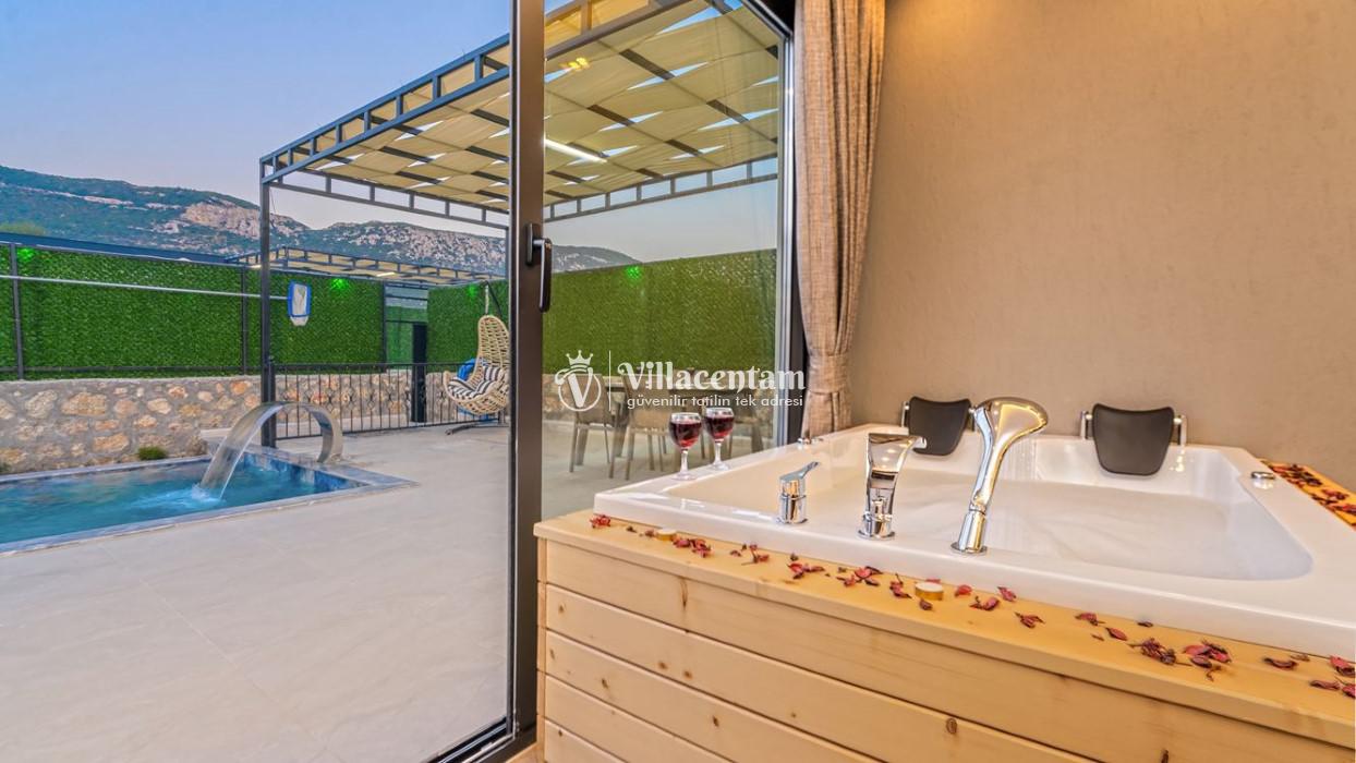 Kalkan’ın doğayla iç içe ve huzurlu atmosferiyle öne çıkan Bezirgan bölgesinde konumlanan Villa Porte 6, 2 yatak odası ve 4 kişilik konaklama kapasitesiyle özellikle çekirdek aileler ve balayı çiftleri için ideal bir tatil seçeneği sunmaktadır. Doğa manzaralı konumu, sakin yapısı ve modern detaylarla donatılmış yaşam alanları sayesinde şehir hayatının yoğun temposundan uzaklaşmak isteyen misafirler için konforlu ve keyifli bir konaklama imkânı sağlar.