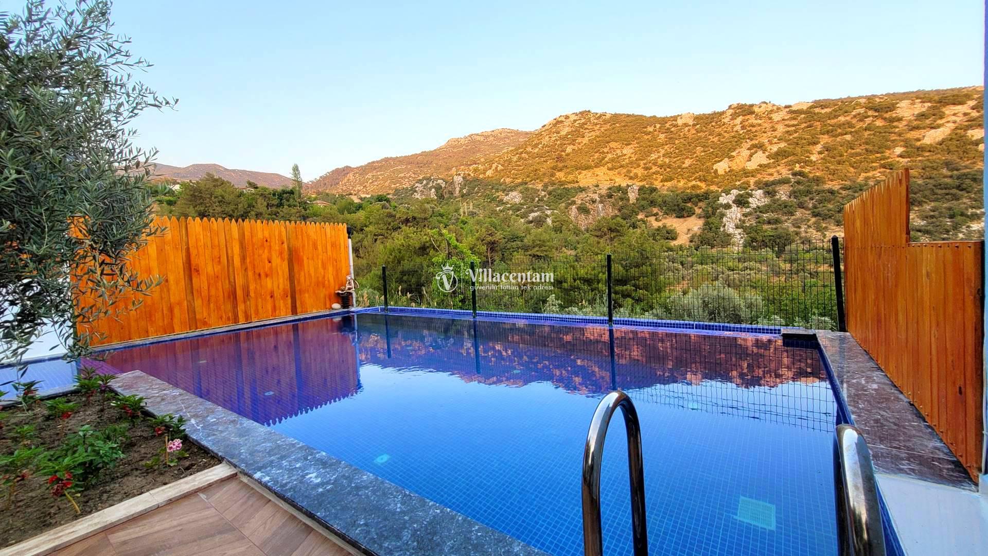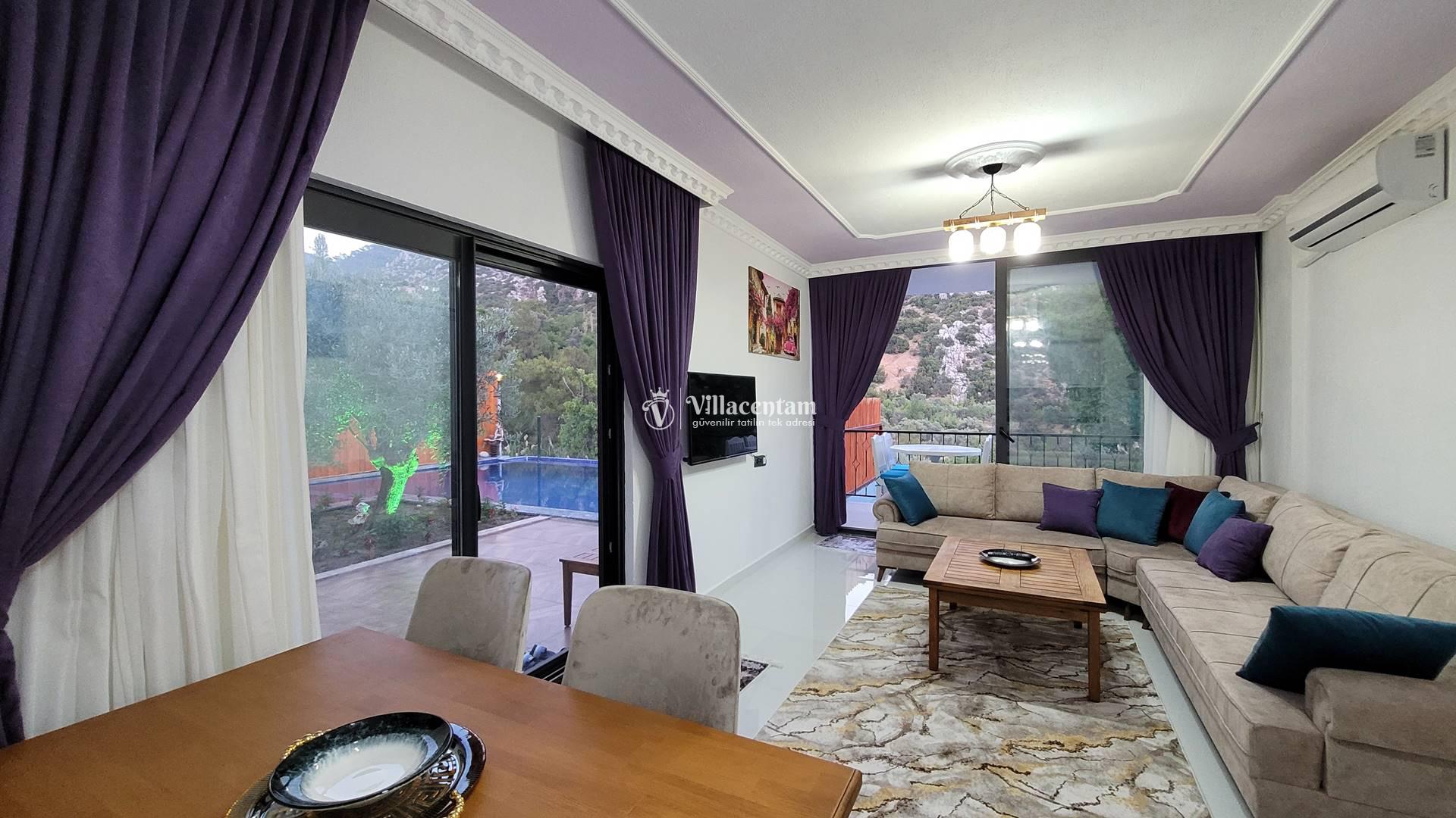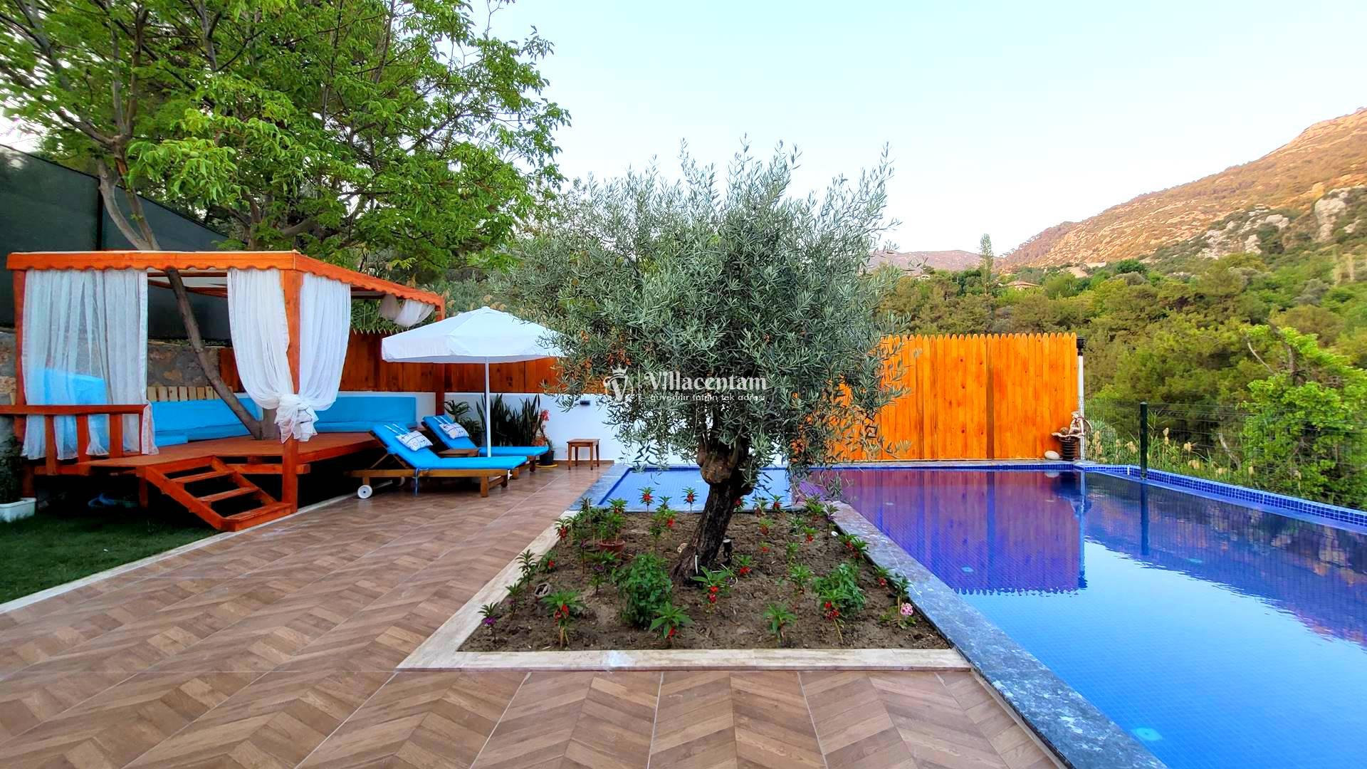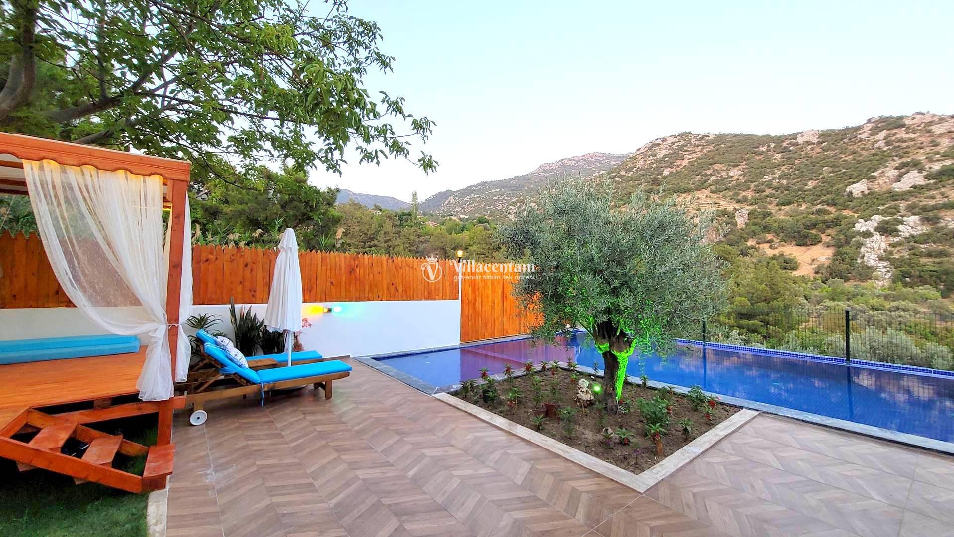 Villa Rayna, Kalkan’ın İslamlar bölgesinde, yemyeşil doğa içinde konumlanan ve özellikle çiftlere hitap eden şık bir tatil villasıdır. 2 kişilik konaklama kapasitesi, 1 yatak odası ve 1 banyosu ile balayı çiftleri ve sakin, huzurlu bir tatil arayan misafirler için ideal bir seçenek sunar. Villanın korunaklı özel yüzme havuzu dışarıdan görünmeyen yapısıyla mahremiyet sağlarken, jakuzisi ve geniş bahçesi konaklamaya ekstra konfor katar. Şömine, veranda, internet bağlantısı, barbekü alanı ve deniz manzarası gibi detaylarla öne çıkan Villa Rayna, hem dinlenmek hem de doğayla iç içe keyifli bir Kalkan tatili geçirmek isteyen misafirler için oldukça cazip bir alternatiftir. Ayrıca markete ve restorana kısa mesafede, Kalkan merkeze ise araçla kolay ulaşılabilir konumda bulunması da önemli bir avantaj sağlar.