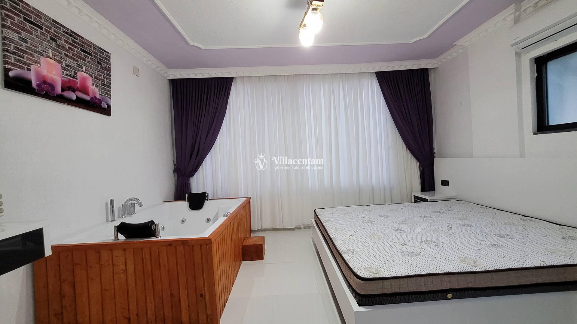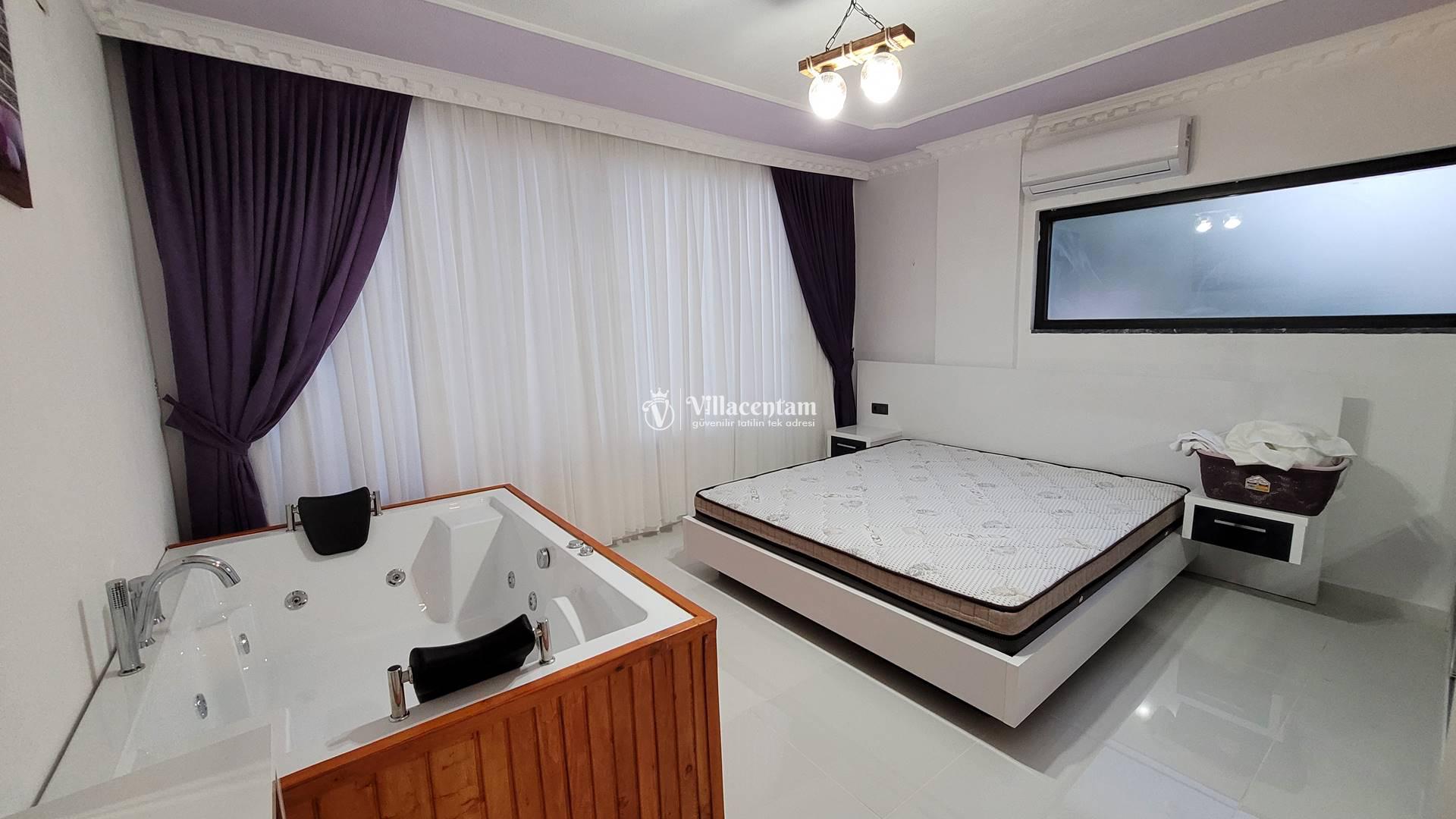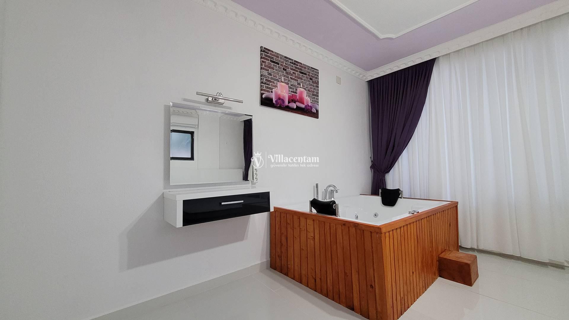 *Villalarda sıcak su için güneş enerjili su ısıtma sistemleri kullanılmaktadır. Çok yoğun sıcak su kullanımında, yoğunluğa ve su tankının büyüklüğüne bağlı olarak su tankında sıcak su tükenebilmekte ve tekrar suyun ısınması için belirli bir süre geçmesi gerekmektedir. Bu not sadece bu villa ile ilgili değil, tüm villalarımız için geçerli bir durumdur.