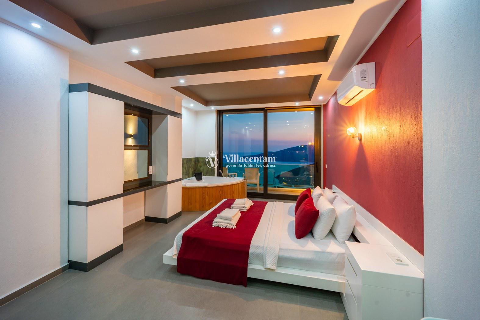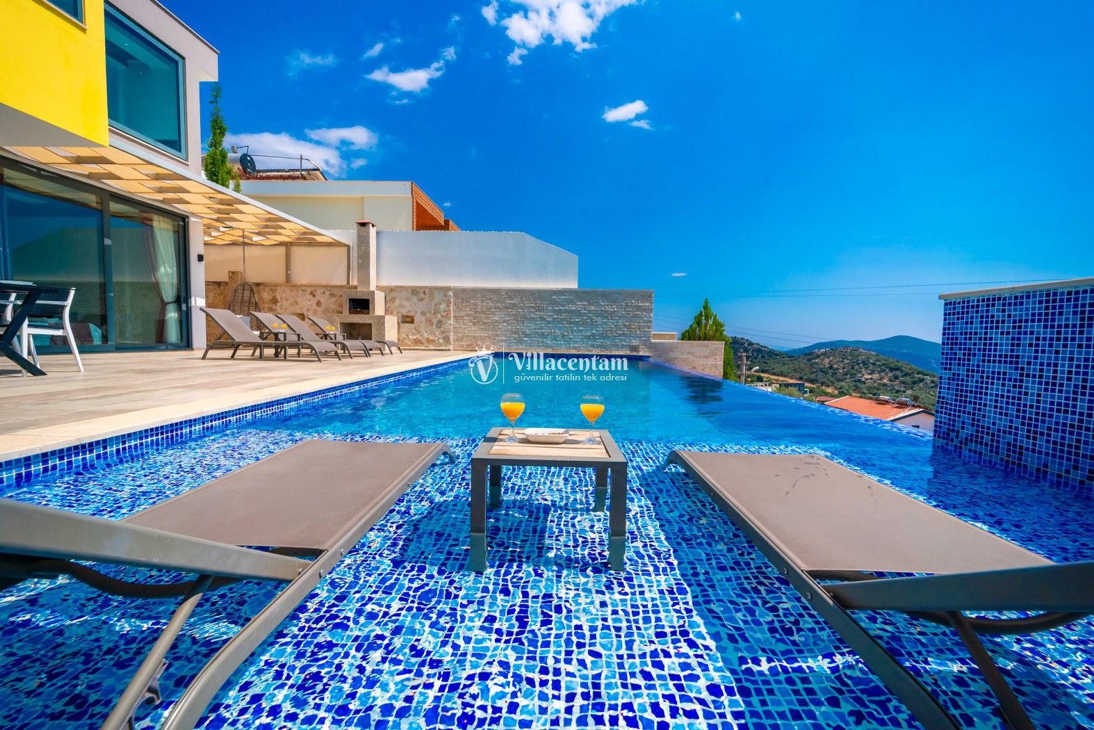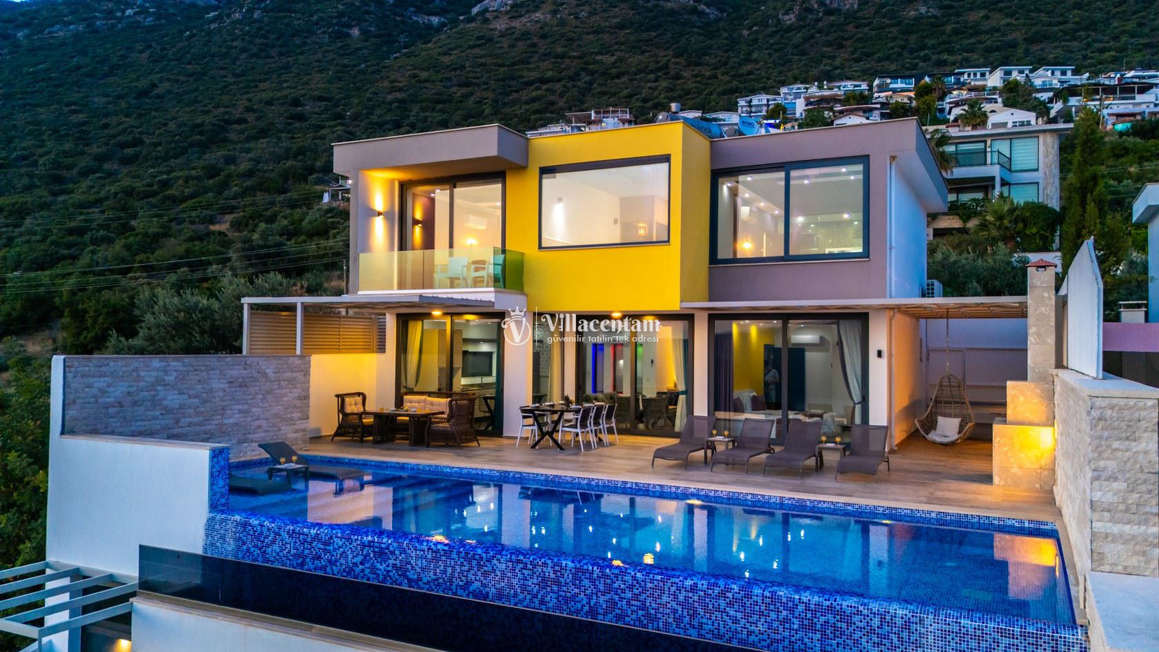 Kalkan Kördere mevkiinde konumlanmakta olan Villa Retro, muhteşem deniz ve doğa manzarasına sahip kiralık villalarımız arasında yer almaktadır. Modern ve konforlu bir şekilde dekore edilen yazlık villamızda 3 adet yatak odası bulunmakta olup, 6 kişiye konaklama imkanı sağlamaktadır. 2 adet yatak odasının içerisinde tüm yılın vermiş olduğu yorgunluğu atabileceğiniz jakuzi yer almaktadır. Havuz ve havuz terası korunaklı hale getirilen yazlık villamızı balayı çiftleri, muhafazakar aileler ve arkadaş grupları tercih edebilirler. Her bir detayın siz değerli misafirlerimiz için özenle hazırlanıldığı yazlık villamızda kapalı ısıtma havuzu ve sauna bulunmaktadır. Ferah ve donanımlı havuz terasınızda güneşlenebilir, havuzunuza girebilir, yeme içme keyfini en güzel hale getirebilirsiniz. Ayrıca özel yüzme havuzunda sığ havuz bulunan villamızı çocuklu aileler tercih edebilirler. Sessizlik ve sakinlik içerisinde huzur dolu bir yazlık villada tatil için Villa Retro’yu tercih edebilirsiniz.