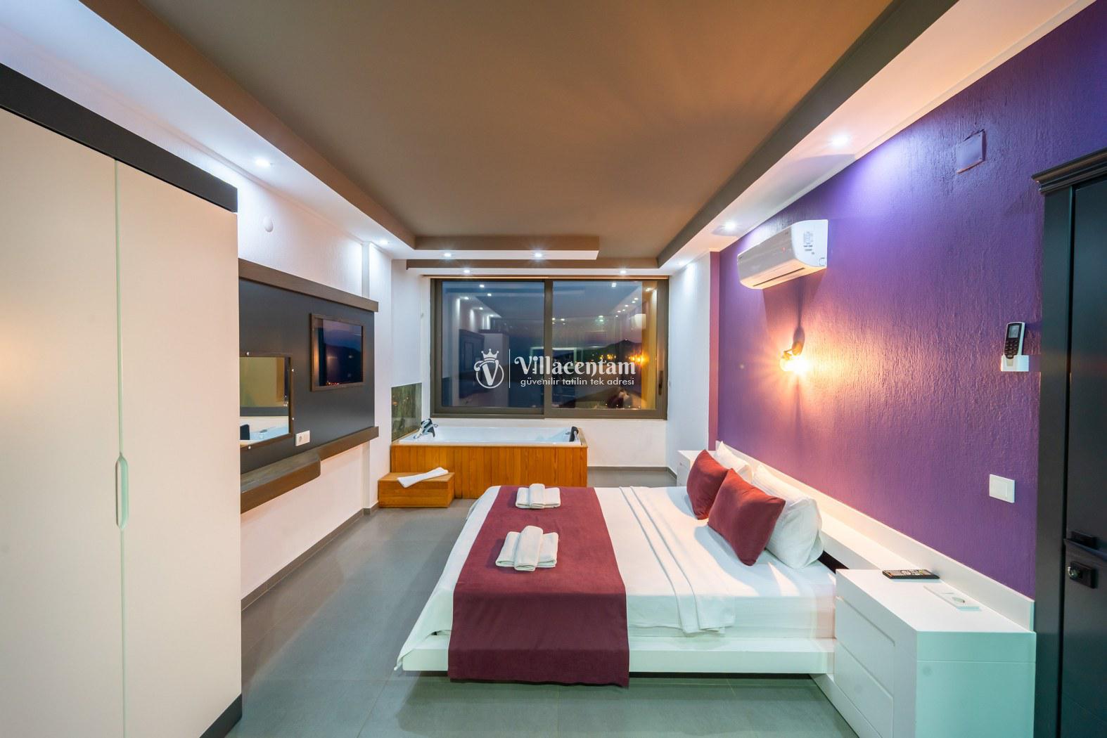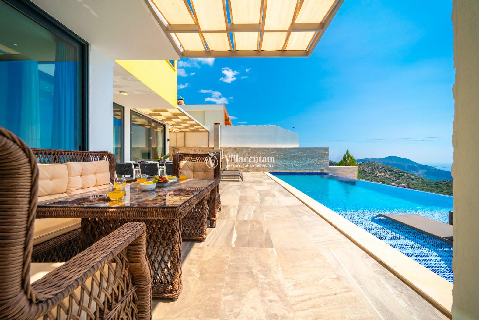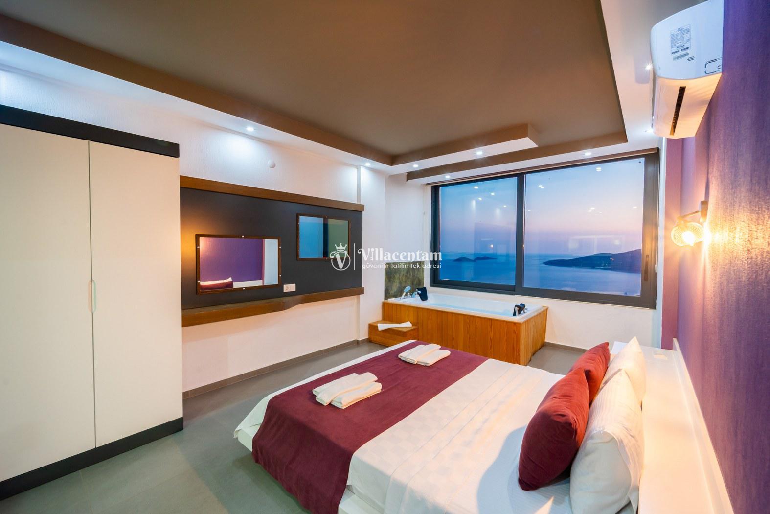 Kalkan Kördere mevkiinde konumlanmakta olan Villa Retro, muhteşem deniz ve doğa manzarasına sahip kiralık villalarımız arasında yer almaktadır. Modern ve konforlu bir şekilde dekore edilen yazlık villamızda 3 adet yatak odası bulunmakta olup, 6 kişiye konaklama imkanı sağlamaktadır. 2 adet yatak odasının içerisinde tüm yılın vermiş olduğu yorgunluğu atabileceğiniz jakuzi yer almaktadır. Havuz ve havuz terası korunaklı hale getirilen yazlık villamızı balayı çiftleri, muhafazakar aileler ve arkadaş grupları tercih edebilirler. Her bir detayın siz değerli misafirlerimiz için özenle hazırlanıldığı yazlık villamızda kapalı ısıtma havuzu ve sauna bulunmaktadır. Ferah ve donanımlı havuz terasınızda güneşlenebilir, havuzunuza girebilir, yeme içme keyfini en güzel hale getirebilirsiniz. Ayrıca özel yüzme havuzunda sığ havuz bulunan villamızı çocuklu aileler tercih edebilirler. Sessizlik ve sakinlik içerisinde huzur dolu bir yazlık villada tatil için Villa Retro’yu tercih edebilirsiniz.