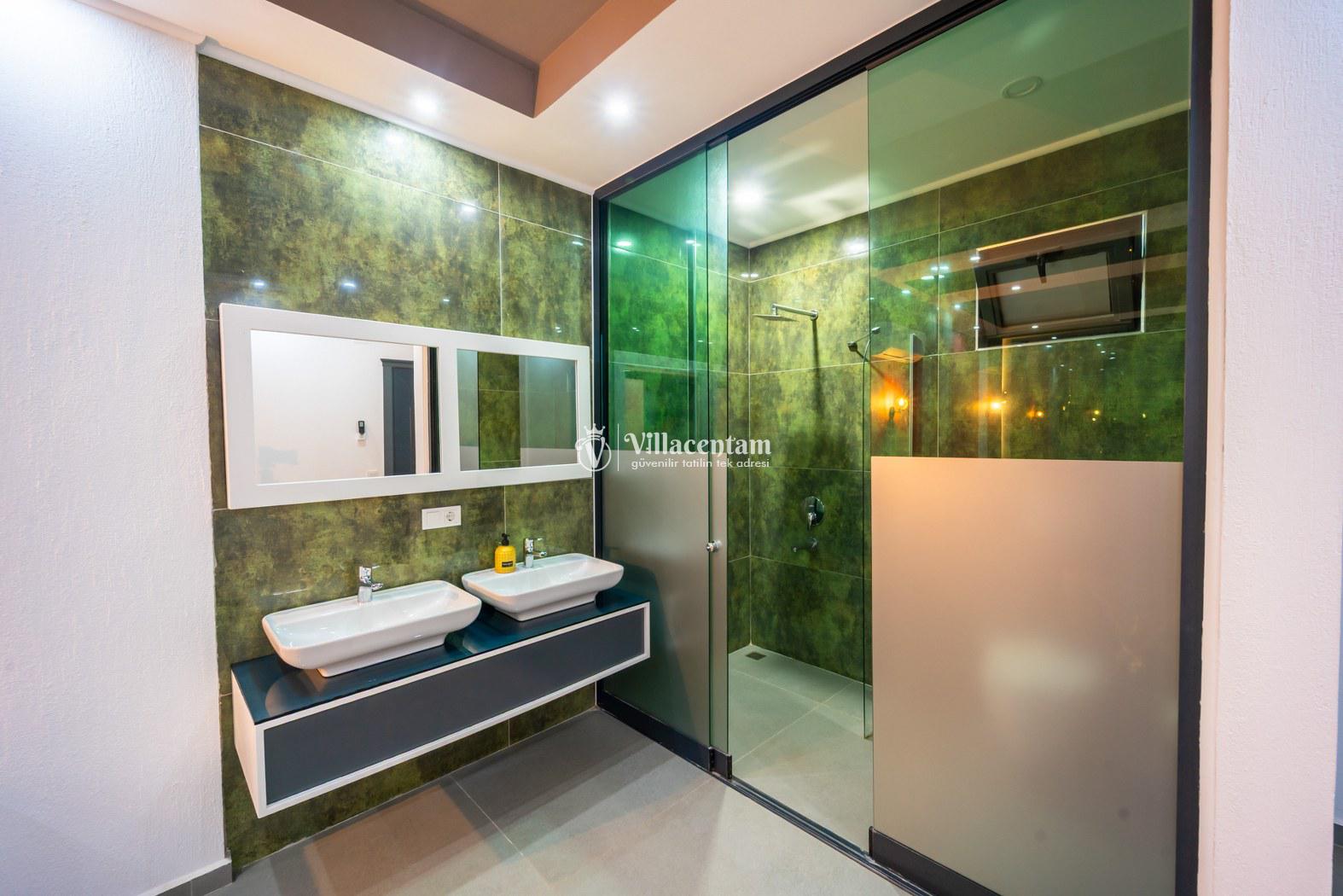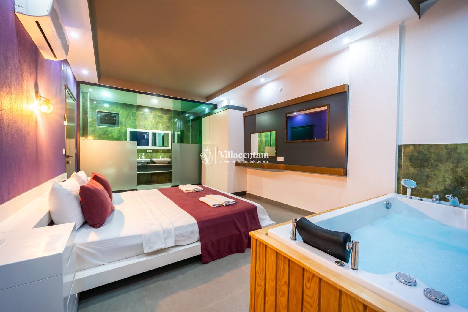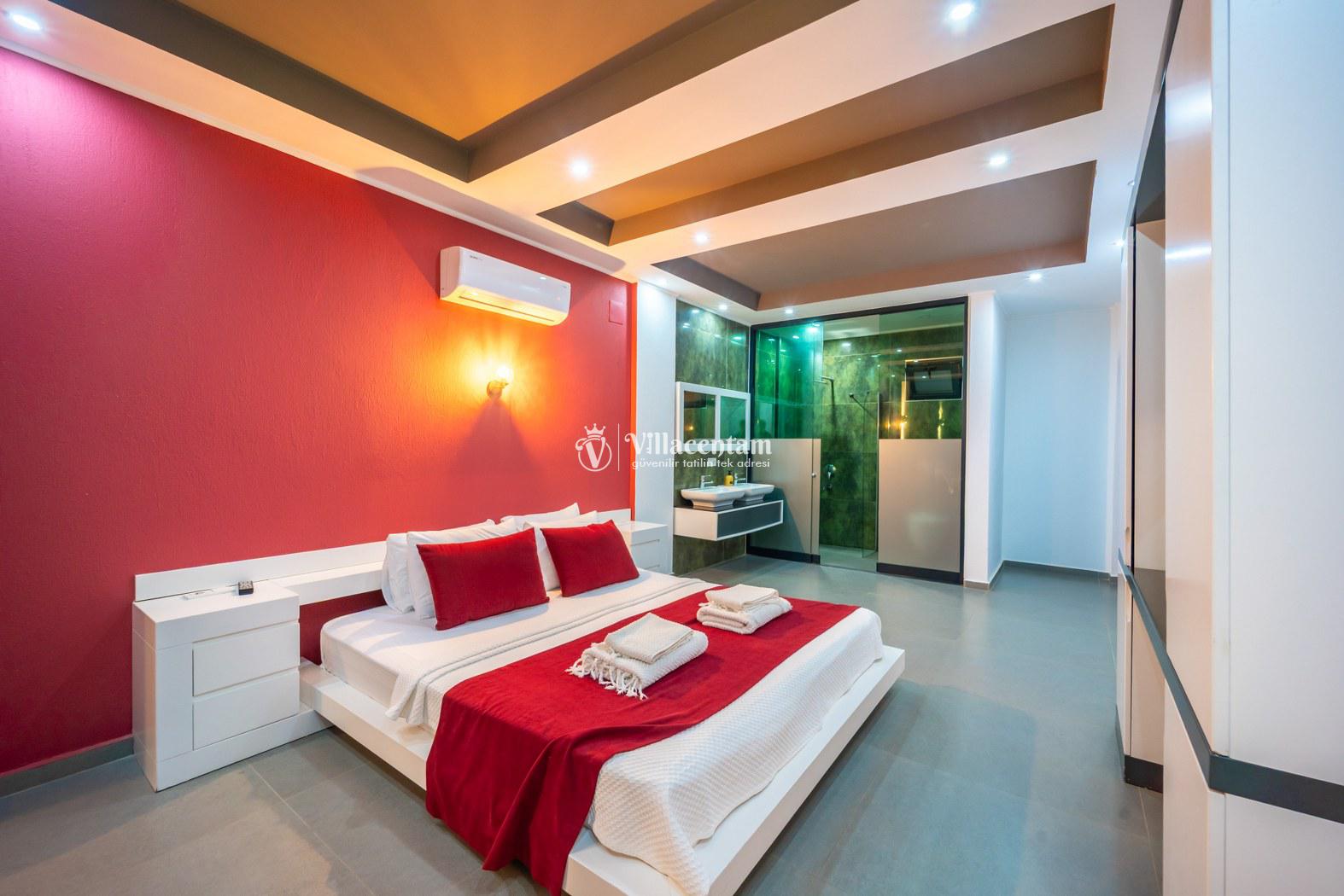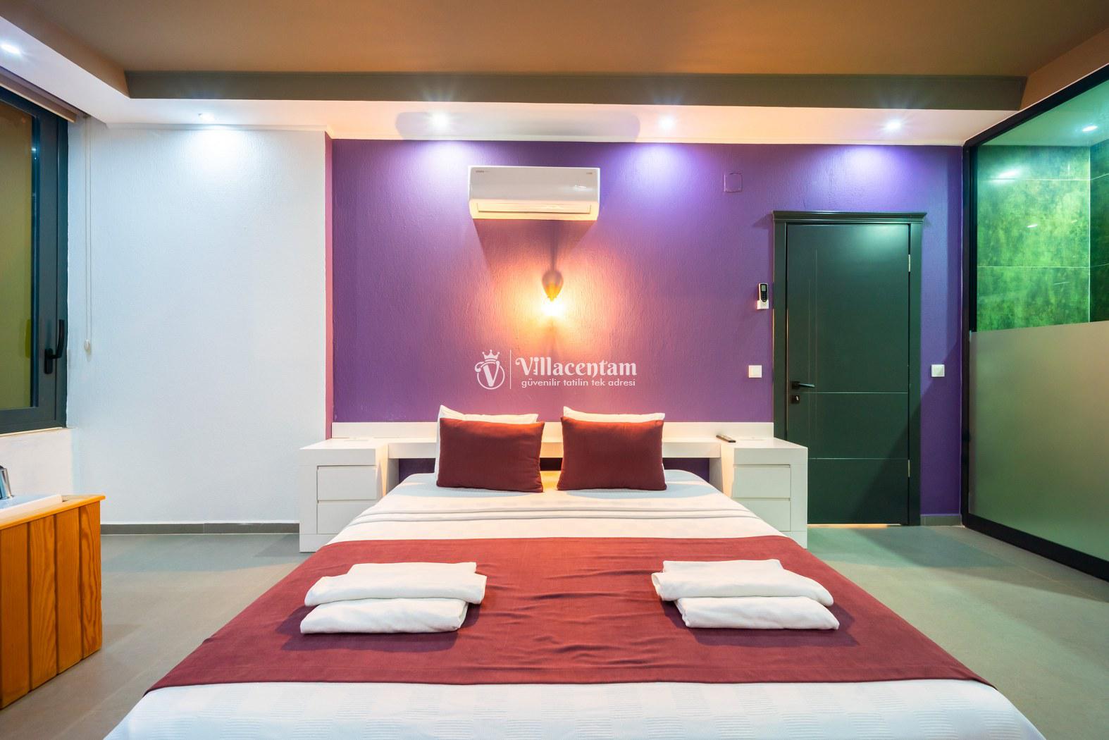 *Villalarda sıcak su için güneş enerjili su ısıtma sistemleri kullanılmaktadır. Çok yoğun sıcak su kullanımında, yoğunluğa ve su tankının büyüklüğüne bağlı olarak su tankında sıcak su tükenebilmekte ve tekrar suyun ısınması için belirli bir süre geçmesi gerekmektedir. Bu not sadece bu villa ile ilgili değil, tüm villalarımız için geçerli bir durumdur.