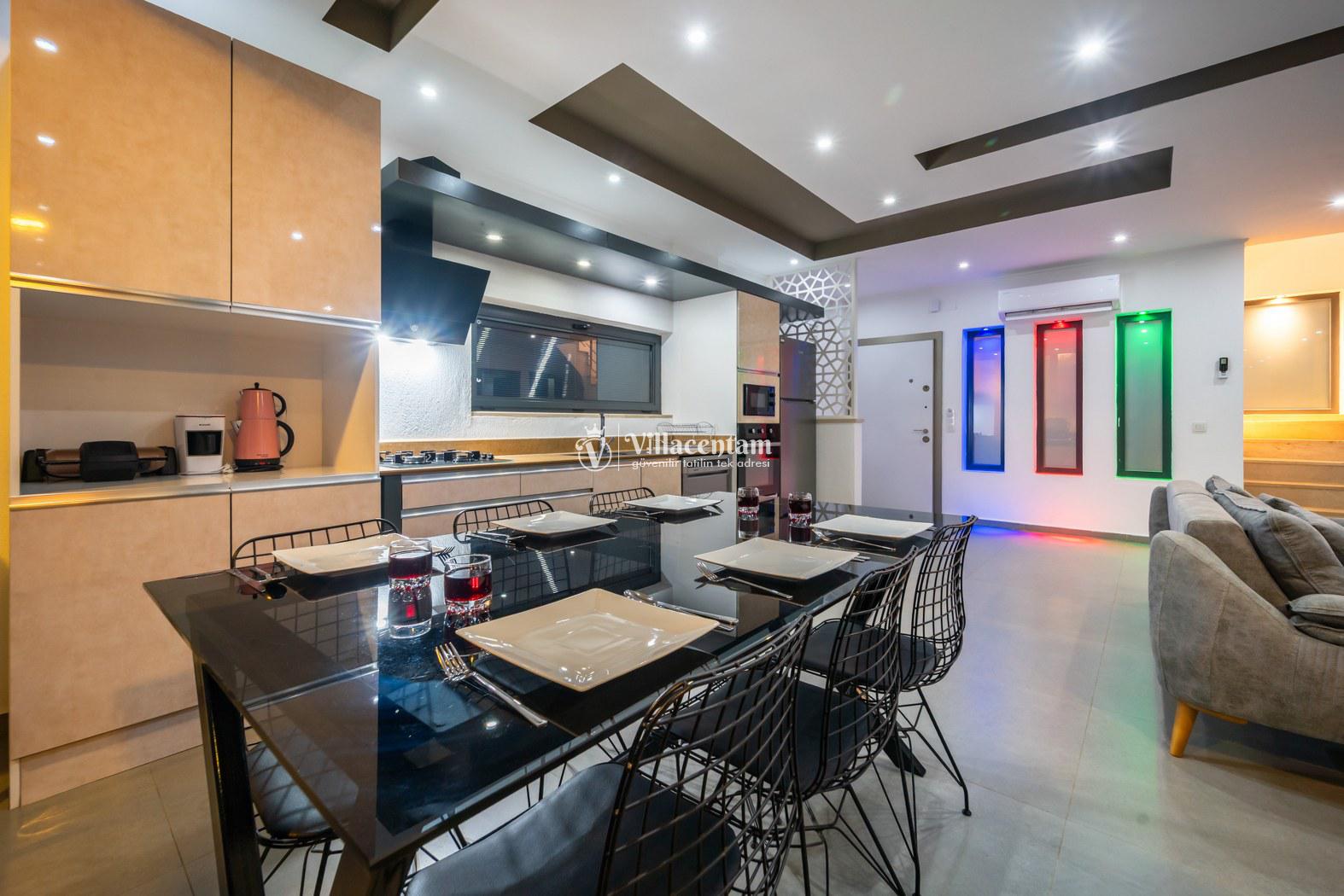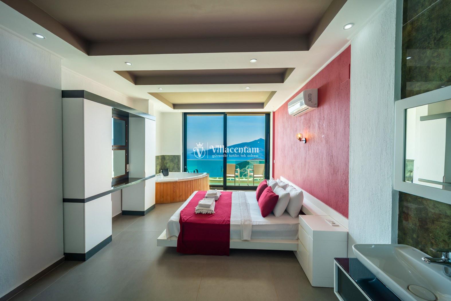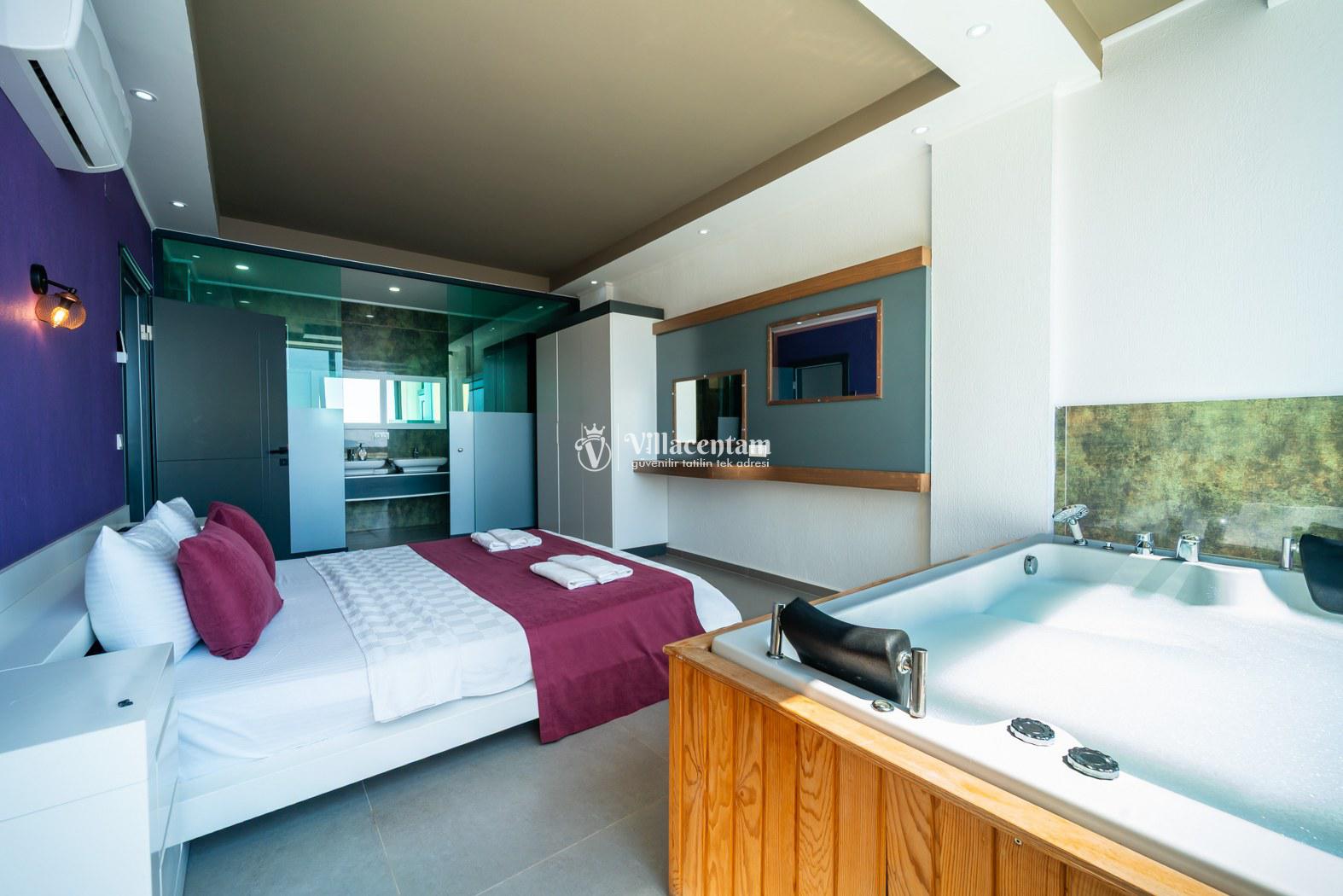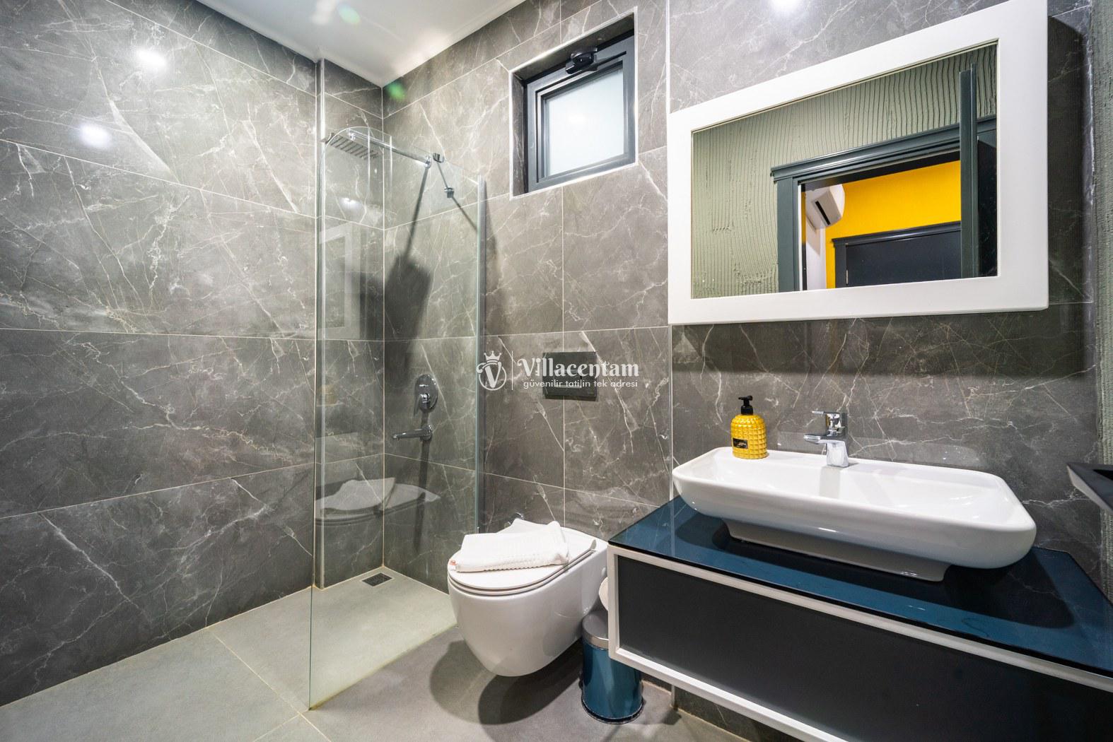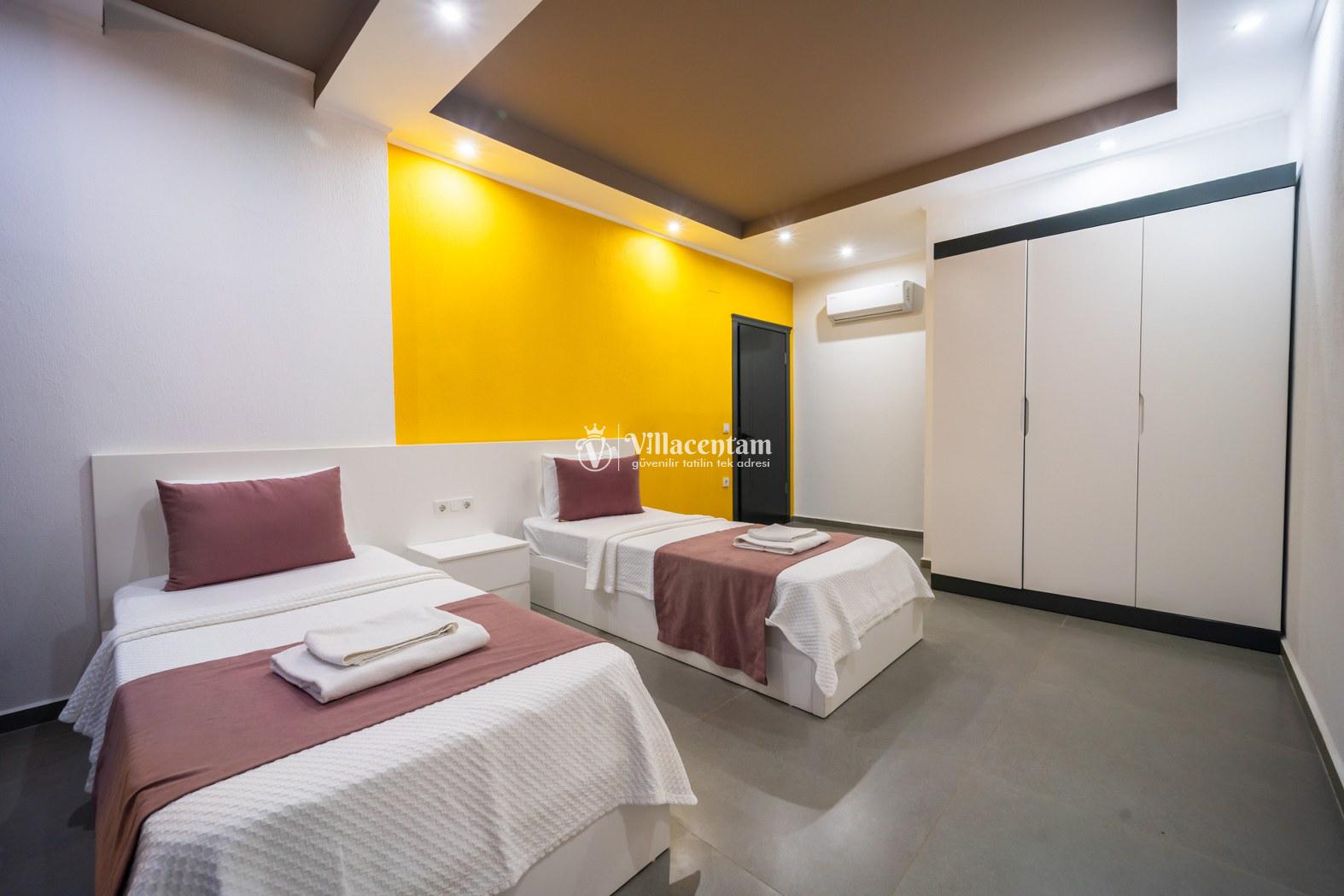 *Villalarda sıcak su için güneş enerjili su ısıtma sistemleri kullanılmaktadır. Çok yoğun sıcak su kullanımında, yoğunluğa ve su tankının büyüklüğüne bağlı olarak su tankında sıcak su tükenebilmekte ve tekrar suyun ısınması için belirli bir süre geçmesi gerekmektedir. Bu not sadece bu villa ile ilgili değil, tüm villalarımız için geçerli bir durumdur.