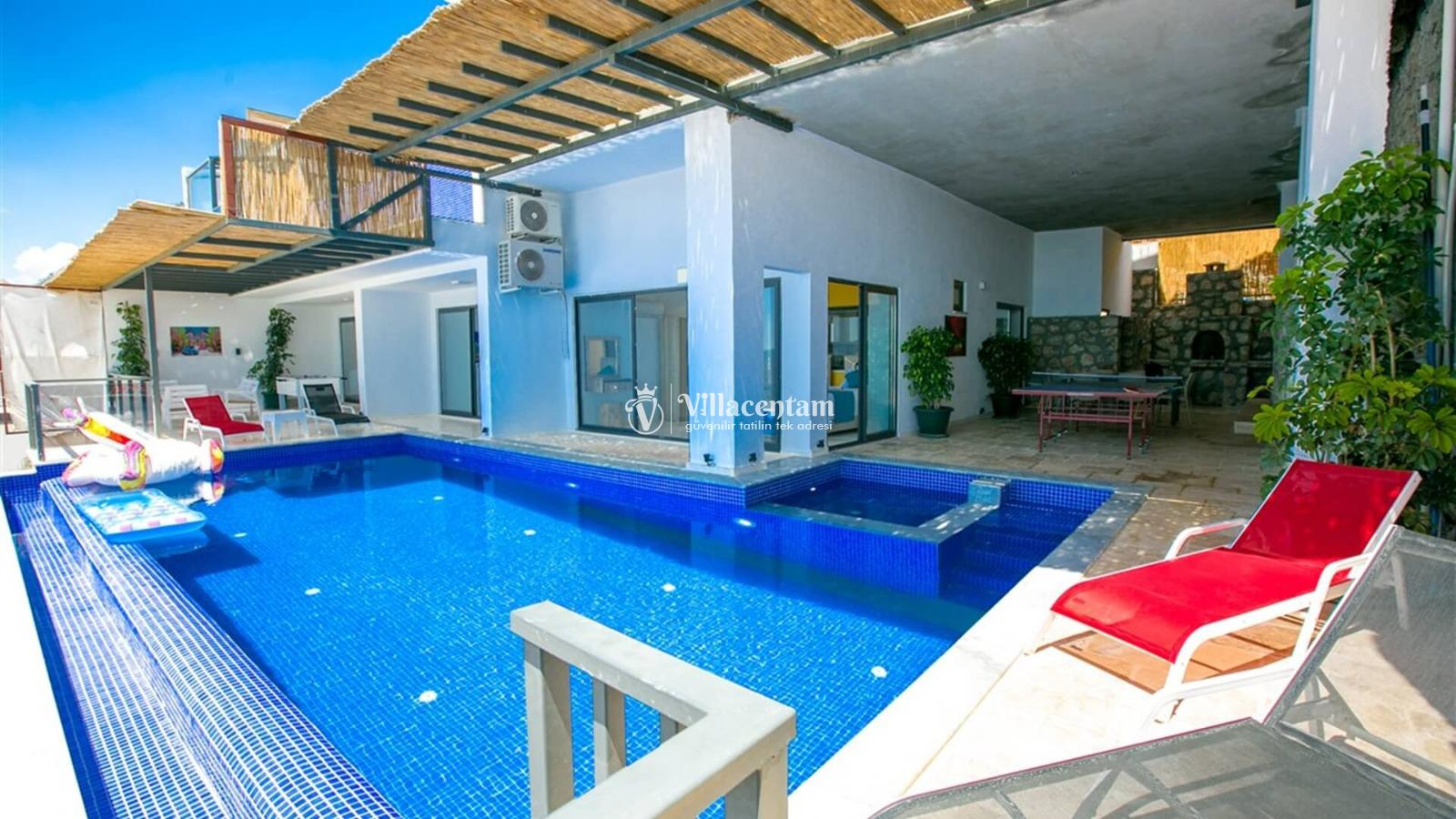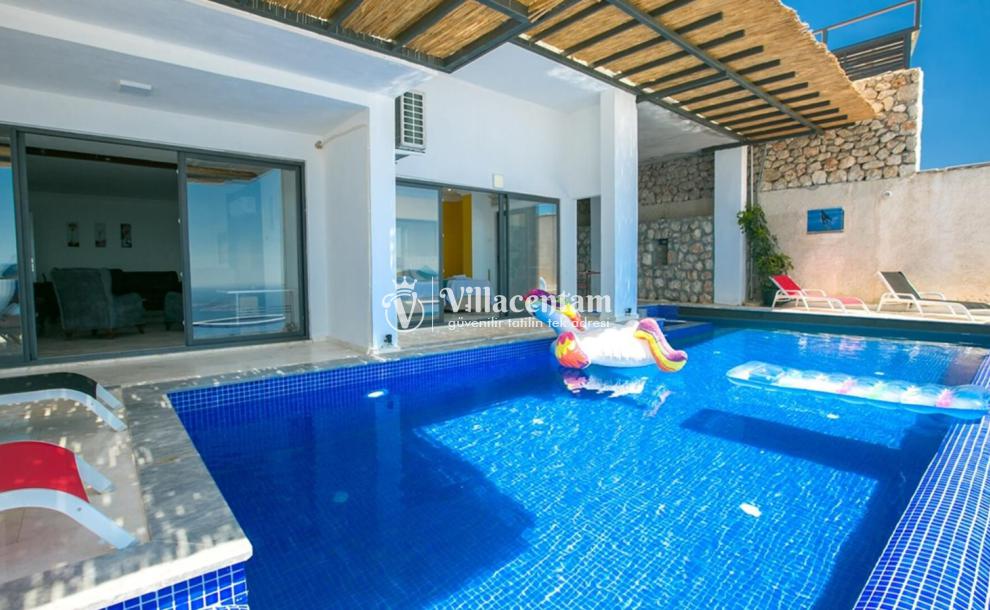 Villa Rimel, Kalkan kördere mevkiinde konumlanan eşsiz deniz manzarasıyla güne başlayabileceğiniz, konforu ve huzuru bir arada sunan bu modern tasarımlı villa; 4 kişilik kapasitesi, geniş yaşam alanları ve özel jakuzi keyfi ile unutulmaz bir tatil deneyimi yaşatmak için tasarlandı.