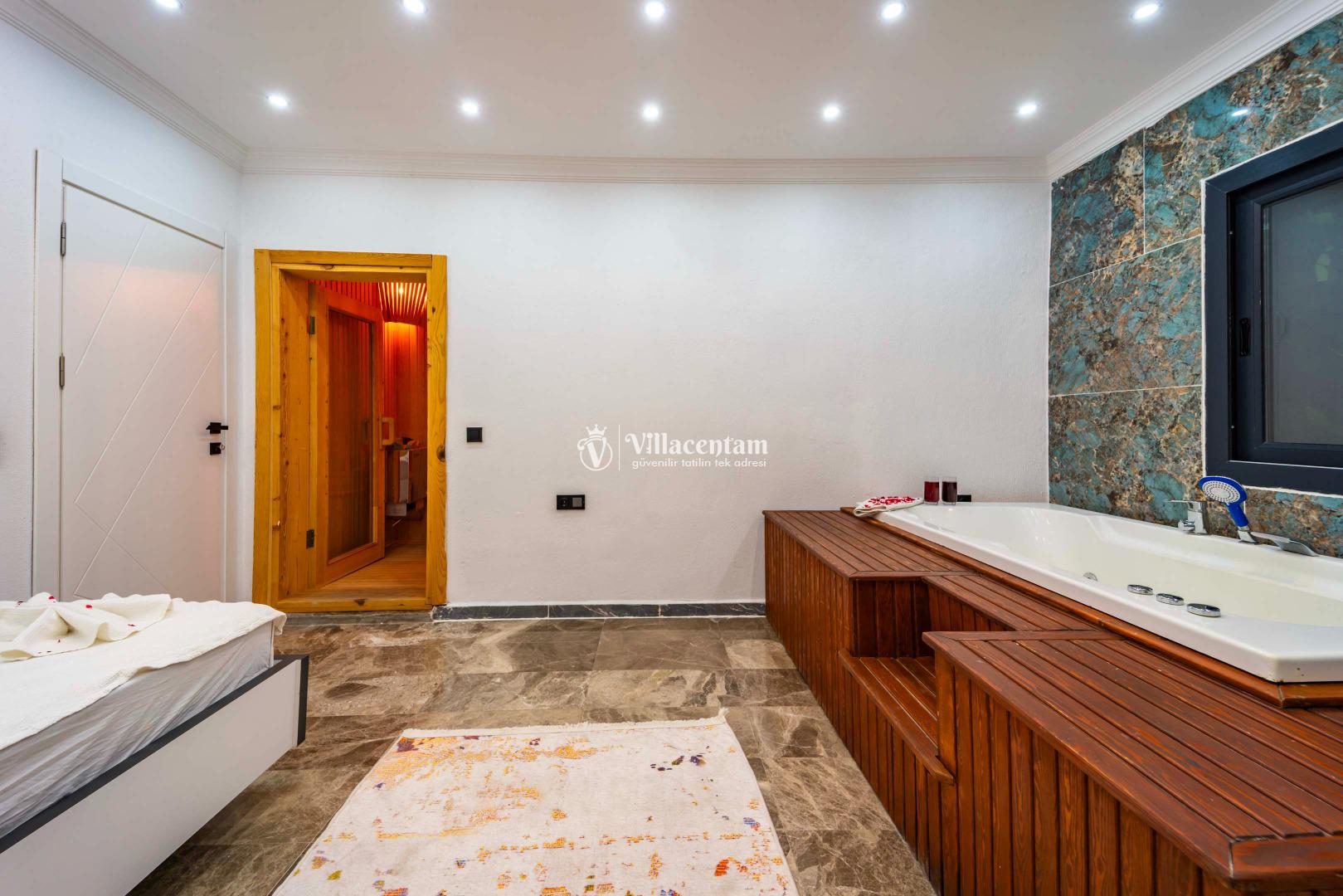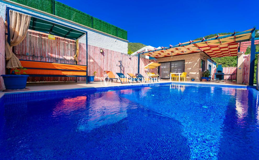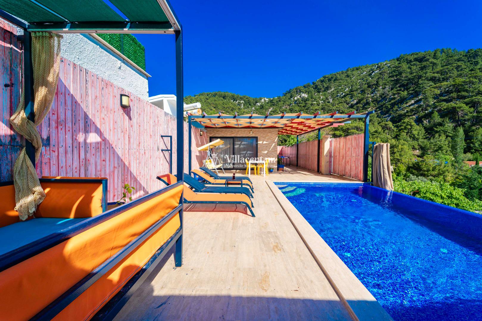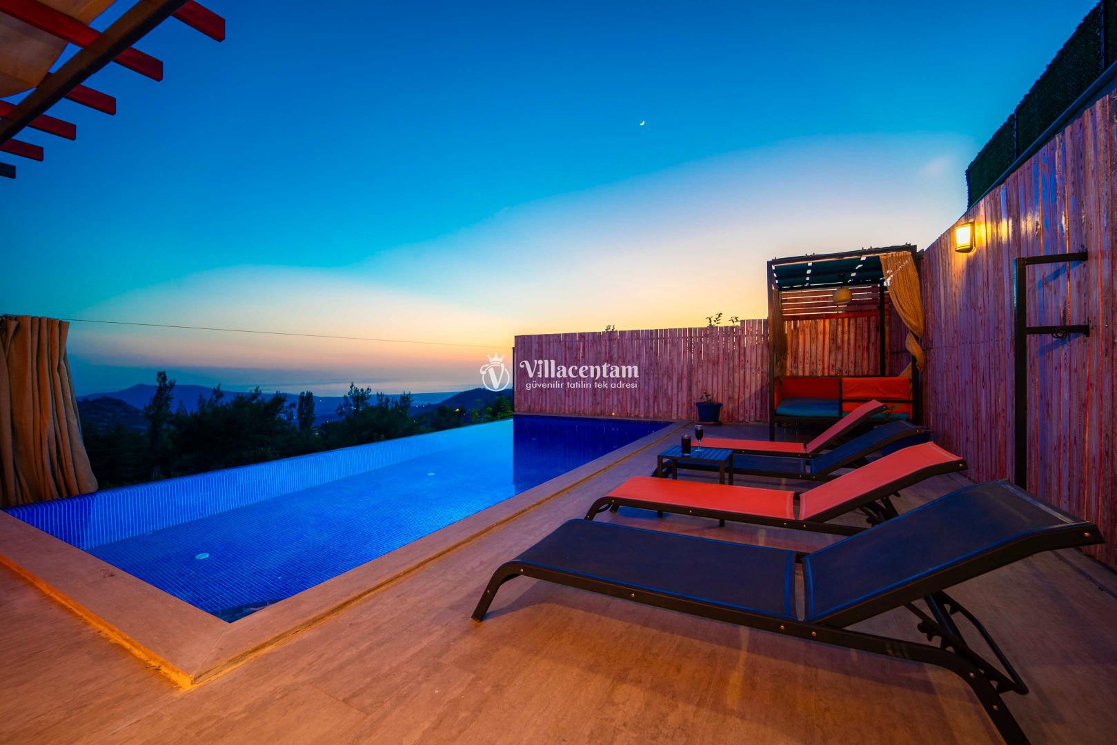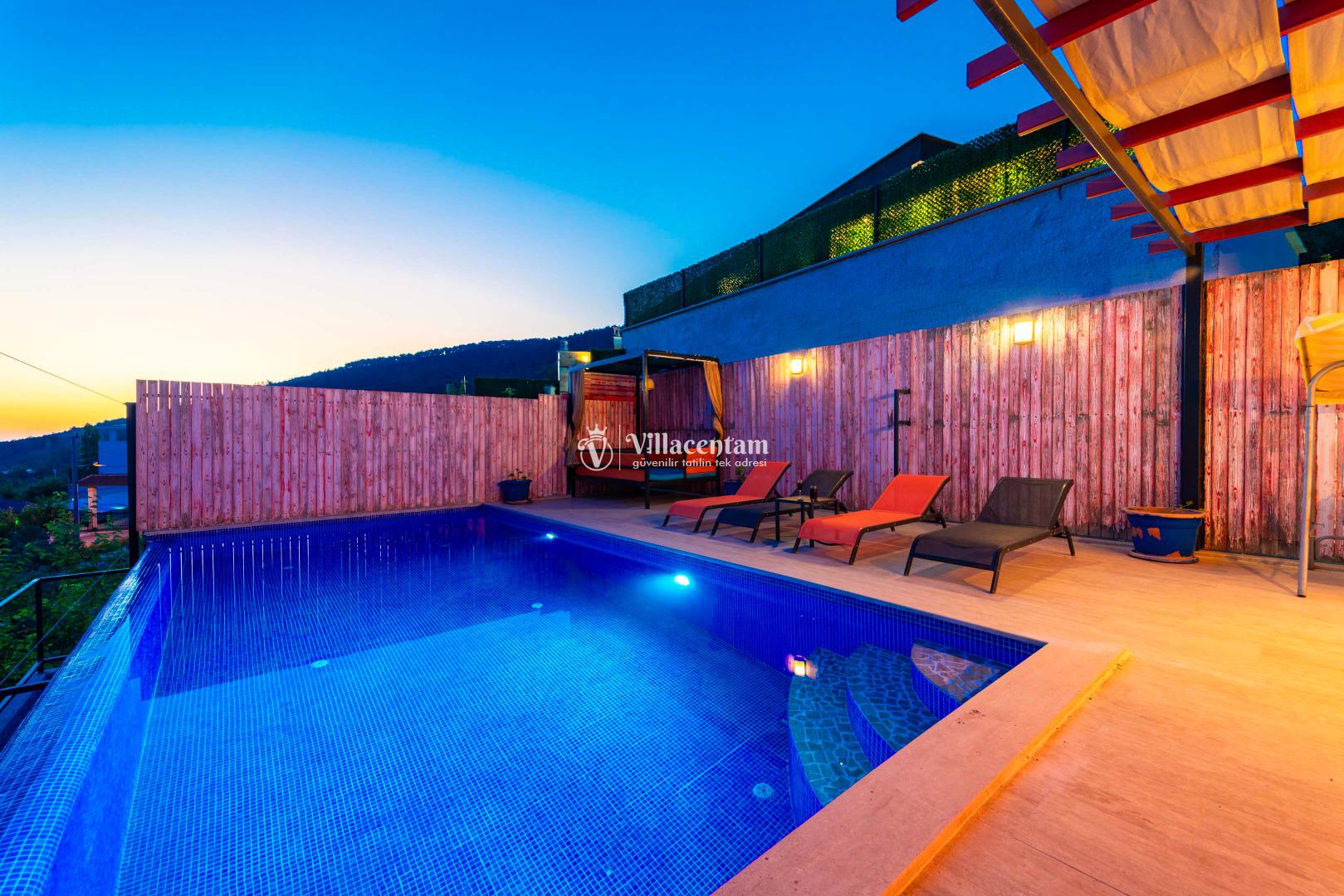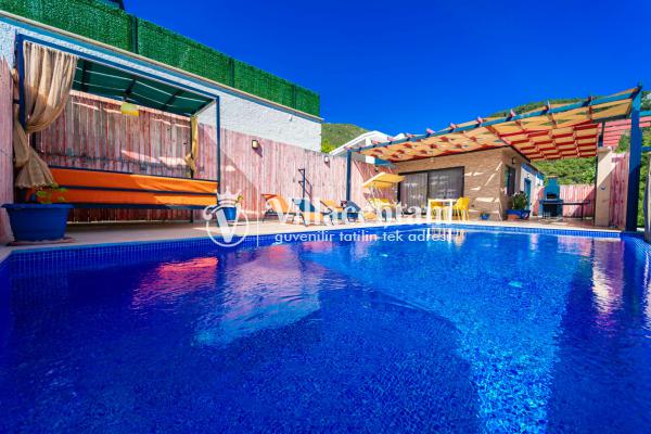 Villa Roman, Kalkan İslamlar mevkiinde konumlanmakta olan muhteşem doğa manzarasına hakim kiralık villalarımız arasında yer almaktadır. Şık ve konforlu bir şekilde dizayn edilen yazlık villamızda 2 adet yatak odası bulunmakta olup, 5 kişiye konaklama imkanı sağlamaktadır. Villamızın havuz terasının korunaklı olması sayesinde size özel bir ortamda rahat bir tatil keyfi yaşayabilirsiniz. Villamızın 2 yatak odasında tüm yılın vermiş olduğu yorgunluğu atabileceğiniz jakuzi konforu sağlanmaktadır. Ayrıca villamızda ücretsiz olarak kullanabileceğiniz sauna da mevcuttur.