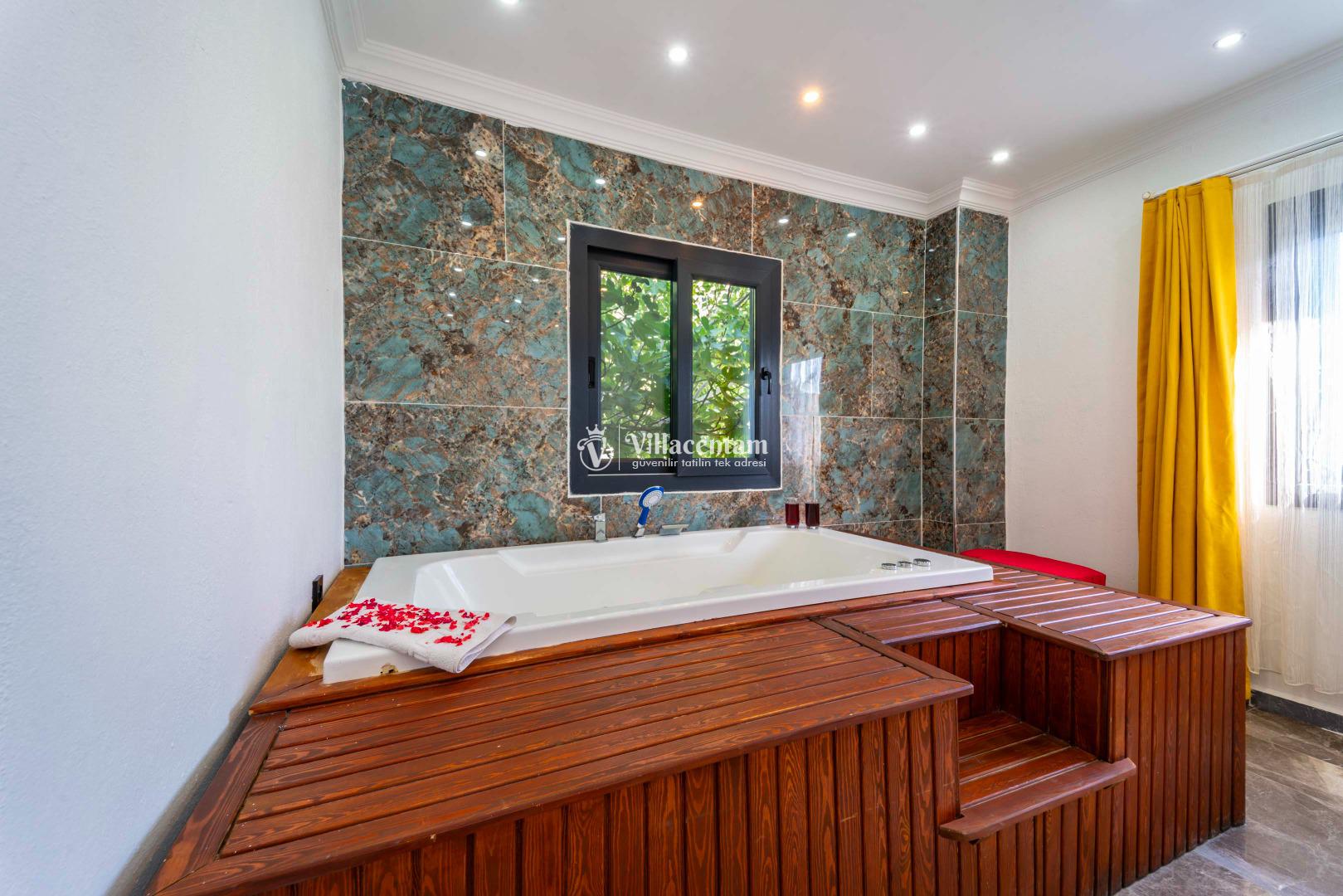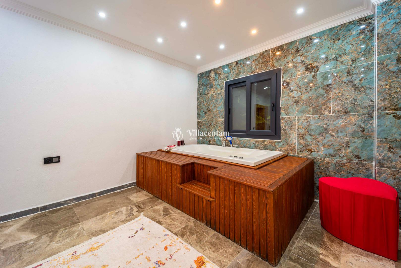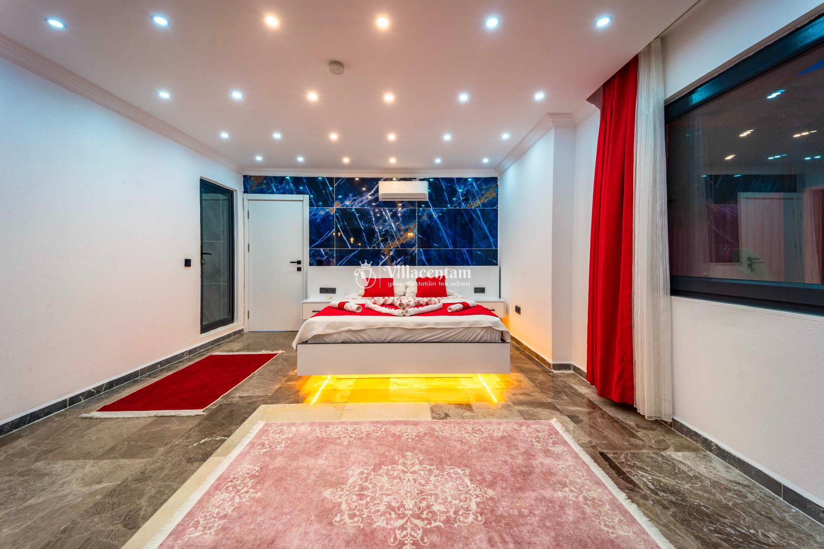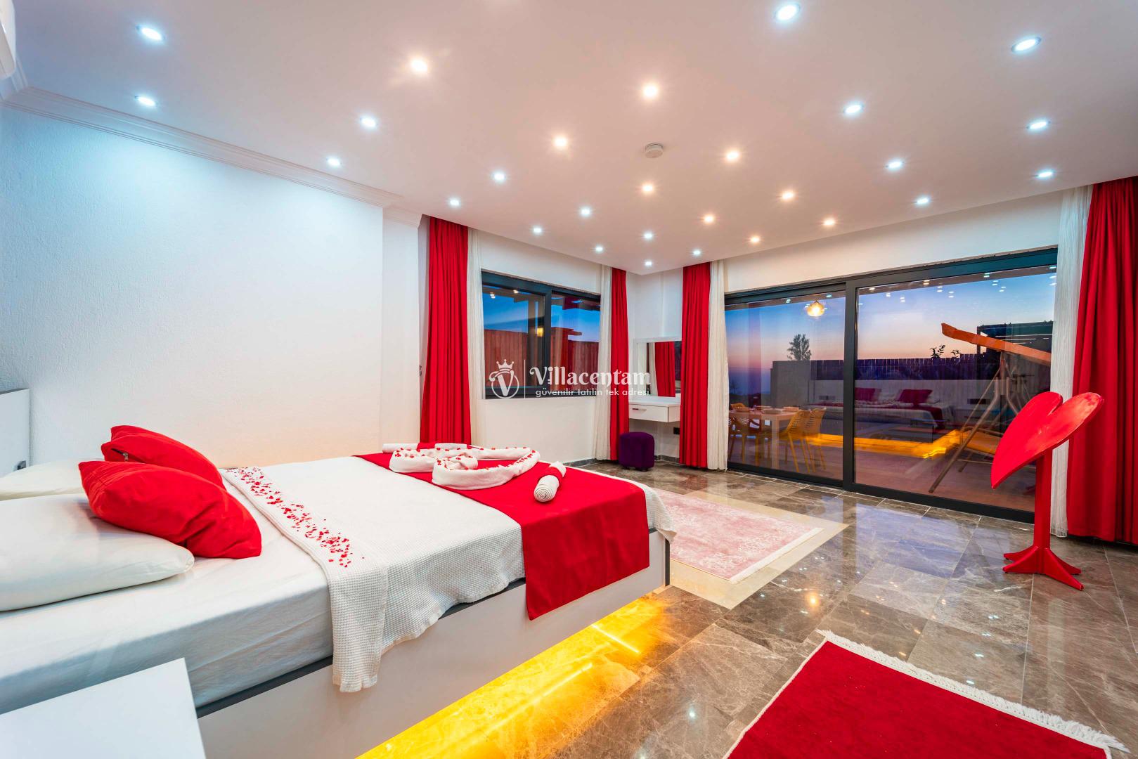 Villa Roman, Kalkan İslamlar mevkiinde konumlanmakta olan muhteşem doğa manzarasına hakim kiralık villalarımız arasında yer almaktadır. Şık ve konforlu bir şekilde dizayn edilen yazlık villamızda 2 adet yatak odası bulunmakta olup, 5 kişiye konaklama imkanı sağlamaktadır. Villamızın havuz terasının korunaklı olması sayesinde size özel bir ortamda rahat bir tatil keyfi yaşayabilirsiniz. Villamızın 2 yatak odasında tüm yılın vermiş olduğu yorgunluğu atabileceğiniz jakuzi konforu sağlanmaktadır. Ayrıca villamızda ücretsiz olarak kullanabileceğiniz sauna da mevcuttur.