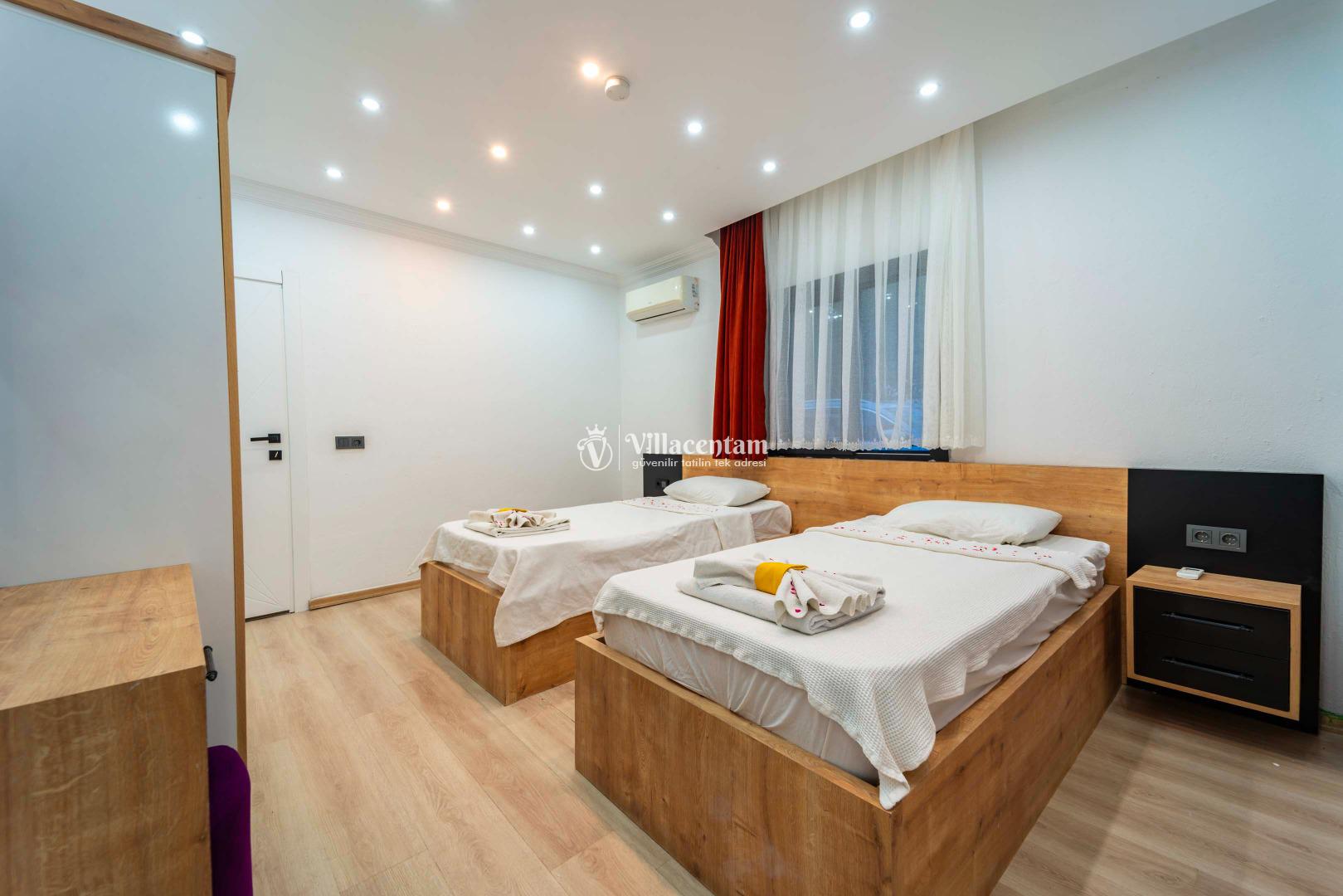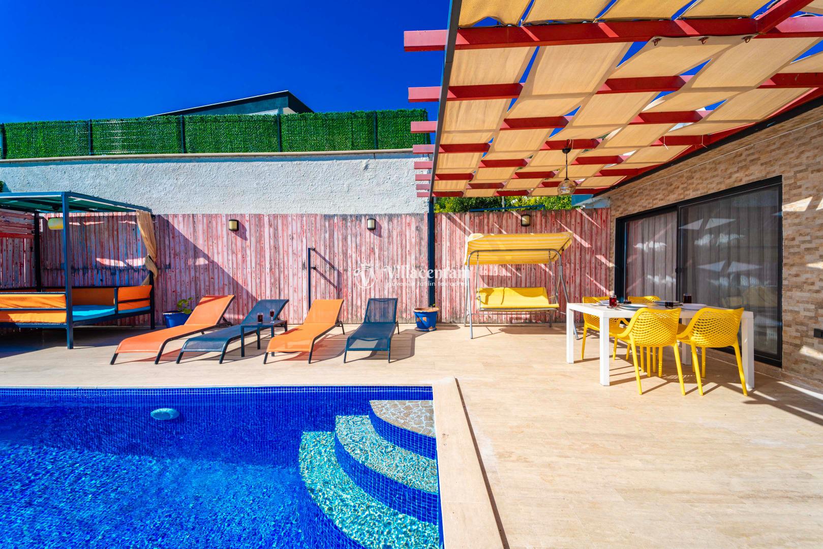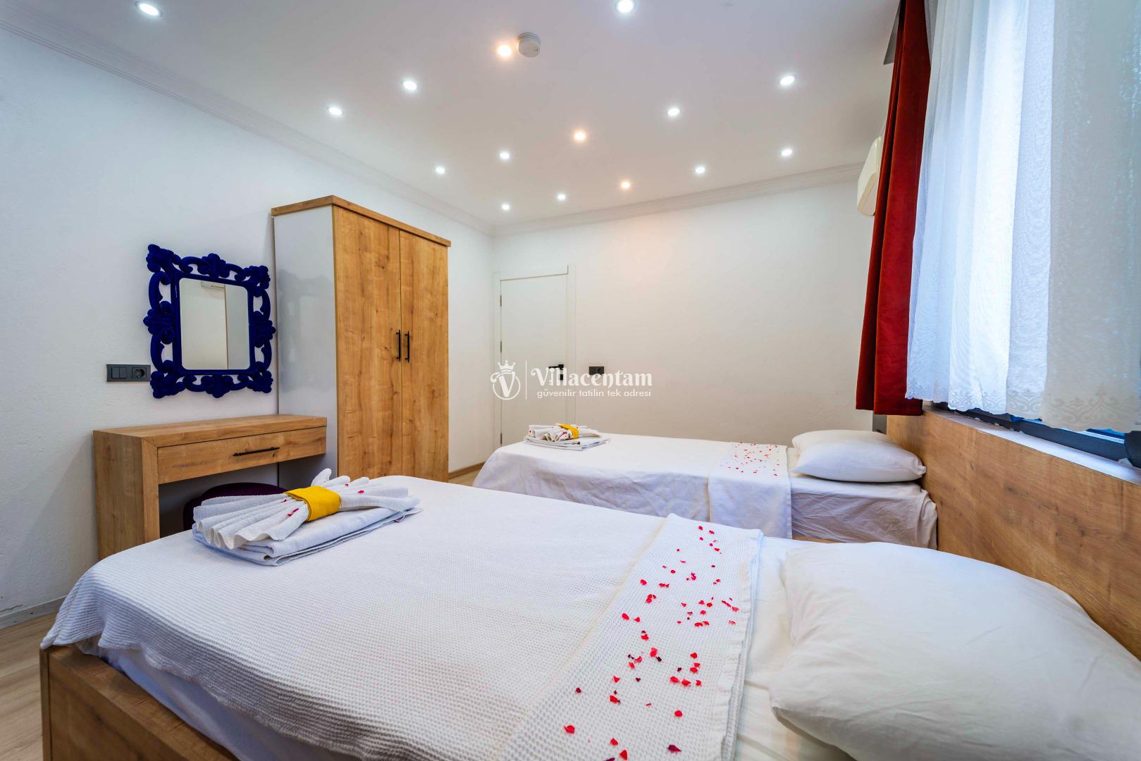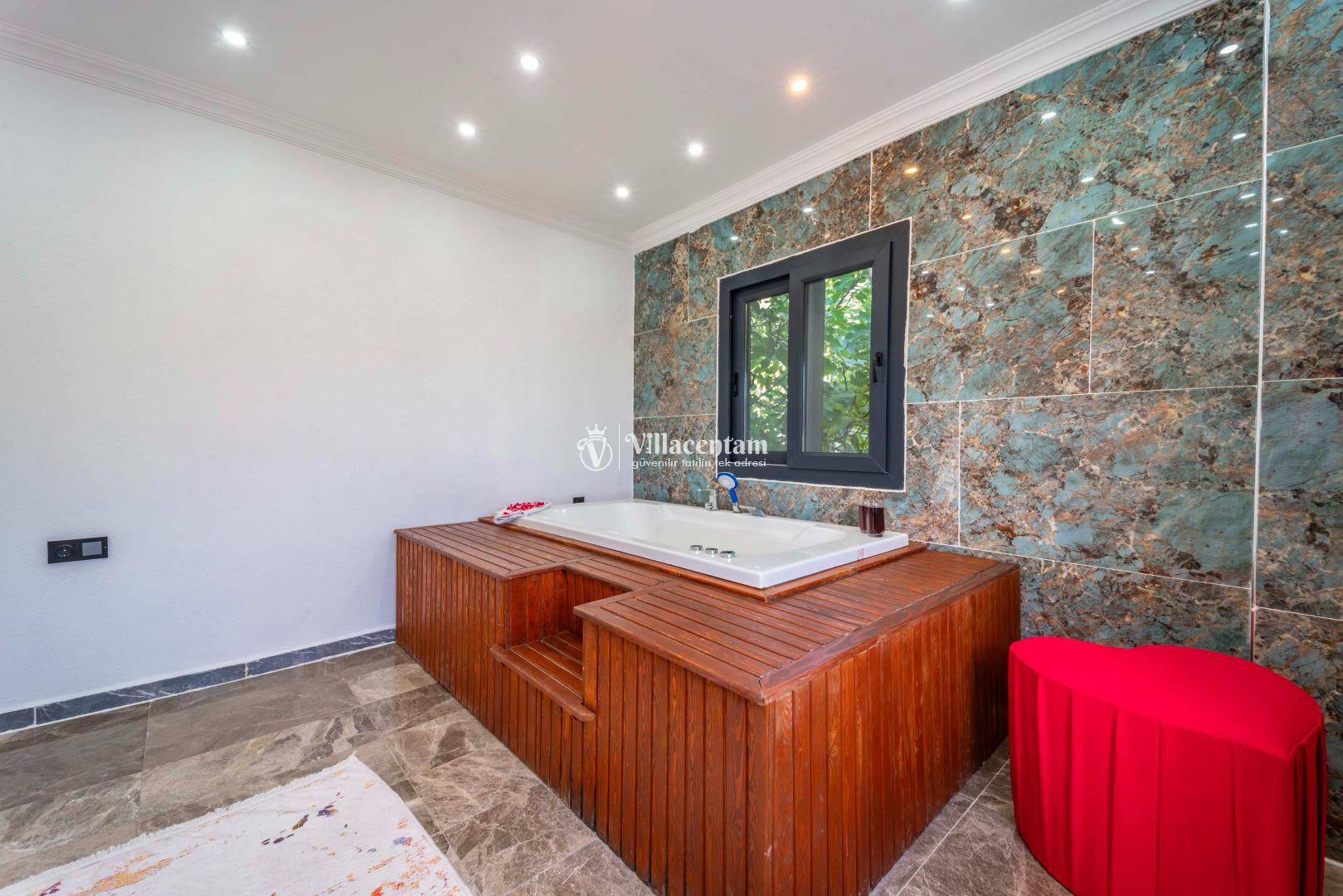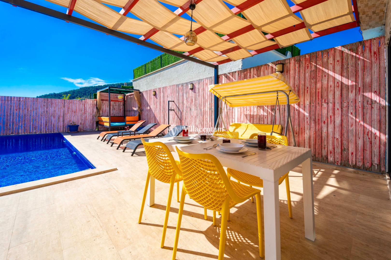 Villa Roman, Kalkan İslamlar mevkiinde konumlanmakta olan muhteşem doğa manzarasına hakim kiralık villalarımız arasında yer almaktadır. Şık ve konforlu bir şekilde dizayn edilen yazlık villamızda 2 adet yatak odası bulunmakta olup, 5 kişiye konaklama imkanı sağlamaktadır. Villamızın havuz terasının korunaklı olması sayesinde size özel bir ortamda rahat bir tatil keyfi yaşayabilirsiniz. Villamızın 2 yatak odasında tüm yılın vermiş olduğu yorgunluğu atabileceğiniz jakuzi konforu sağlanmaktadır. Ayrıca villamızda ücretsiz olarak kullanabileceğiniz sauna da mevcuttur.