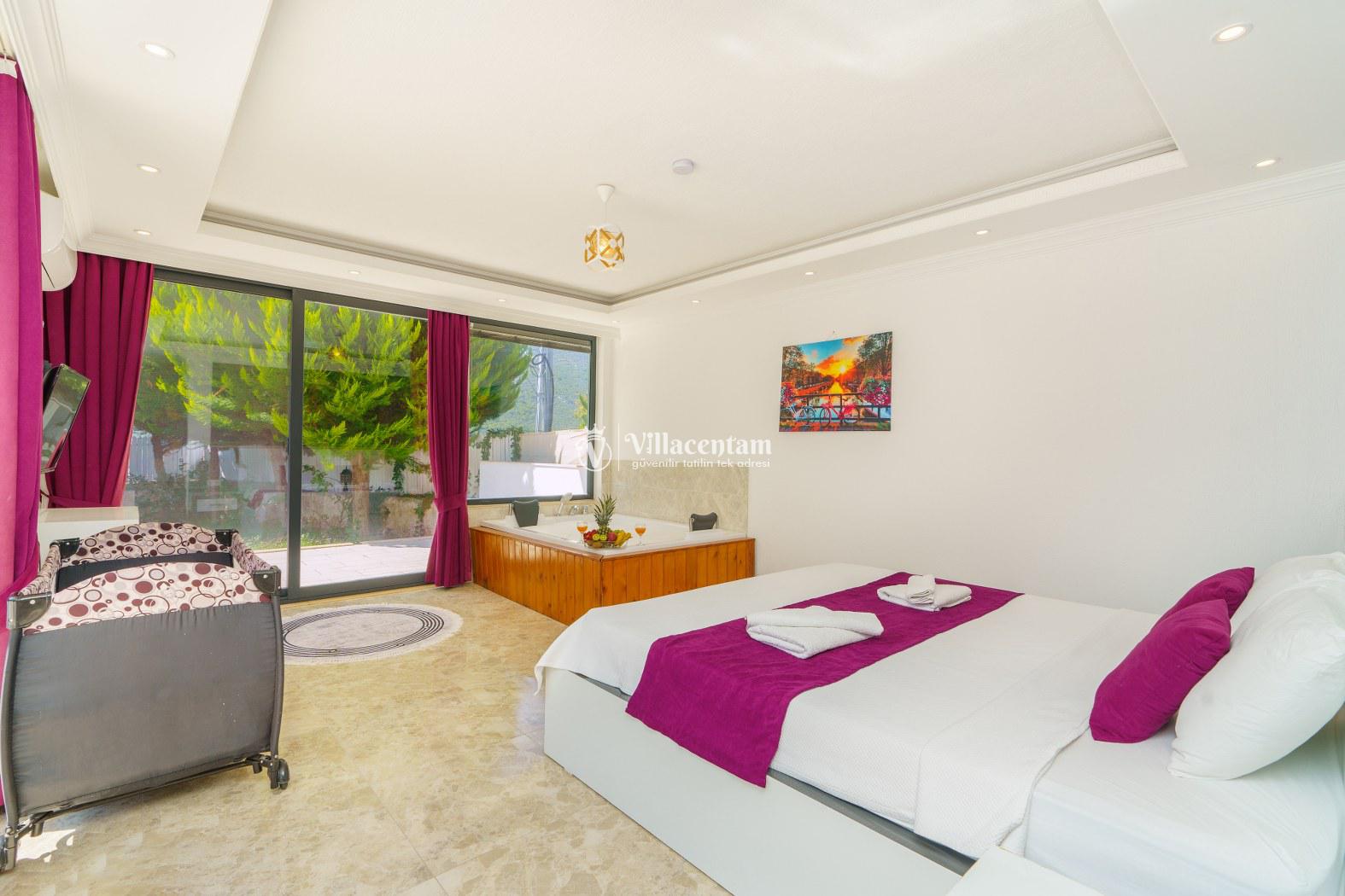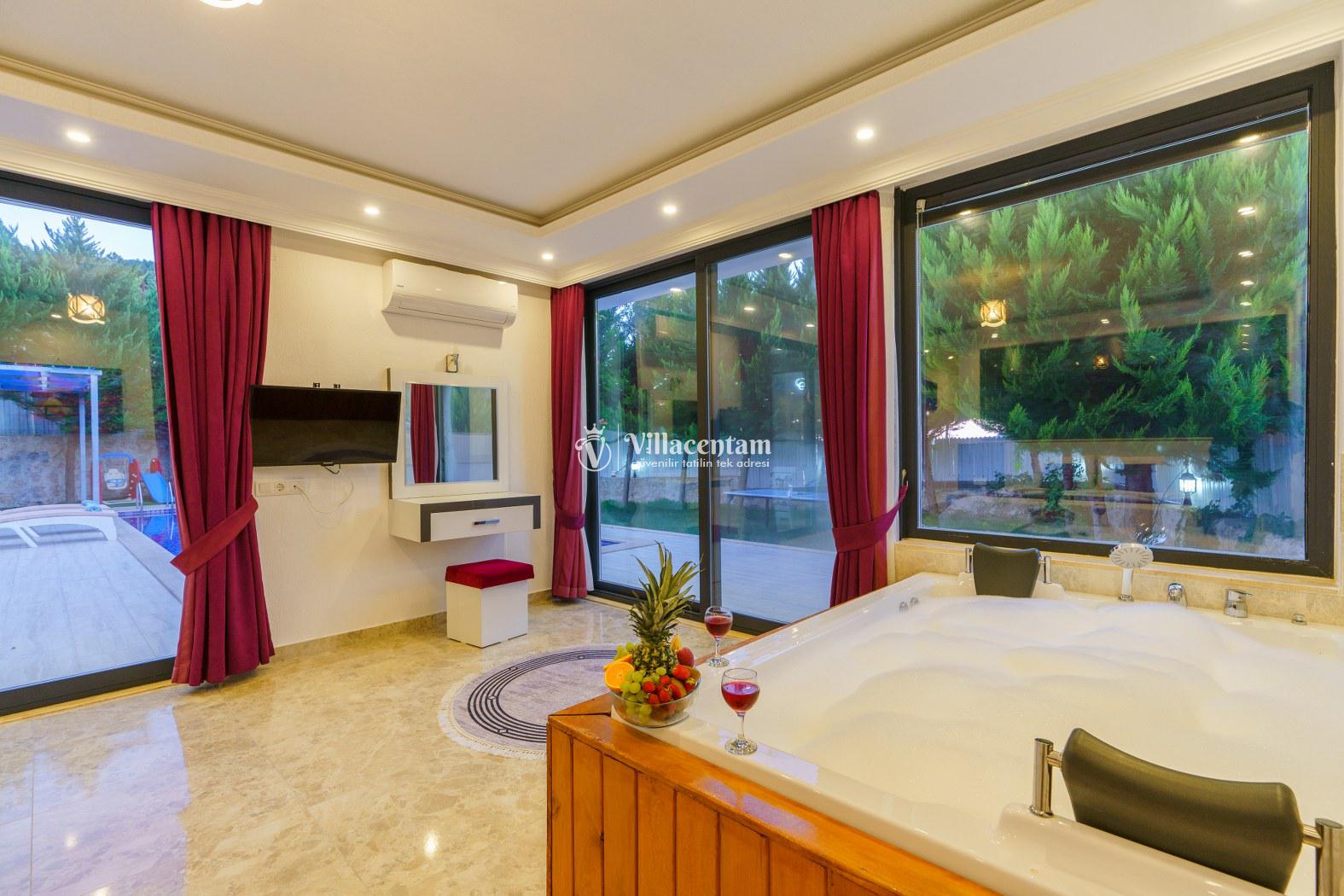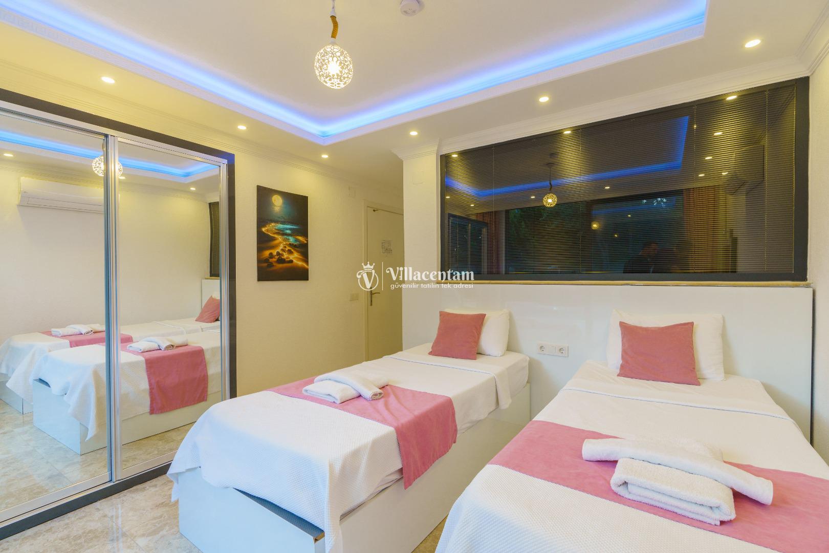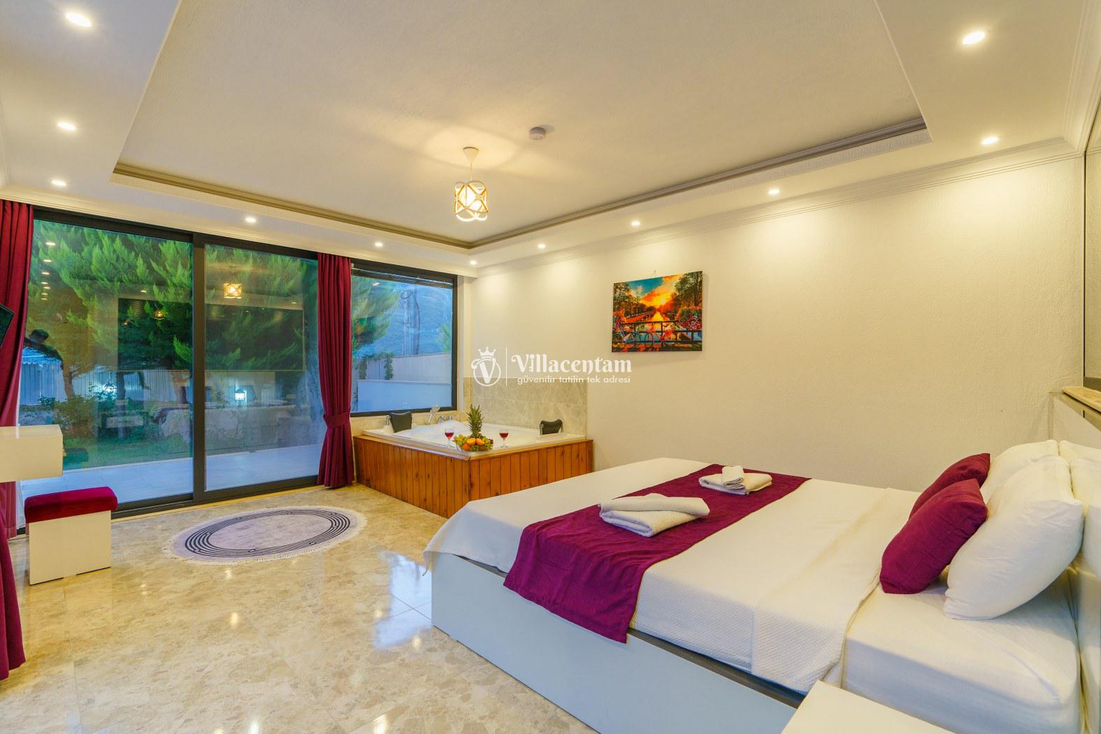 Villa Sabina, Kalkan Sarıbelen mevkiinde konumlanmakta olan doğa manzarasına hakim kiralık villalarımız arasında yer almaktadır. Şık ve lüks bir şekilde dekore edilen villamızda 2 adet yatak odası bulunmakta olup, 4 kişiye konaklama imkanı sağlamaktadır. Yatak odalarının bir tanesinin içerisinde tüm yılın vermiş olduğu yorgunluğu atabileceğiniz jakuzi yer almaktadır. Ayrıca dış özel yüzme havuzuna entegre sığ havuz mevcuttur. Havuz ve havuz terası korunaklı hale getirilmiştir. Dışarıdan bir kimse tarafından görünmemektedir. Muhafazakar balayı çiftleri ve çekirdek aileler rahatlıkla tercih edebilirler. Geniş ve ferah bir havuz terasına sahip olan villamızda sevdiklerinizle tatilin tadını çıkarabilirsiniz. Keyifli bir tatil için Villa Sabina' yı tercih edebilirsiniz