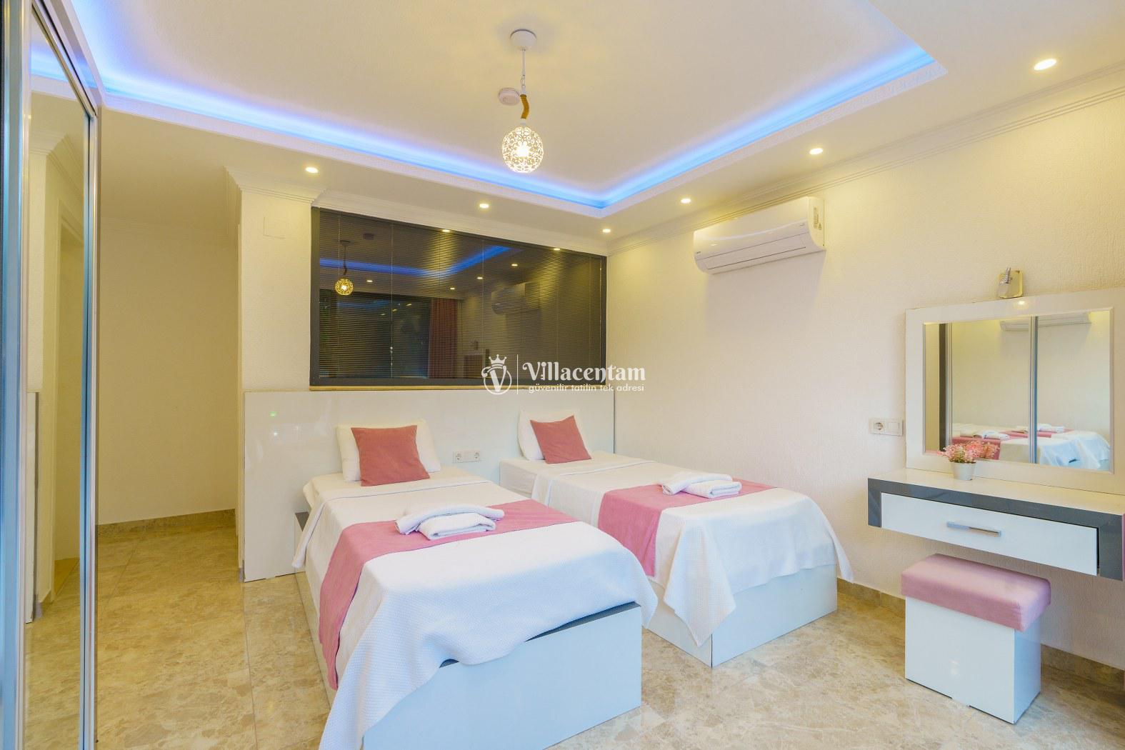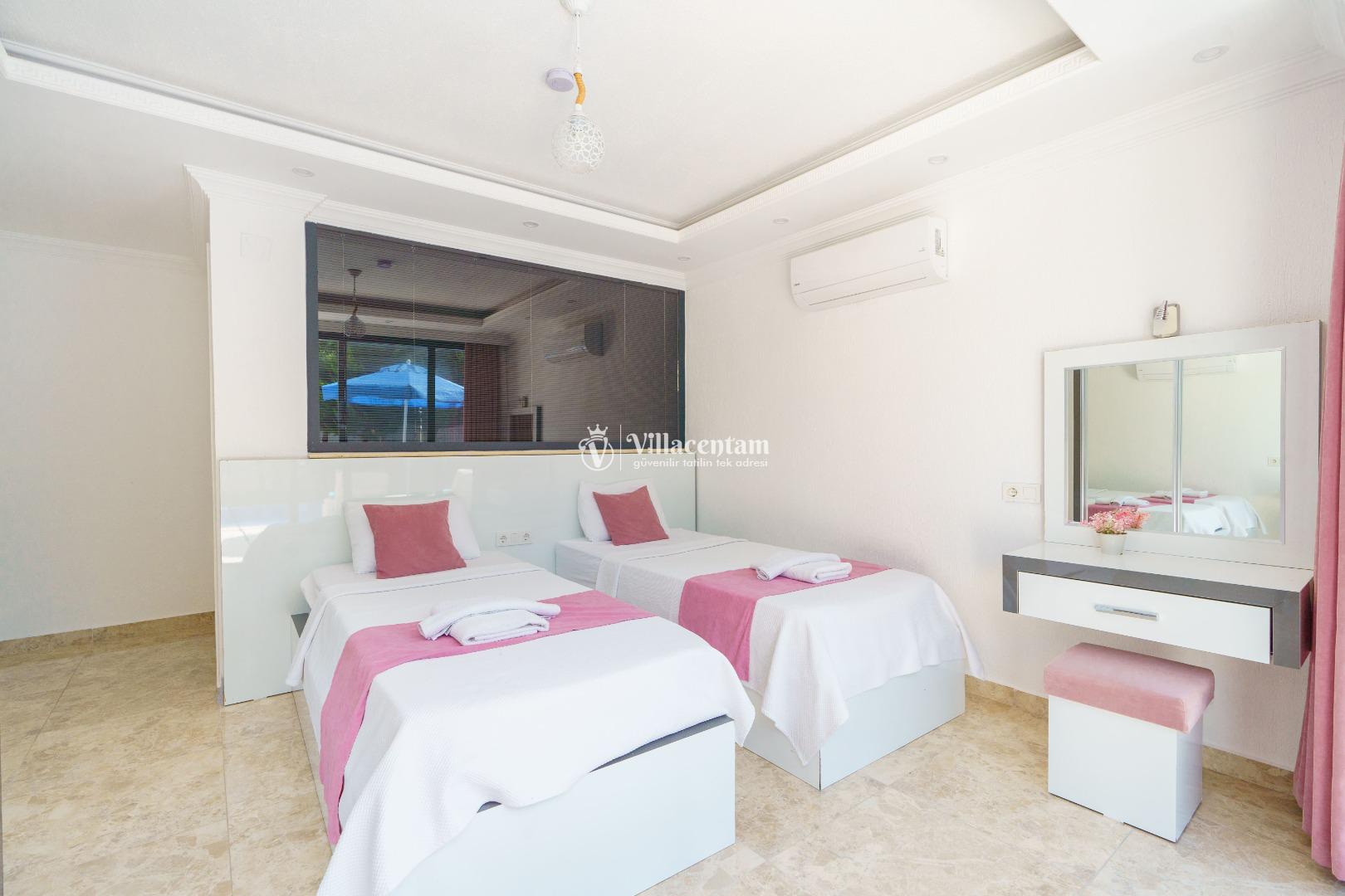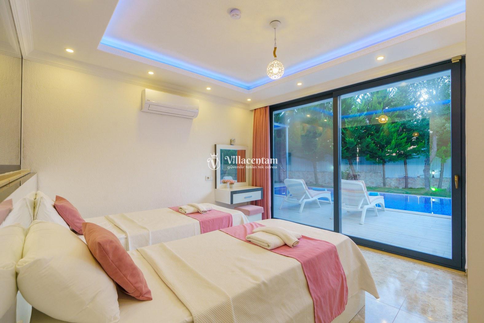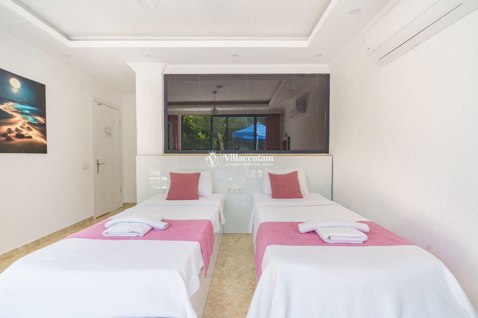 Villa Sabina, Kalkan Sarıbelen mevkiinde konumlanmakta olan doğa manzarasına hakim kiralık villalarımız arasında yer almaktadır. Şık ve lüks bir şekilde dekore edilen villamızda 2 adet yatak odası bulunmakta olup, 4 kişiye konaklama imkanı sağlamaktadır. Yatak odalarının bir tanesinin içerisinde tüm yılın vermiş olduğu yorgunluğu atabileceğiniz jakuzi yer almaktadır. Ayrıca dış özel yüzme havuzuna entegre sığ havuz mevcuttur. Havuz ve havuz terası korunaklı hale getirilmiştir. Dışarıdan bir kimse tarafından görünmemektedir. Muhafazakar balayı çiftleri ve çekirdek aileler rahatlıkla tercih edebilirler. Geniş ve ferah bir havuz terasına sahip olan villamızda sevdiklerinizle tatilin tadını çıkarabilirsiniz. Keyifli bir tatil için Villa Sabina' yı tercih edebilirsiniz