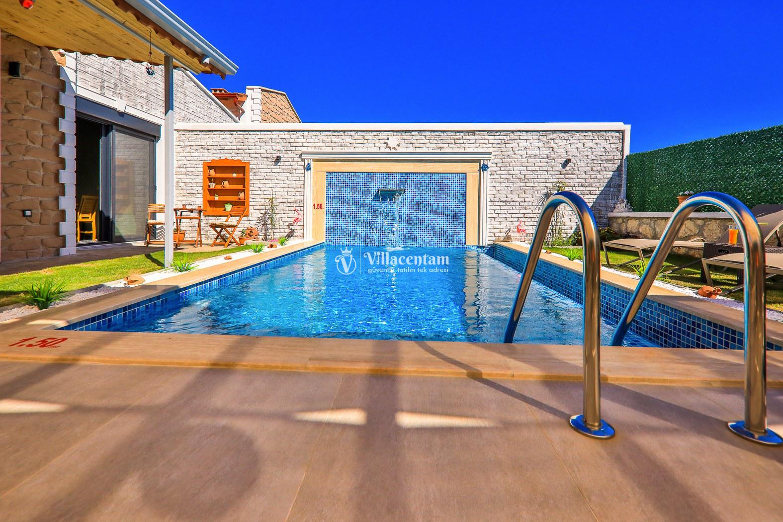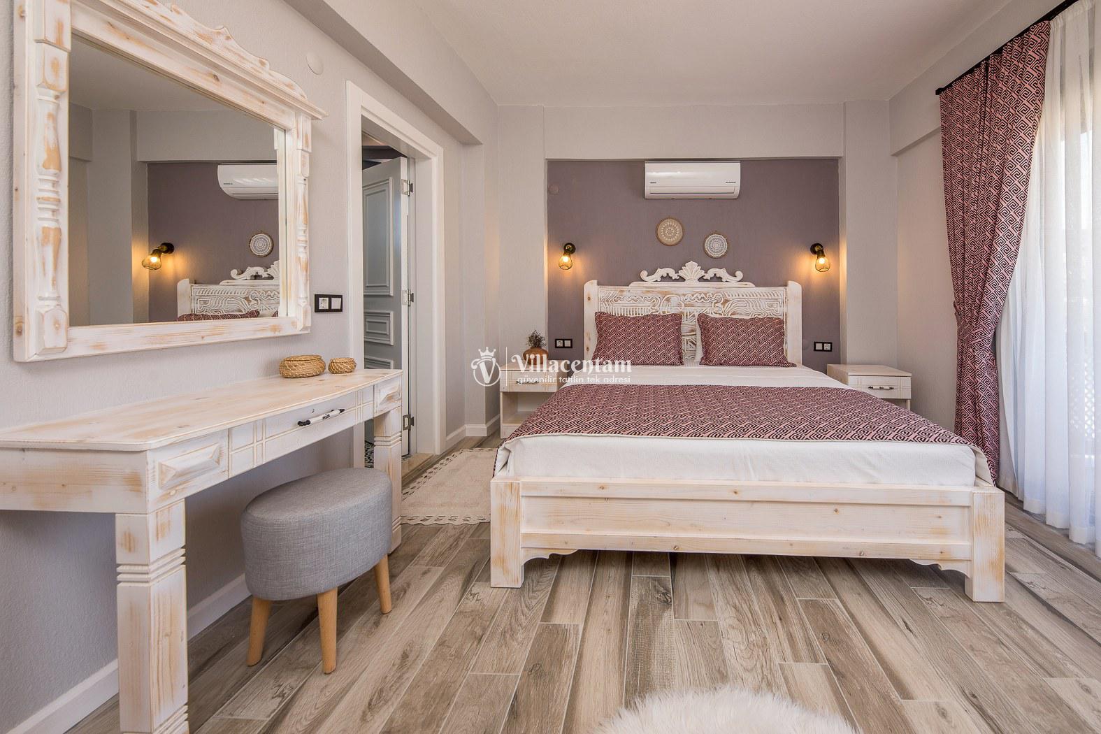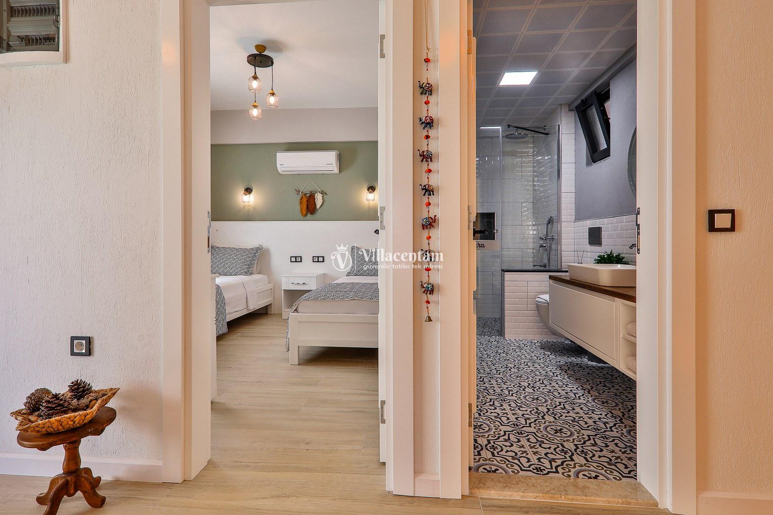 *Villalarda sıcak su için güneş enerjili su ısıtma sistemleri kullanılmaktadır. Çok yoğun sıcak su kullanımında, yoğunluğa ve su tankının büyüklüğüne bağlı olarak su tankında sıcak su tükenebilmekte ve tekrar suyun ısınması için belirli bir süre geçmesi gerekmektedir. Bu not sadece bu villa ile ilgili değil, tüm villalarımız için geçerli bir durumdur.