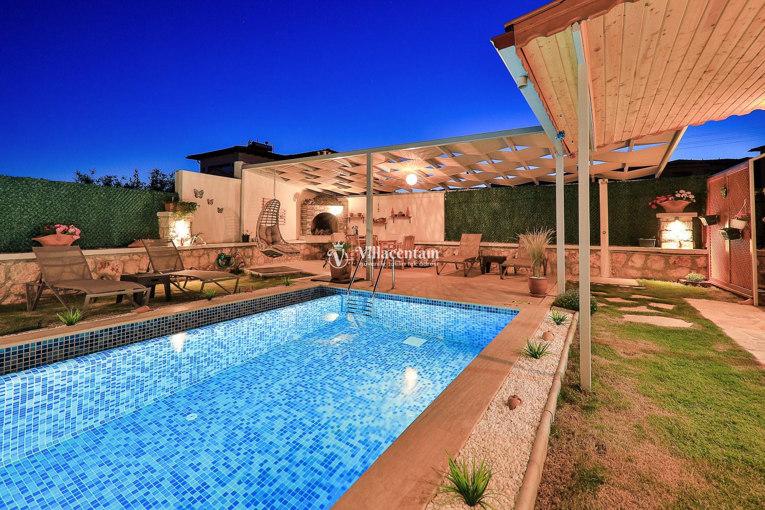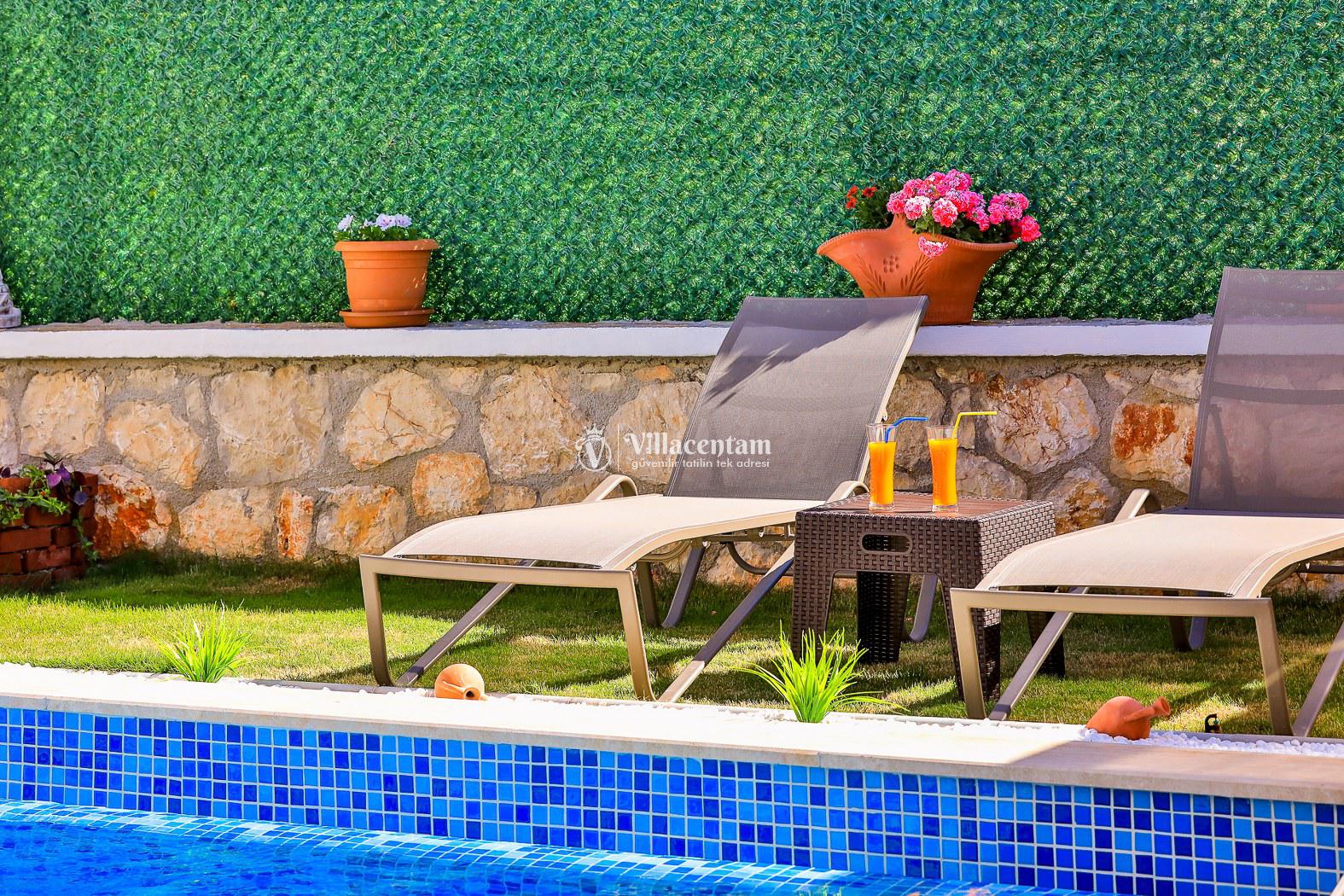 Villa Sakura, Kaş’ta doğa ile iç içe konumlanan, modern mimarisi ve ferah yaşam alanlarıyla konforlu bir tatil deneyimi sunan özel bir villadır. 2 yatak odası ve 4 kişilik konaklama kapasitesi ile aileler ve arkadaş grupları için ideal olan villada, şık döşenmiş salon ve tam donanımlı mutfak ev rahatlığını tatilde yaşatır. Dış alanda yer alan özel yüzme havuzu, geniş teras, şezlonglar ve barbekü alanı gün boyu keyifli vakit geçirmenizi sağlar. Sakin atmosferi ve manzaralı yapısıyla huzur dolu bir tatil sunan Villa Sakura, aynı zamanda plajlara ve Kaş merkezine kolay ulaşım imkânıyla unutulmaz bir villa tatili arayanlar için mükemmel bir seçenektir.