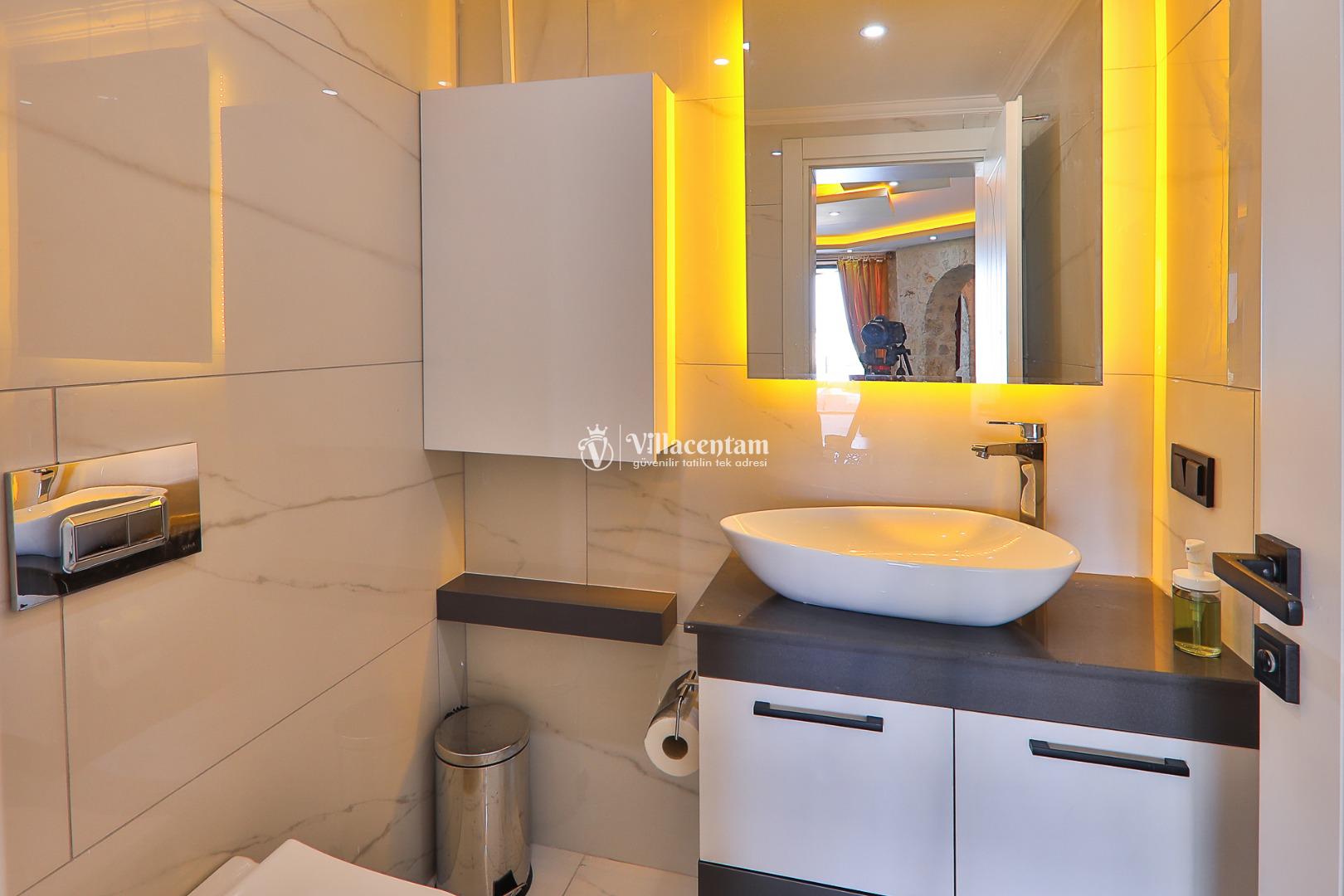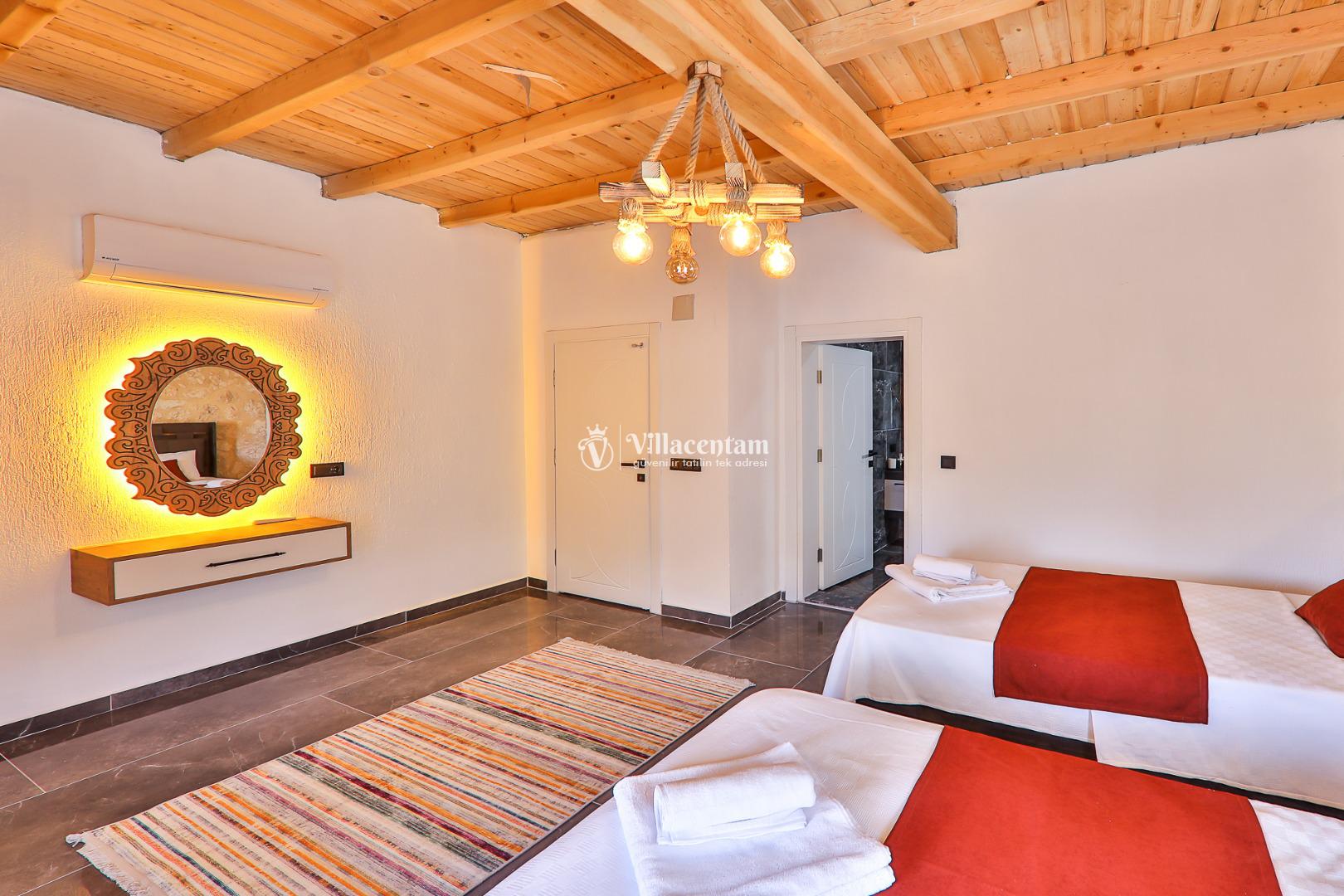 *Villalarda sıcak su için güneş enerjili su ısıtma sistemleri kullanılmaktadır. Çok yoğun sıcak su kullanımında, yoğunluğa ve su tankının büyüklüğüne bağlı olarak su tankında sıcak su tükenebilmekte ve tekrar suyun ısınması için belirli bir süre geçmesi gerekmektedir. Bu not sadece bu villa ile ilgili değil, tüm villalarımız için geçerli bir durumdur.