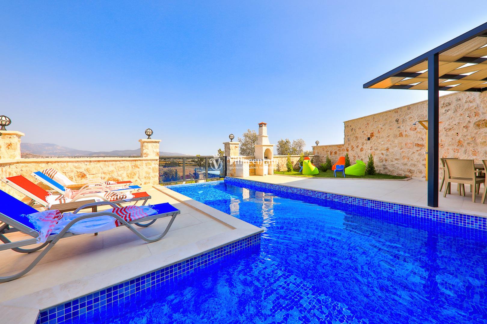 Özel havuz alanı, yeşil bahçe ve geniş teras ile çevrili Villa Sandak 1; sauna, hamam ve kapalı ısıtmalı havuz gibi lüks wellness özellikleriyle yılın her döneminde konforlu bir kaçamak sunar. Ayrıca havuz başında barbekü alanı, şezlonglar ve dinlenme köşeleri ile tatilinizi zenginleştirir.
