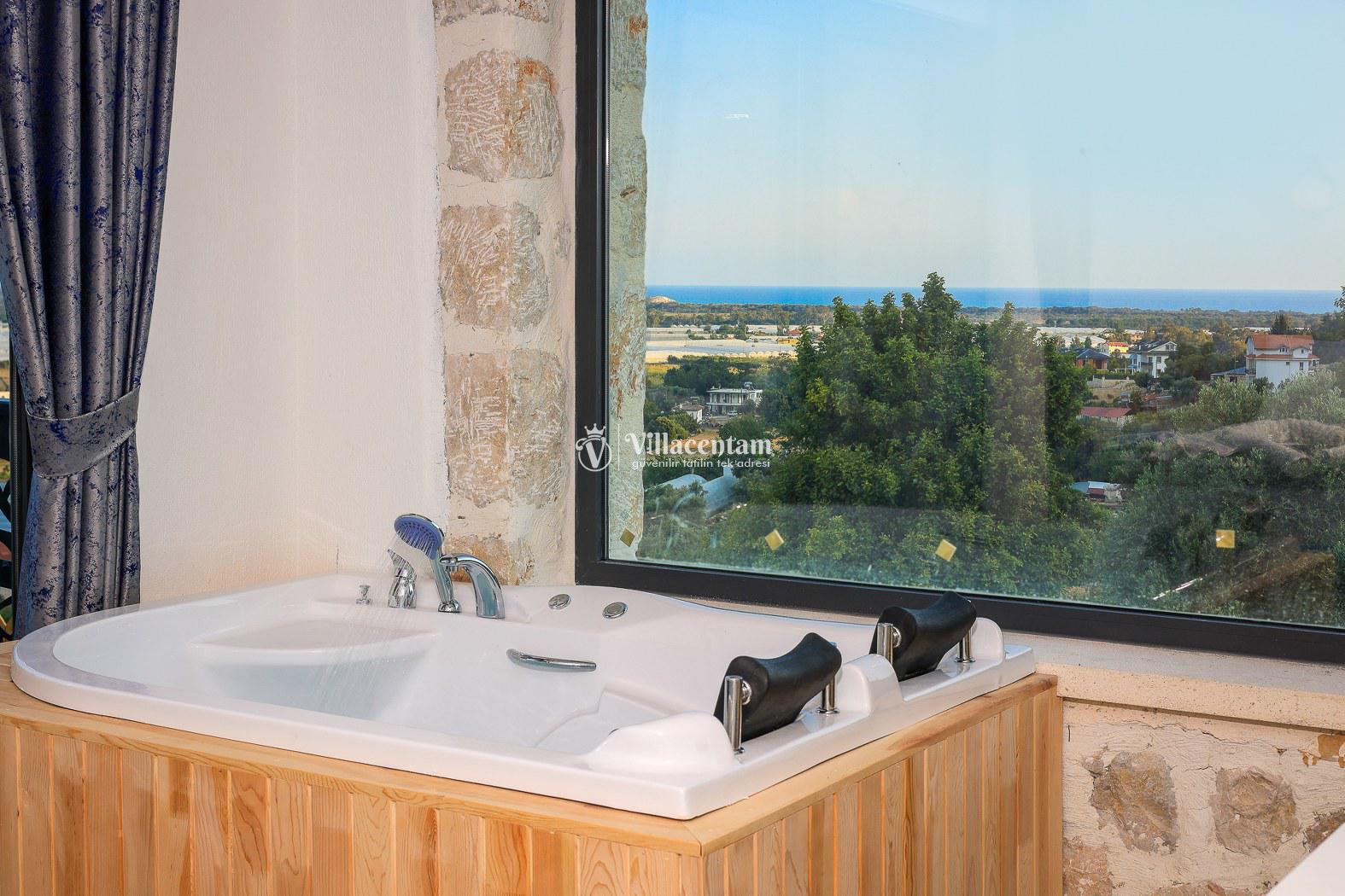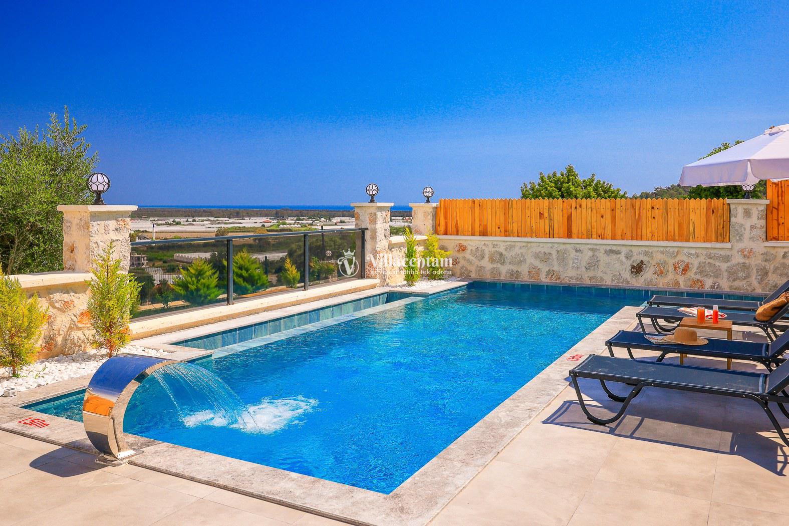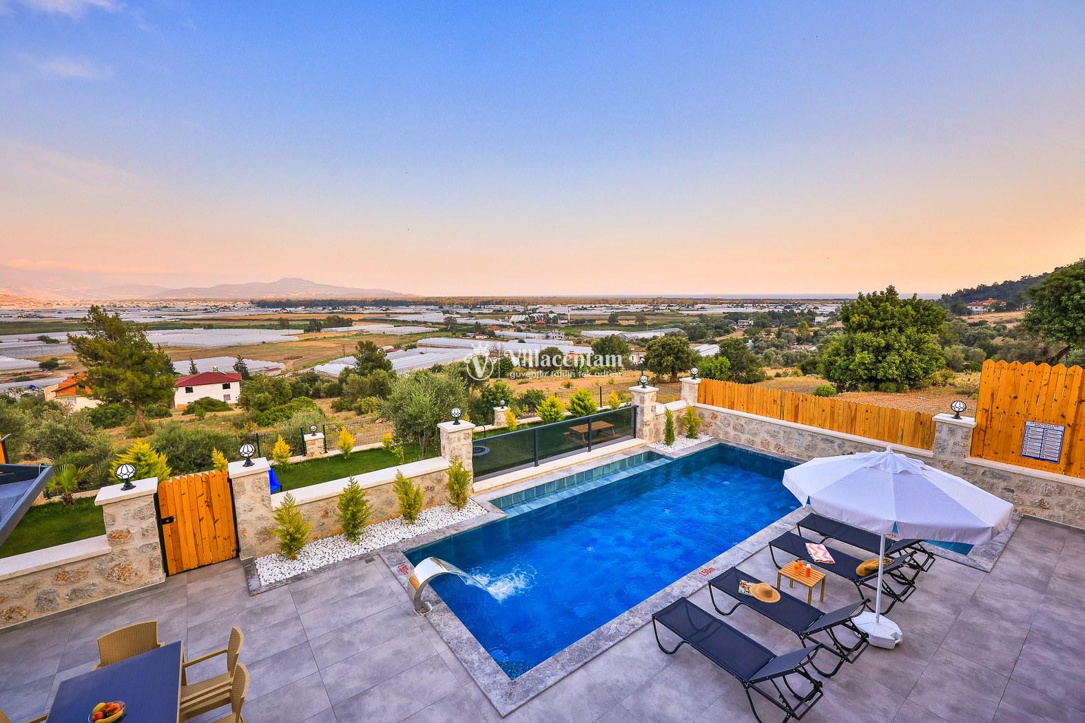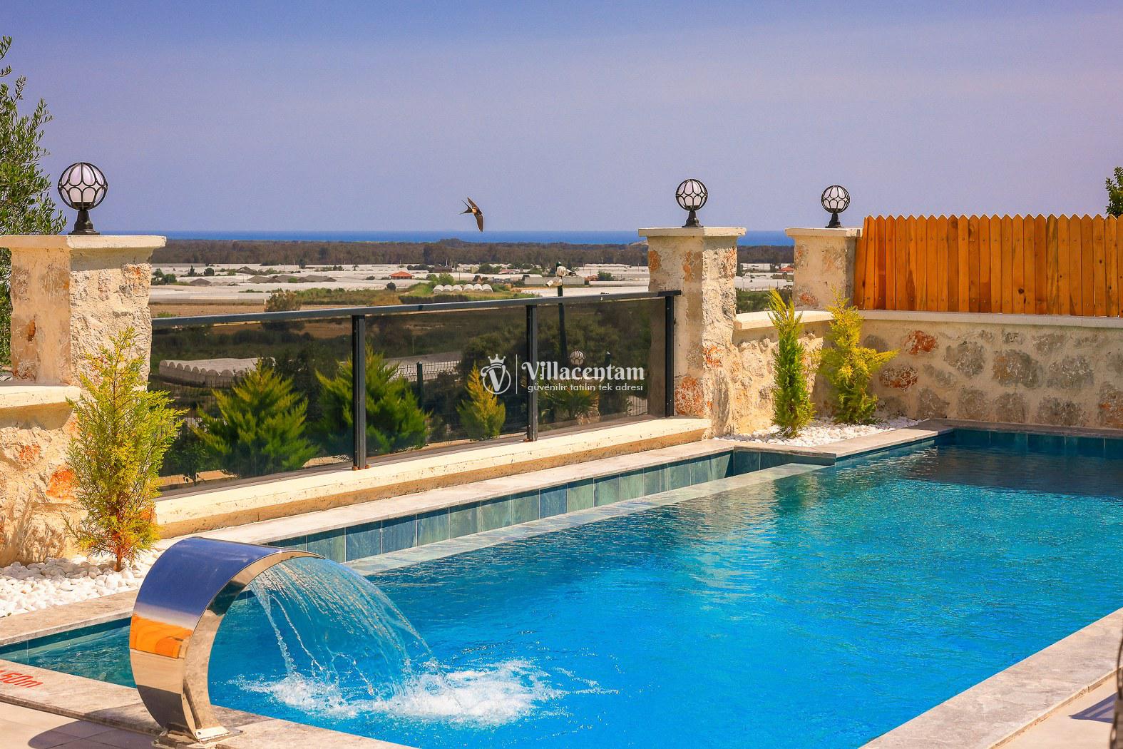 Villanın iç tasarımı modern ve rahat olup, ferah salon, tam donanımlı mutfak ve konforlu yatak odaları ile ev konforunda bir yaşam alanı sağlar. İki yatak odasında özel jakuzi bulunurken, ortak alanlarda da geniş yaşam alanları tatilinizi daha keyifli hâle getirir.