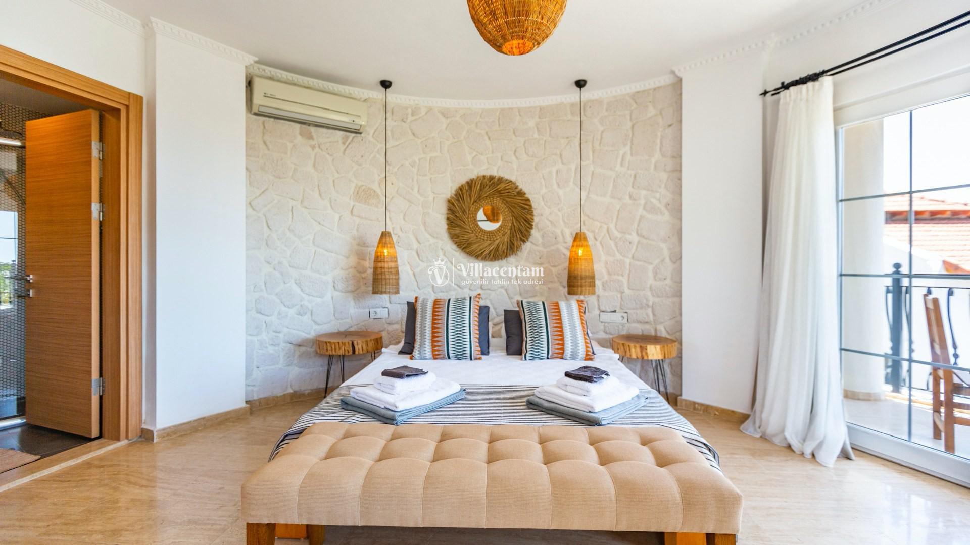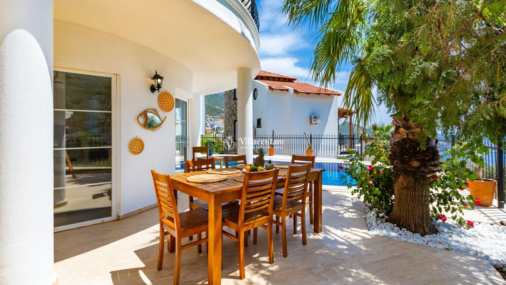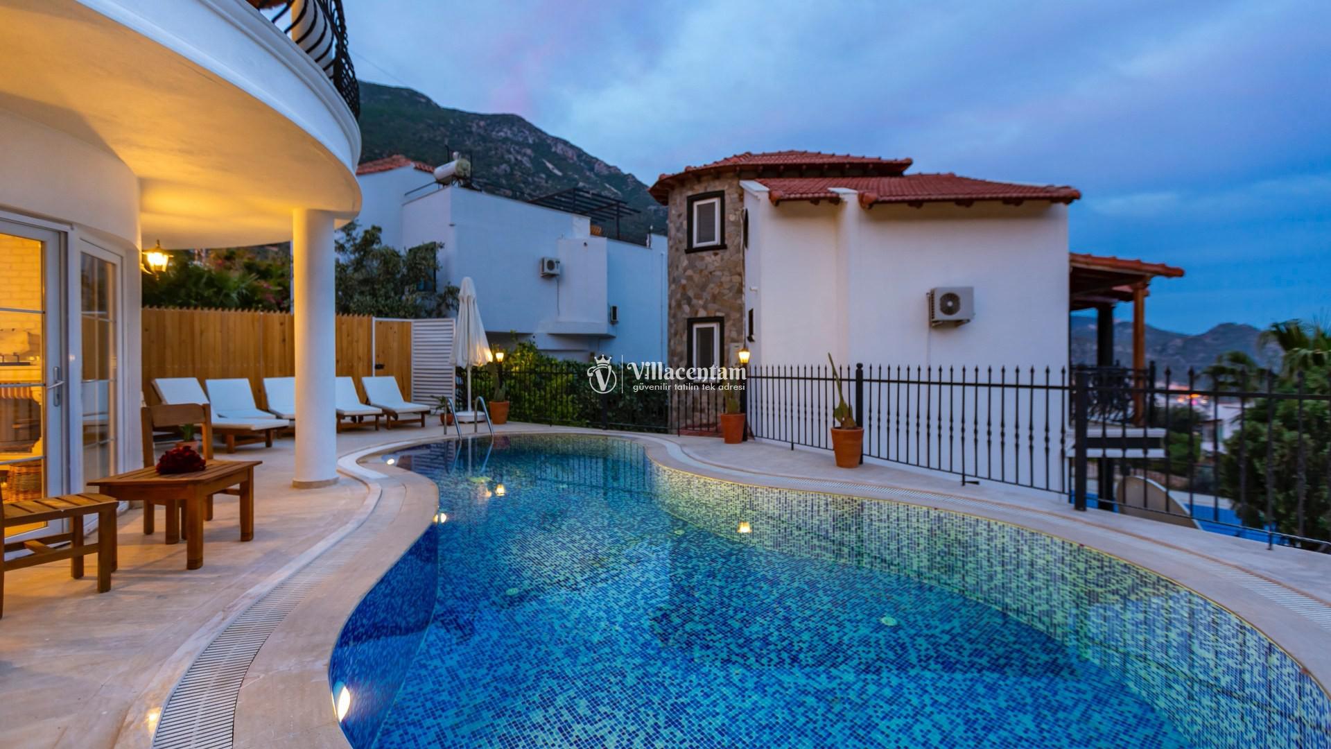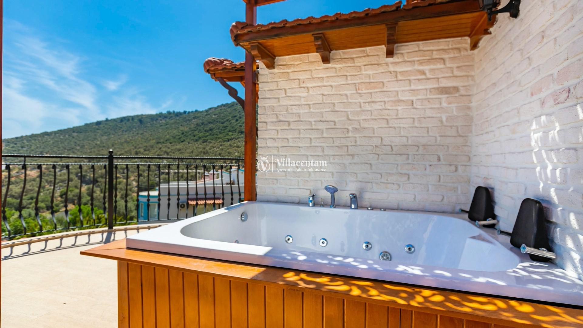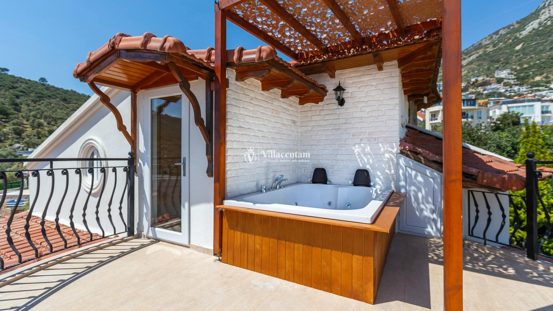 Modern tasarımı ve ferah yaşam alanlarıyla dikkat çeken villamızda özel yüzme havuzu ve havuz terasında bulunan jakuzi yer almaktadır. Geniş teras alanında gün batımını izleyebilir, Kalkan’ın eşsiz deniz manzarası eşliğinde keyifli vakit geçirebilirsiniz.