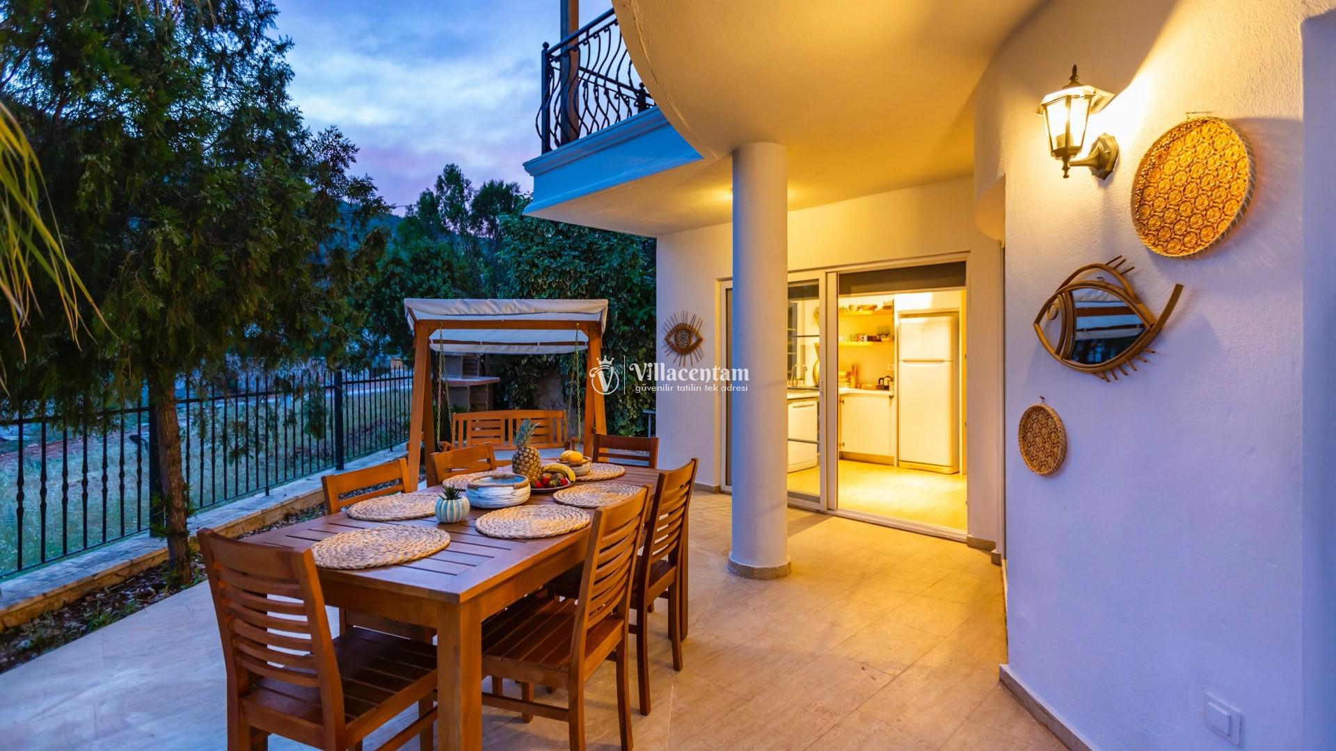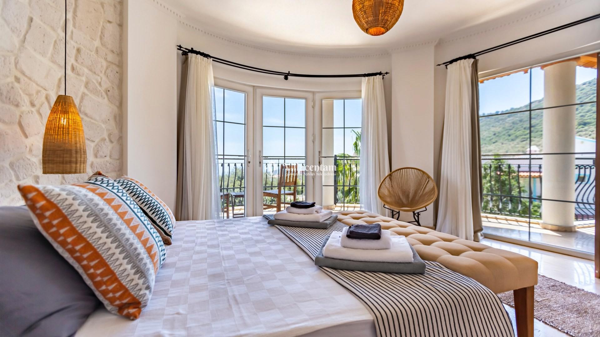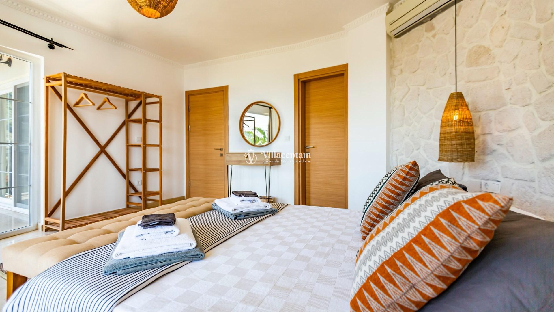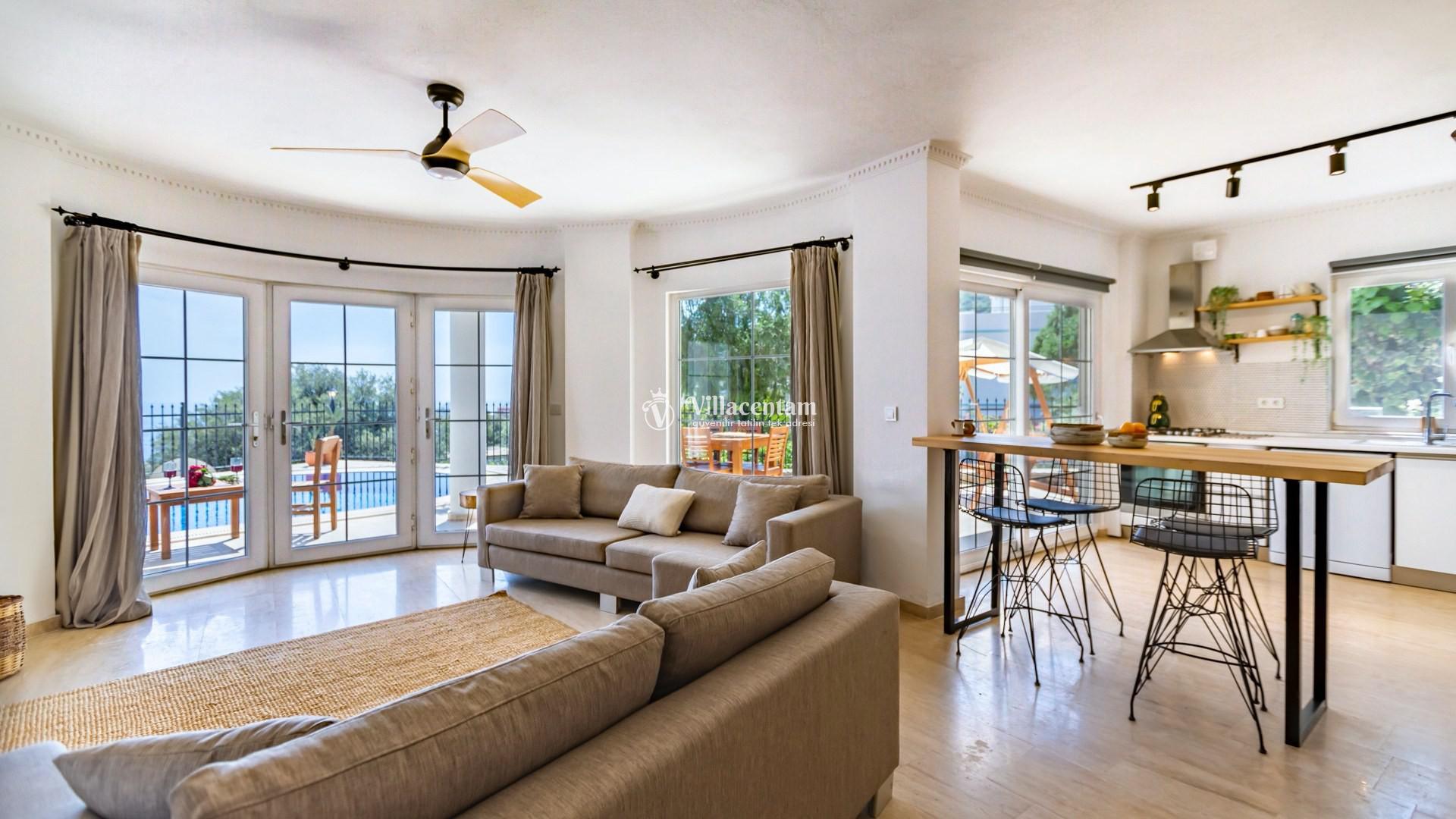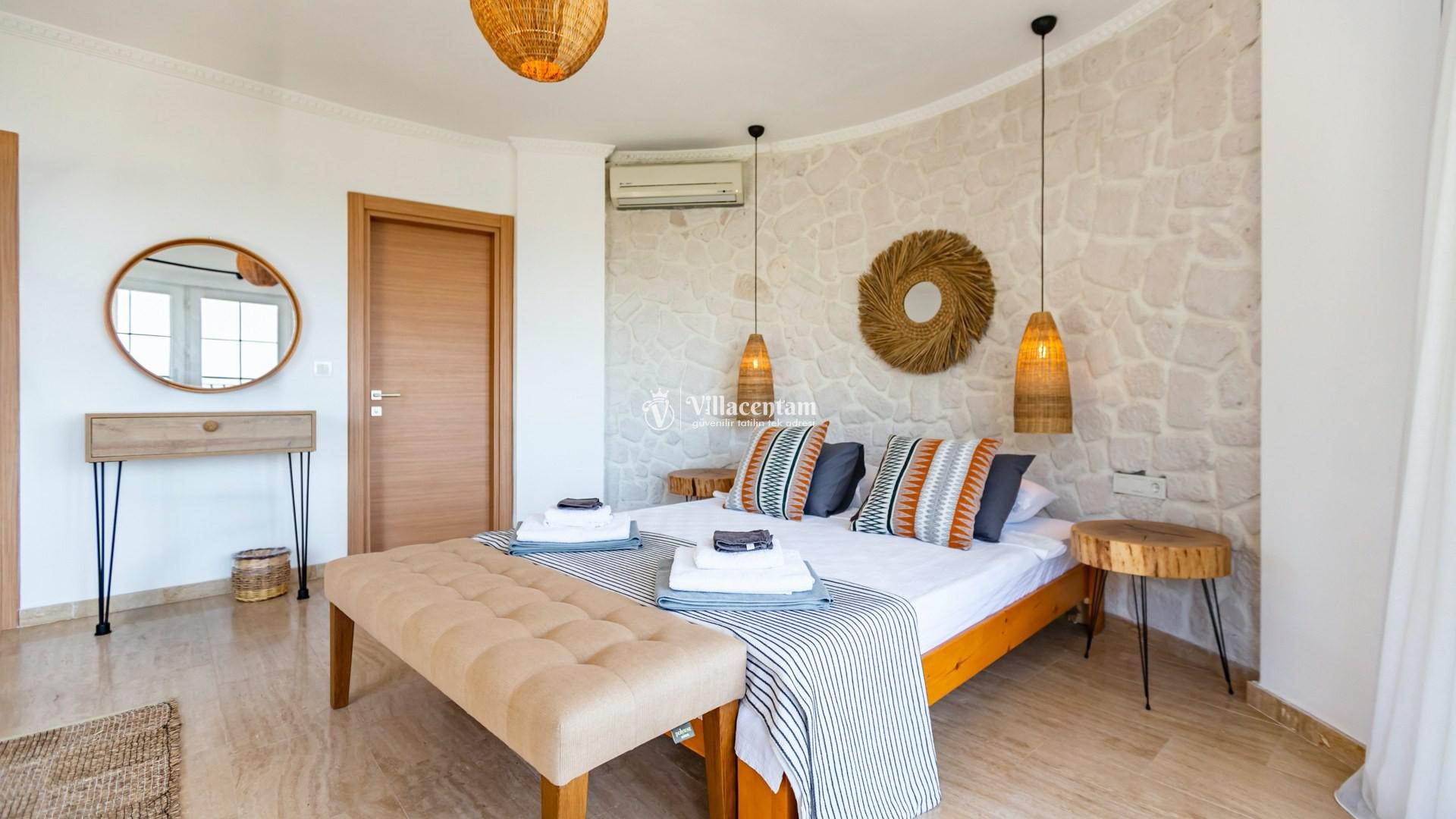 Modern tasarımı ve ferah yaşam alanlarıyla dikkat çeken villamızda özel yüzme havuzu ve havuz terasında bulunan jakuzi yer almaktadır. Geniş teras alanında gün batımını izleyebilir, Kalkan’ın eşsiz deniz manzarası eşliğinde keyifli vakit geçirebilirsiniz.