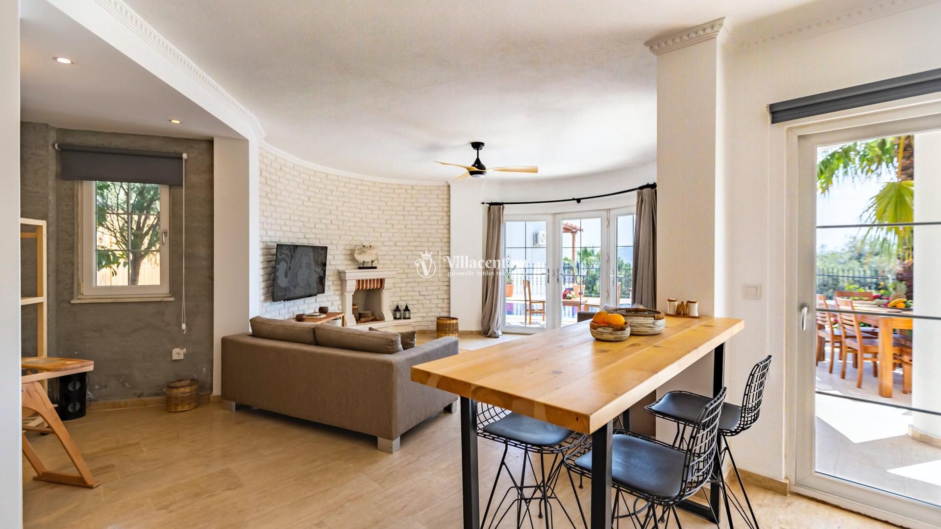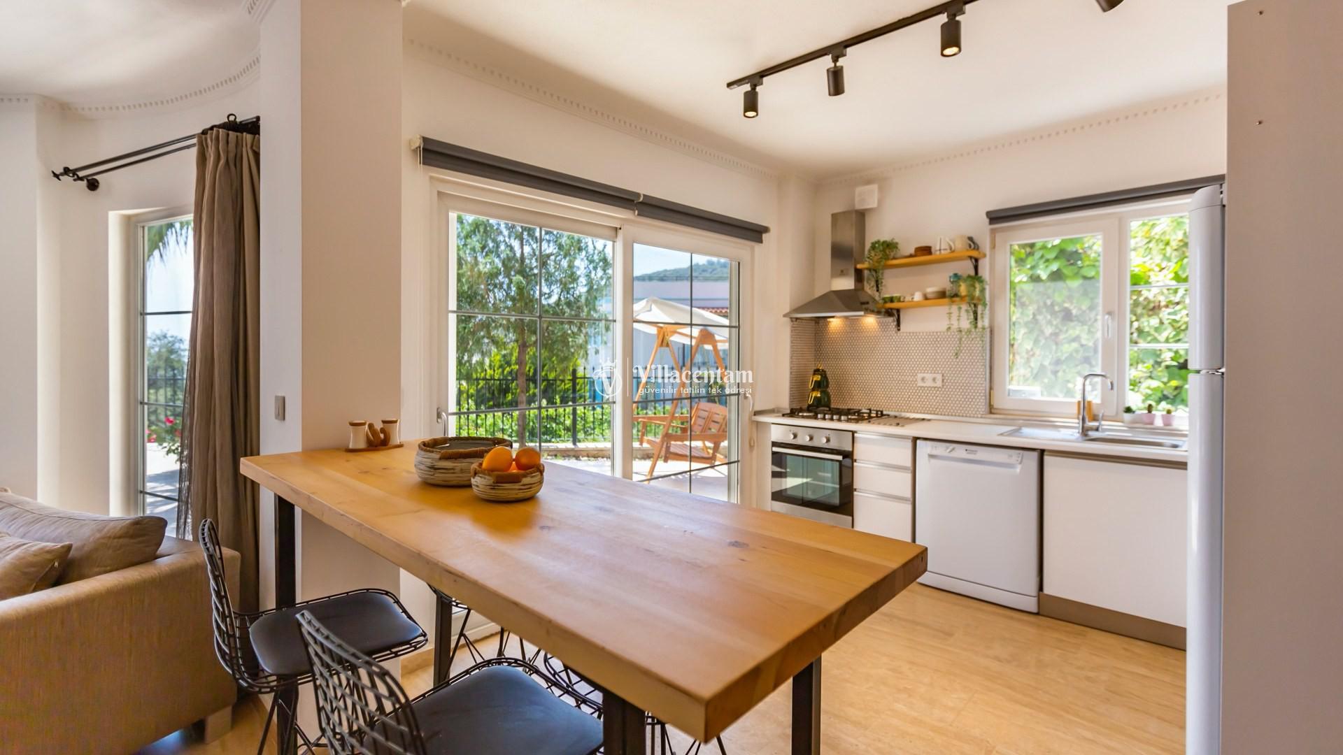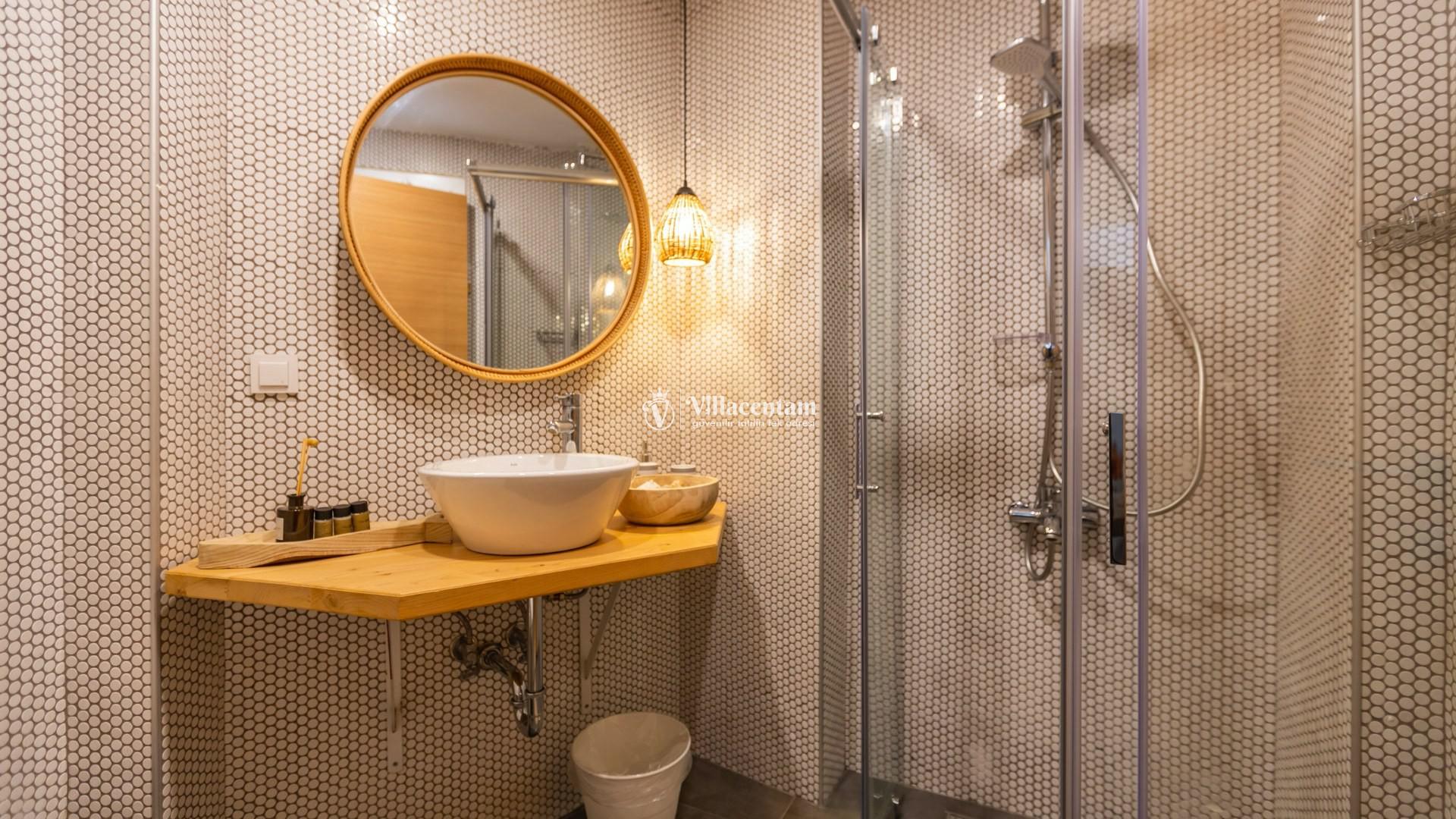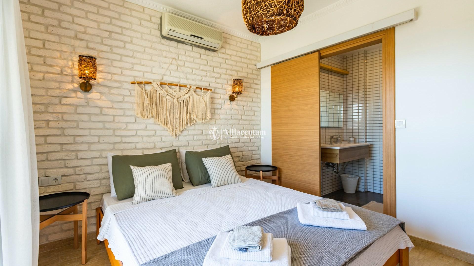 *Villalarda sıcak su için güneş enerjili su ısıtma sistemleri kullanılmaktadır. Çok yoğun sıcak su kullanımında, yoğunluğa ve su tankının büyüklüğüne bağlı olarak su tankında sıcak su tükenebilmekte ve tekrar suyun ısınması için belirli bir süre geçmesi gerekmektedir. Bu not sadece bu villa ile ilgili değil, tüm villalarımız için geçerli bir durumdur.