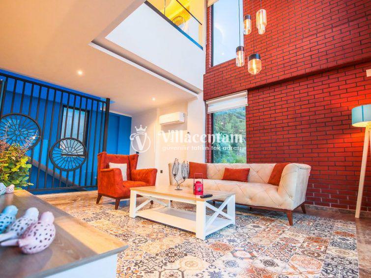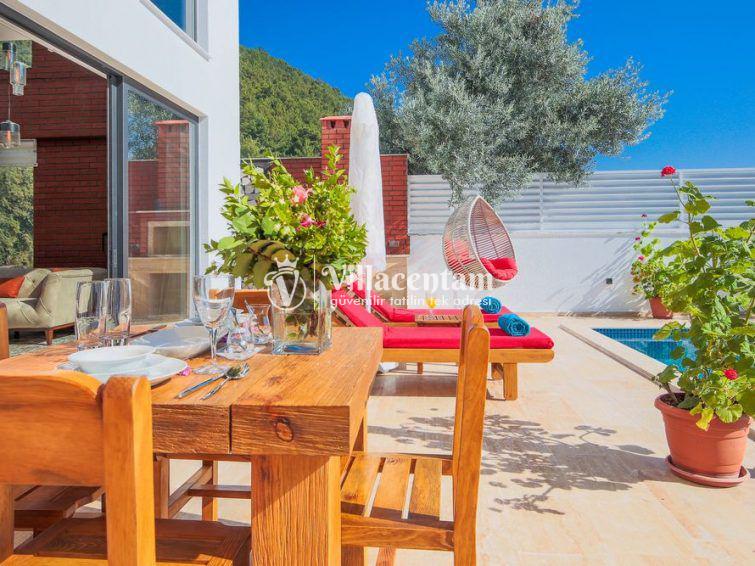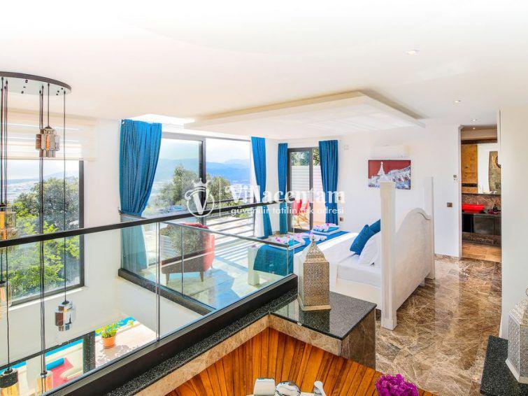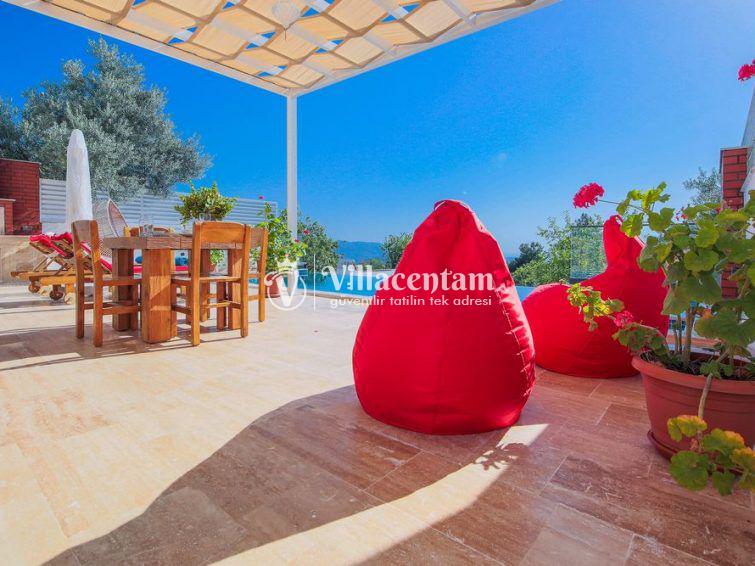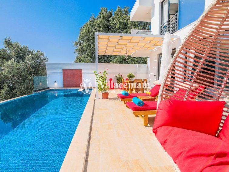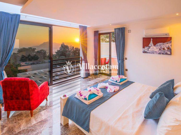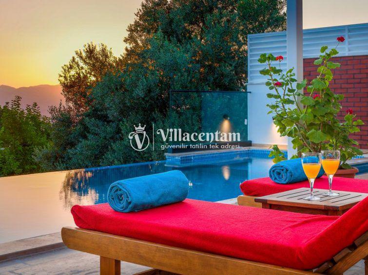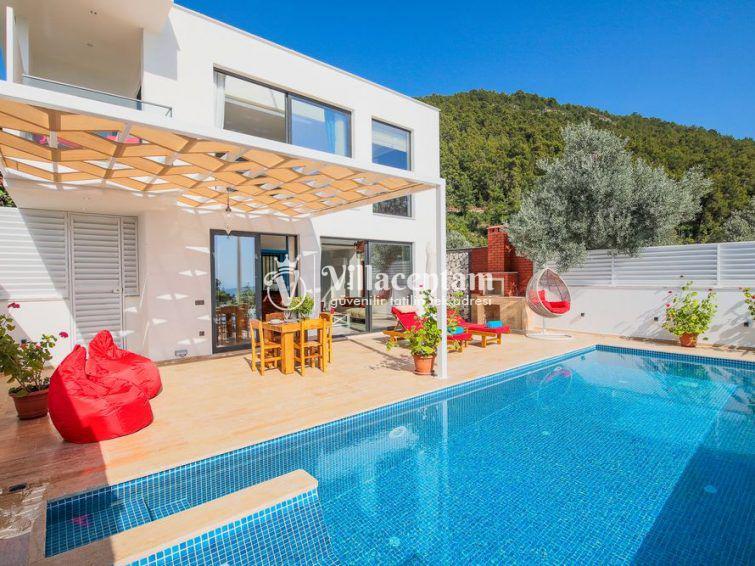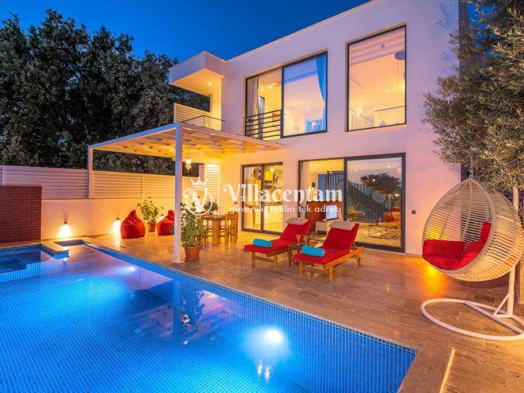 Villa Sazak, Kalkan Üzümlü mevkiinde konumlanan villamız 2 kişi konaklama kapasiteli doğanın eşsiz güzelliğiyle çevrili, huzur ve mahremiyetin ön planda tutulduğu bu özel villa; romantik, konforlu ve lüks bir tatil deneyimi arayan çiftler için özenle tasarlanmıştır. Şehir hayatının karmaşasından uzak, tamamen doğa ile iç içe bir konumda yer alan villa, iki kişilik konaklama kapasitesiyle özellikle balayı çiftleri ve baş başa tatil yapmak isteyen misafirler için ideal bir seçenektir.Villanın en dikkat çekici özelliklerinden biri, jakuzili ve ısıtmalı kapalı yüzme havuzudur. Dört mevsim boyunca rahatlıkla kullanılabilen bu özel alan, hava koşullarından bağımsız olarak kesintisiz bir yüzme keyfi sunar. Isıtma sistemi sayesinde serin günlerde dahi sıcak ve konforlu bir ortam sağlanırken, jakuzili yapısı suyun rahatlatıcı etkisini en üst seviyeye taşır. Mahremiyete önem veren mimarisi ile kapalı havuz alanı, size tamamen özel bir dinlenme ve yenilenme alanı sunmaktadır.Villada yer alan özel sauna, tatilinize ayrıcalık katan bir diğer önemli detaydır. Günün yorgunluğunu atabileceğiniz sauna alanı, bedeninizi ve zihninizi arındırarak derin bir rahatlama sağlar.