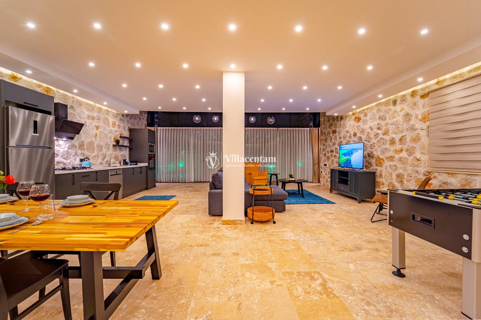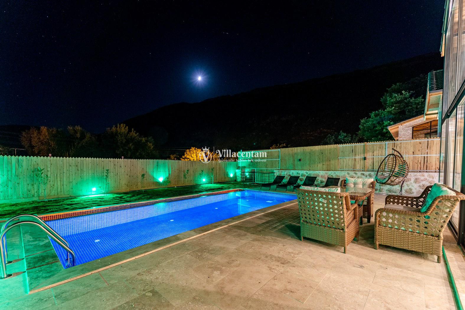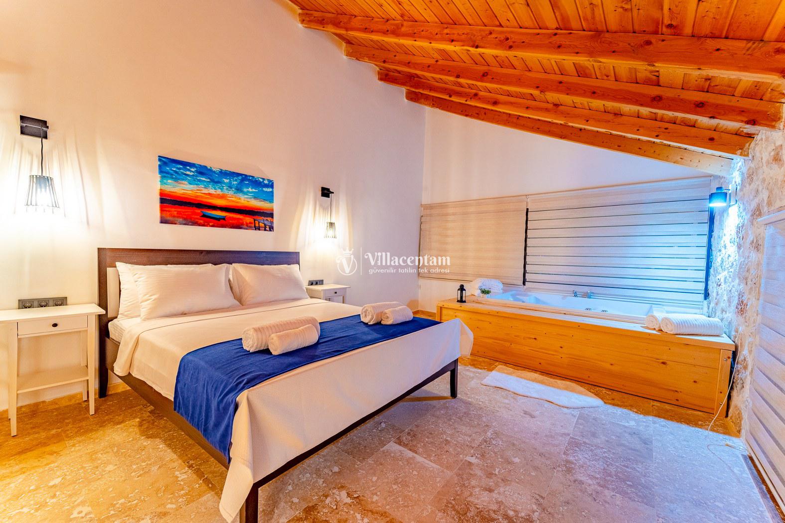 Villa Sebastian, Kalkan Bezirgan köyünde konumlanmakta olan yeşilliklerle kaplı doğa manzarasına hakim kiralık villalarımız arasında yer almaktadır. Şık ve konforlu bir şekilde konumlanmakta olan yazlık villamızda 2 adet yatak odası bulunmakta olup, 4 kişiye konaklama imkanı sağlamaktadır. Yatak odalarından iki tanesinin içerisinde tüm yılın vermiş olduğu yorgunluğu giderebileceğiniz jakuzi bulunmaktadır. Havuz ve havuz terası korunaklı olan kiralık villamızı muhafazakar aileler, balayı çiftleri ve çekirder aileler rahatlıkla tercih edebilirler. Her bir detayın en ince ayrıntısına kadar düşünüldüğü yazlık villamızda langırt bulunmaktadır. Tüm gözlerden uzakta sessizlik ve sakinlik içerisinde huzur dolu bir yazlık villada tatili için Villa Sebastian’ ı tercih edebilirsiniz.