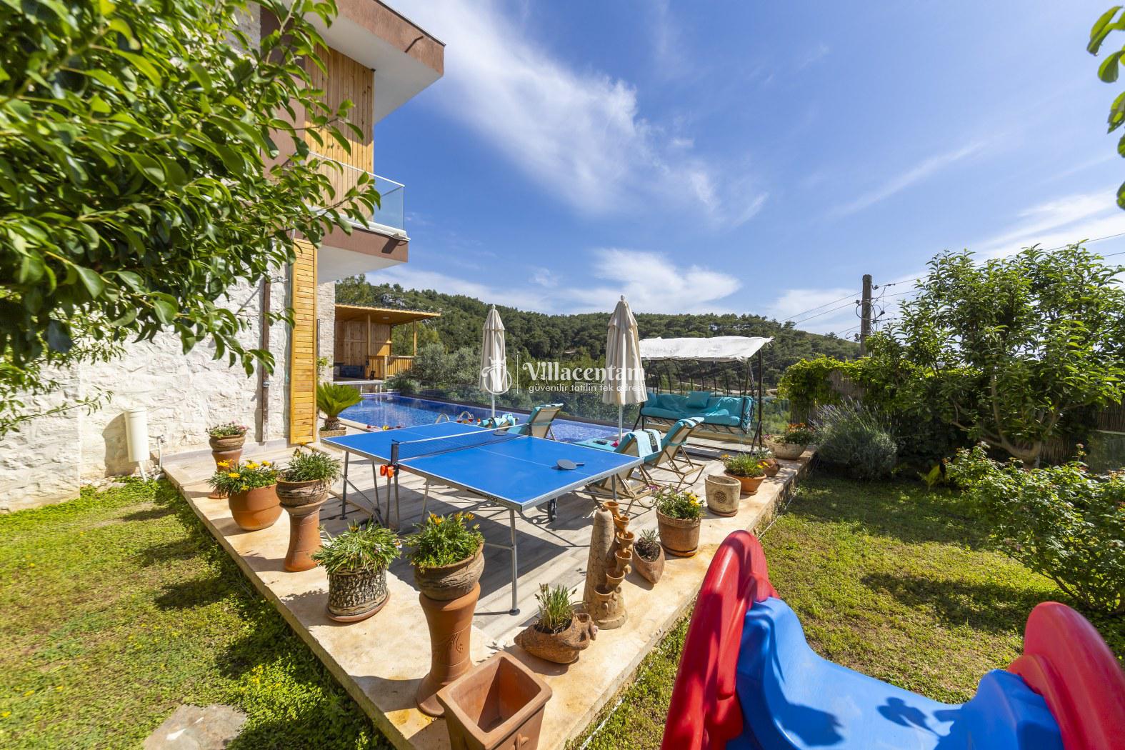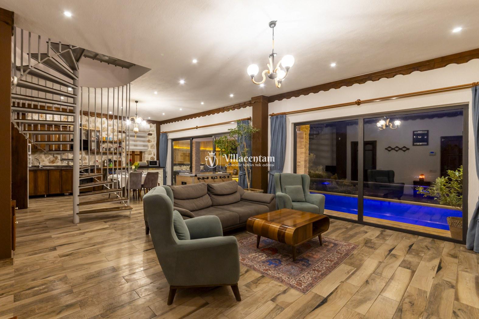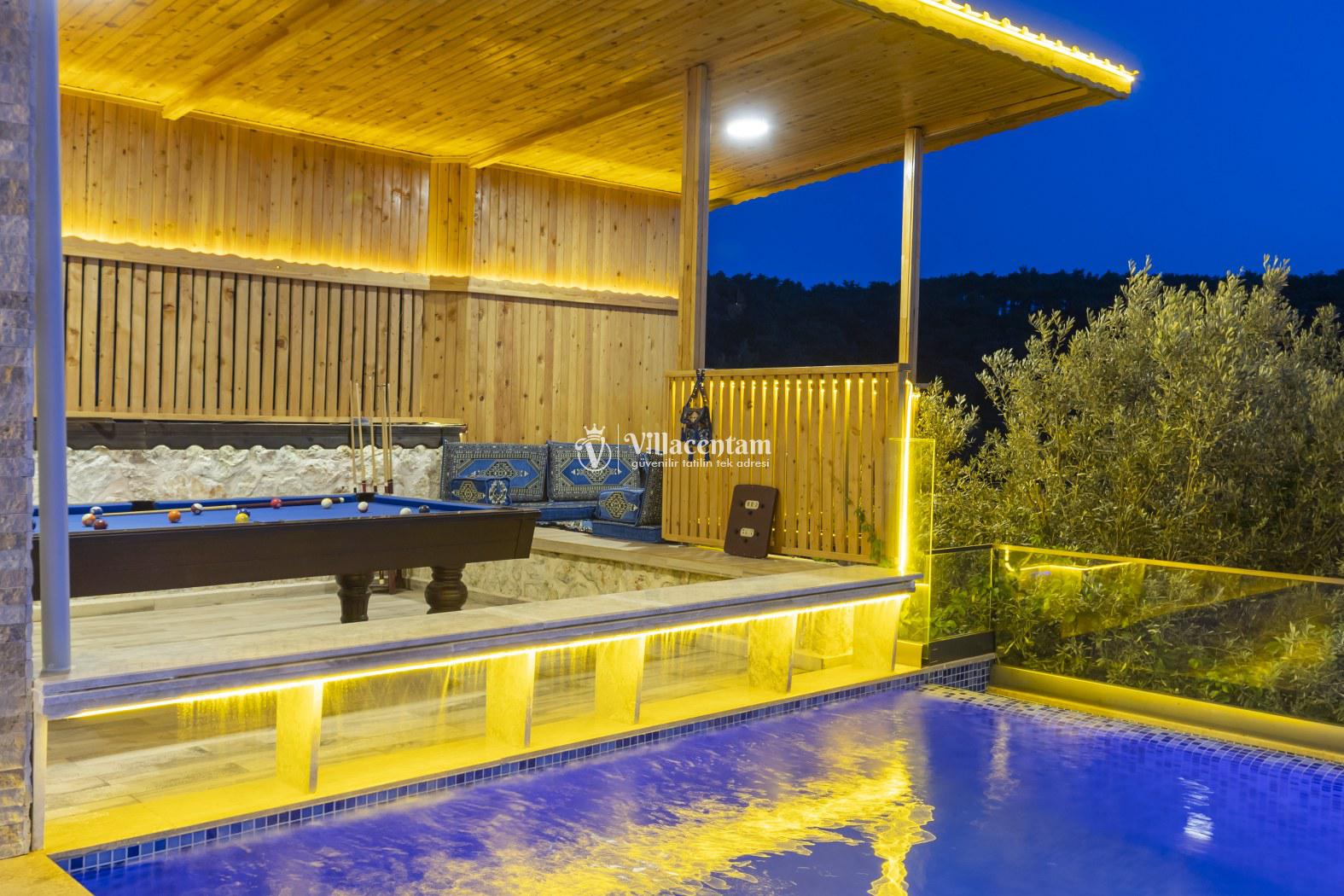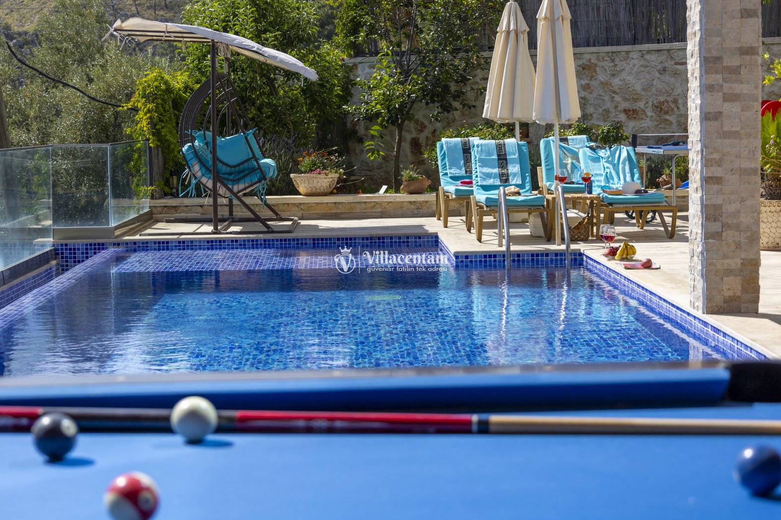 Kalkanın Üzümlü köyünde yer alan Villa Şelale, 2 katlı kiralık bir villamızdır. İç ve dış dekorasyonunun özenle hazırlandığı villamız son derece konforlu olup, 2 adet yatak odasına sahiptir. Konaklama kapasitesi 5 kişiliktir. Tatiliniz boyunca aradığınız her şeyi içerisinde barındıran yazlık villanın yatak odasında kapalı ısıtmalı havuz sistemi bulunmaktadır. Eğlenceli zaman geçirebilmeniz için villamızda masa tenisi ve langort mevcuttur. Yazlık villada tatilinizi özel hale getirebilmek adına havuz terası korunaklı hale getirilen kiralık villamızı muhafazakar aileler, balayı çiftleri ve gözlerden uzakta tatil geçirmek isteyen tüm aileler tercih edebilirler.