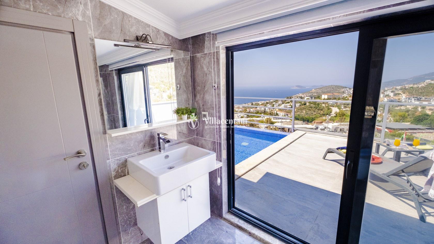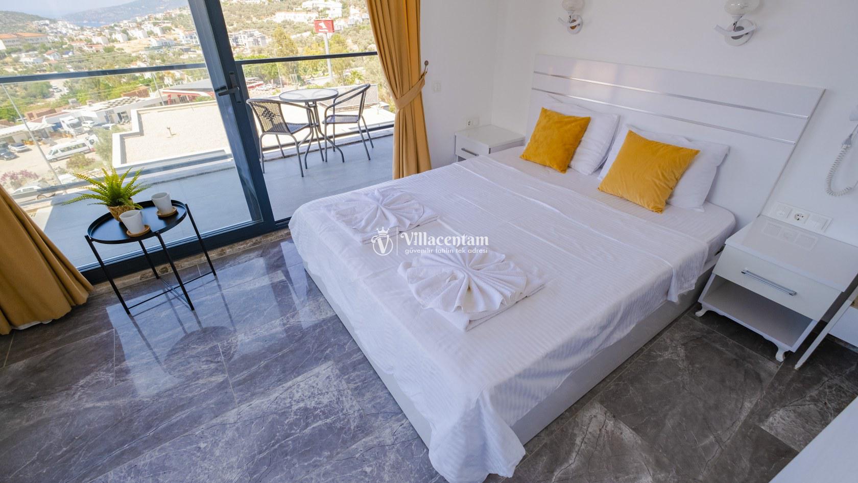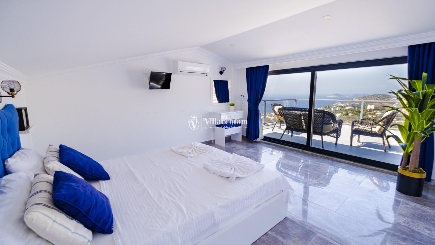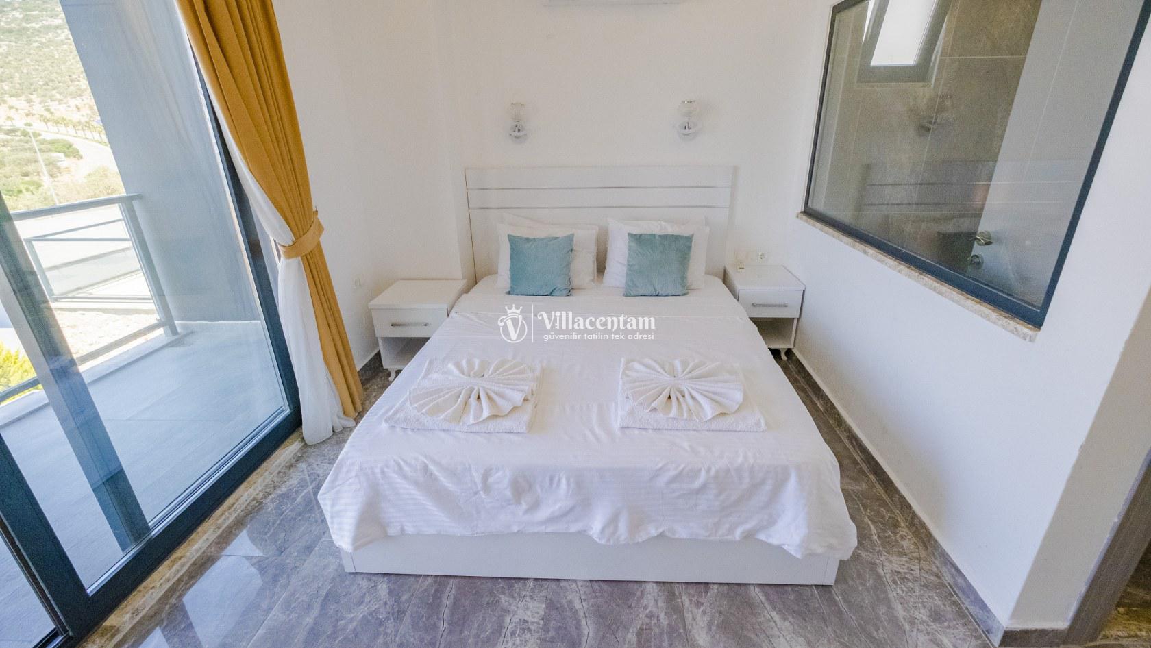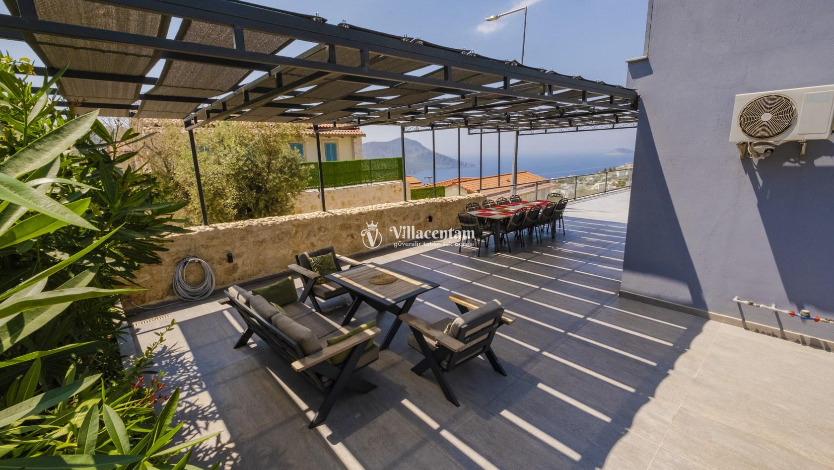 Villa Şelale 1, Antalya’nın gözde tatil merkezlerinden Kalkan’da, panoramik deniz manzarasına hâkim konumuyla lüks ve konforu bir arada sunan özel bir tatil villasıdır. Toplam 5 suit yatak odası ve 10 kişilik konaklama kapasitesi sayesinde geniş aileler ve arkadaş grupları için ideal olan villa, modern mimarisi ve ferah yaşam alanlarıyla ayrıcalıklı bir tatil deneyimi yaşatır. Deniz manzaralı geniş salonu, şık oturma grubu ve tam donanımlı açık mutfağı ile günün her anında rahat ve keyifli vakit geçirmenize olanak tanır. Villanın her biri özel banyolu yatak odaları konfor ön planda tutularak tasarlanmış olup, bazı odalardan havuz terasına veya balkona doğrudan çıkış imkânı bulunmaktadır. Dış alanda yer alan özel yüzme havuzu ve çatı katındaki ikinci havuz, gün boyu güneşlenme ve manzaranın tadını çıkarma fırsatı sunarken; şezlonglar, oturma alanları, barbekü köşesi ve masa tenisi gibi detaylar tatilinizi daha keyifli hale getirir. Kalkan merkeze ve sosyal alanlara yakın konumuyla hem sakin hem de ulaşımı kolay bir tatil imkânı sunan Villa Şelale 1, deniz manzaralı, geniş ve konforlu bir villa tatili arayan misafirler için kusursuz bir seçenektir.