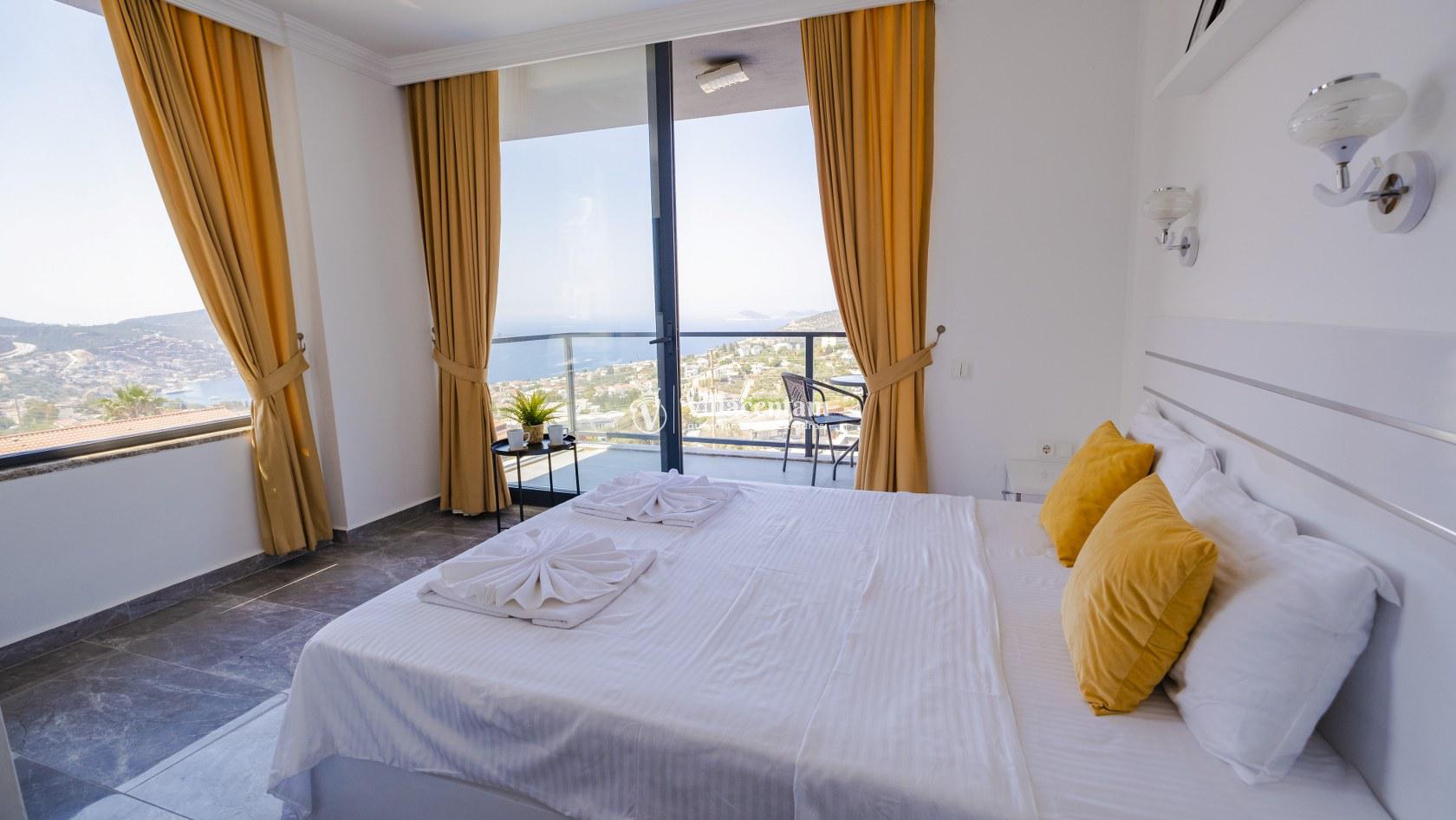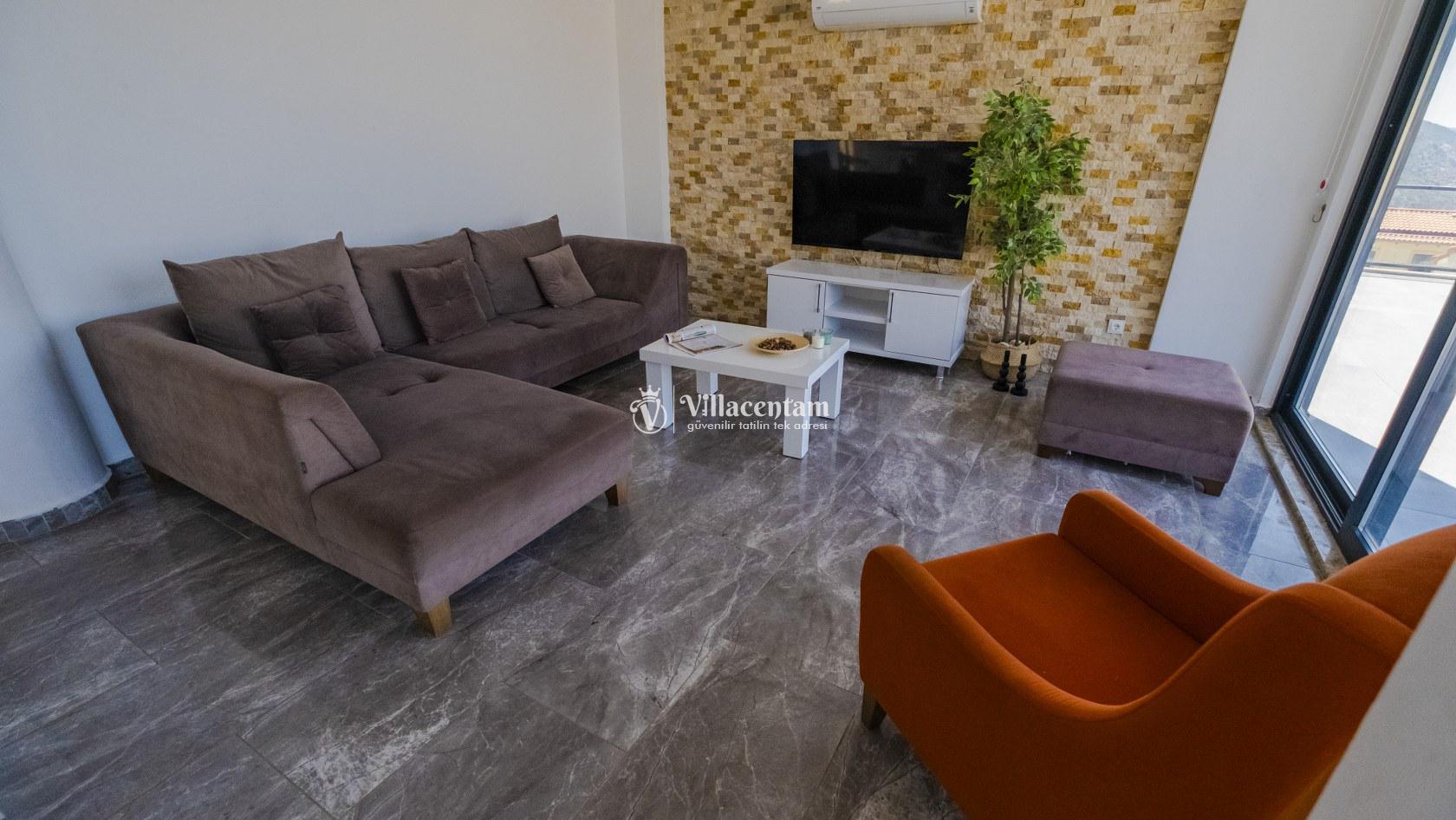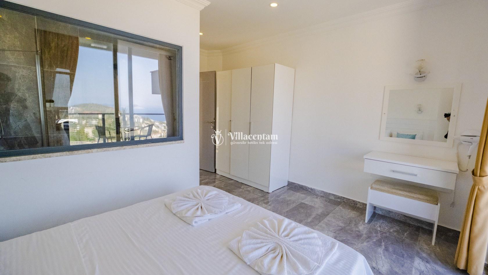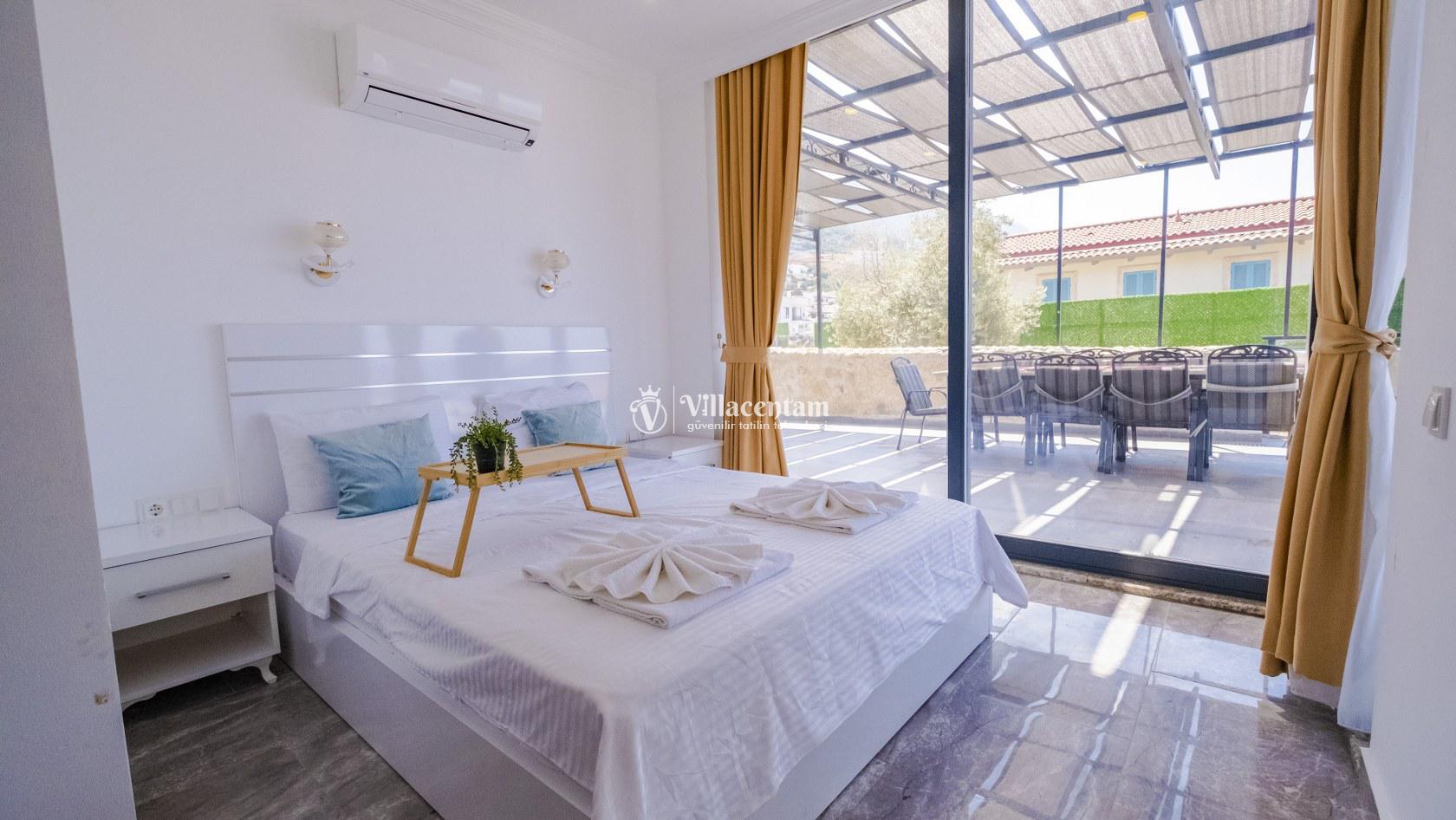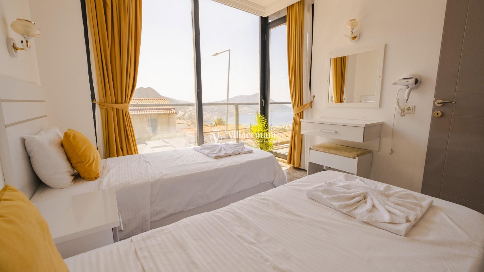 Villa Şelale 1, Antalya’nın gözde tatil merkezlerinden Kalkan’da, panoramik deniz manzarasına hâkim konumuyla lüks ve konforu bir arada sunan özel bir tatil villasıdır. Toplam 5 suit yatak odası ve 10 kişilik konaklama kapasitesi sayesinde geniş aileler ve arkadaş grupları için ideal olan villa, modern mimarisi ve ferah yaşam alanlarıyla ayrıcalıklı bir tatil deneyimi yaşatır. Deniz manzaralı geniş salonu, şık oturma grubu ve tam donanımlı açık mutfağı ile günün her anında rahat ve keyifli vakit geçirmenize olanak tanır. Villanın her biri özel banyolu yatak odaları konfor ön planda tutularak tasarlanmış olup, bazı odalardan havuz terasına veya balkona doğrudan çıkış imkânı bulunmaktadır. Dış alanda yer alan özel yüzme havuzu ve çatı katındaki ikinci havuz, gün boyu güneşlenme ve manzaranın tadını çıkarma fırsatı sunarken; şezlonglar, oturma alanları, barbekü köşesi ve masa tenisi gibi detaylar tatilinizi daha keyifli hale getirir. Kalkan merkeze ve sosyal alanlara yakın konumuyla hem sakin hem de ulaşımı kolay bir tatil imkânı sunan Villa Şelale 1, deniz manzaralı, geniş ve konforlu bir villa tatili arayan misafirler için kusursuz bir seçenektir.