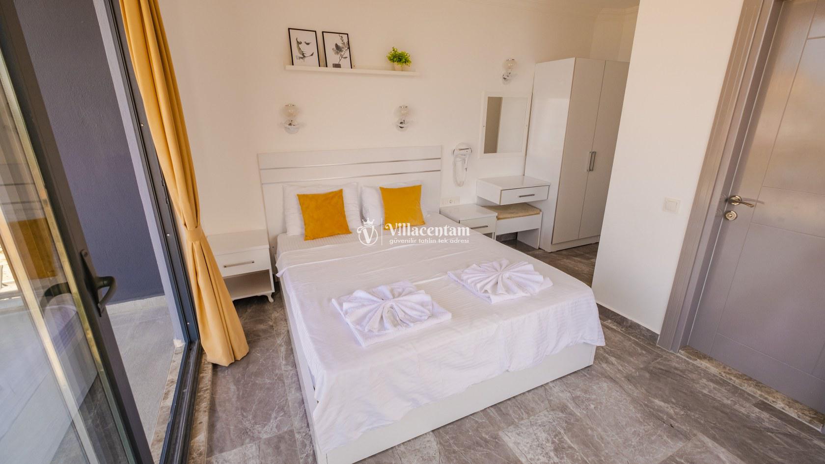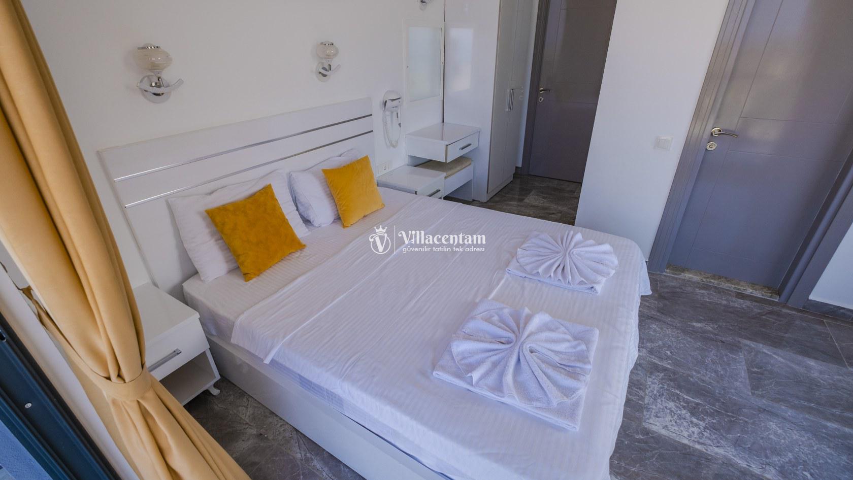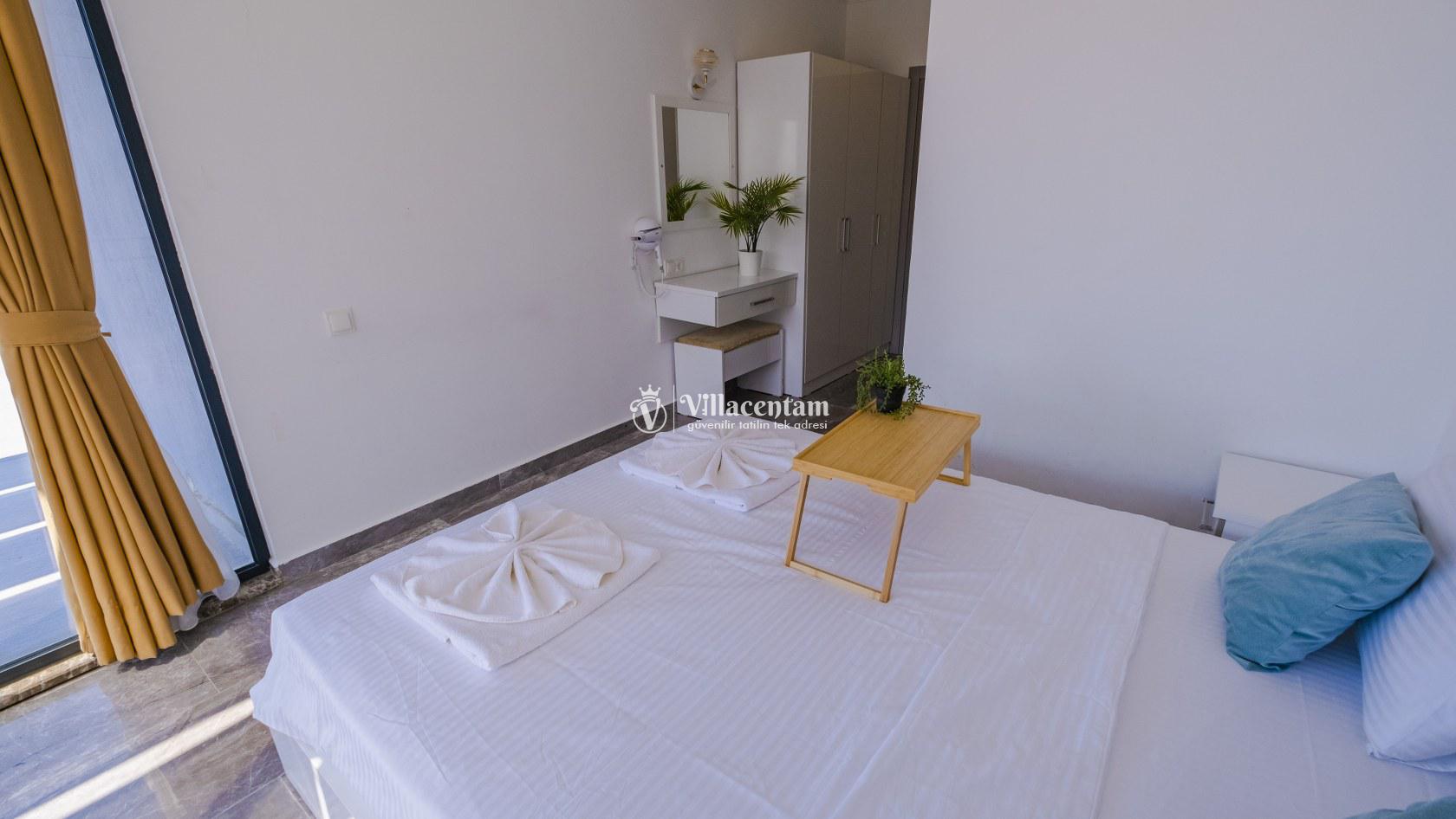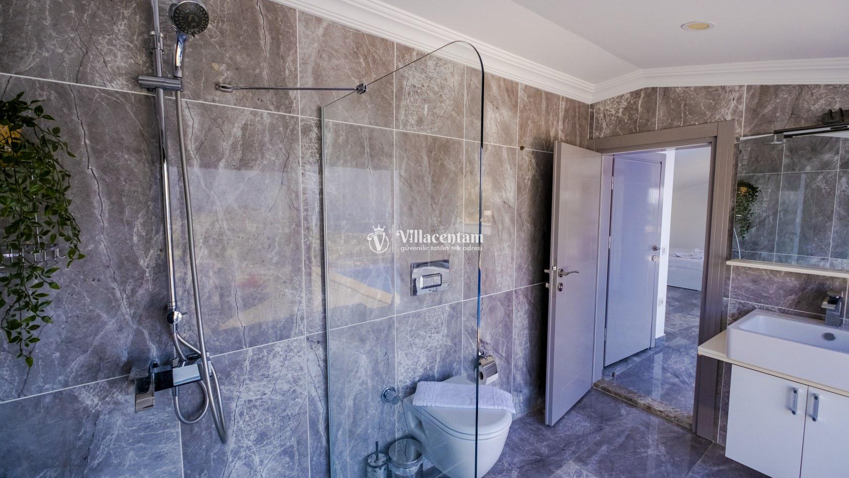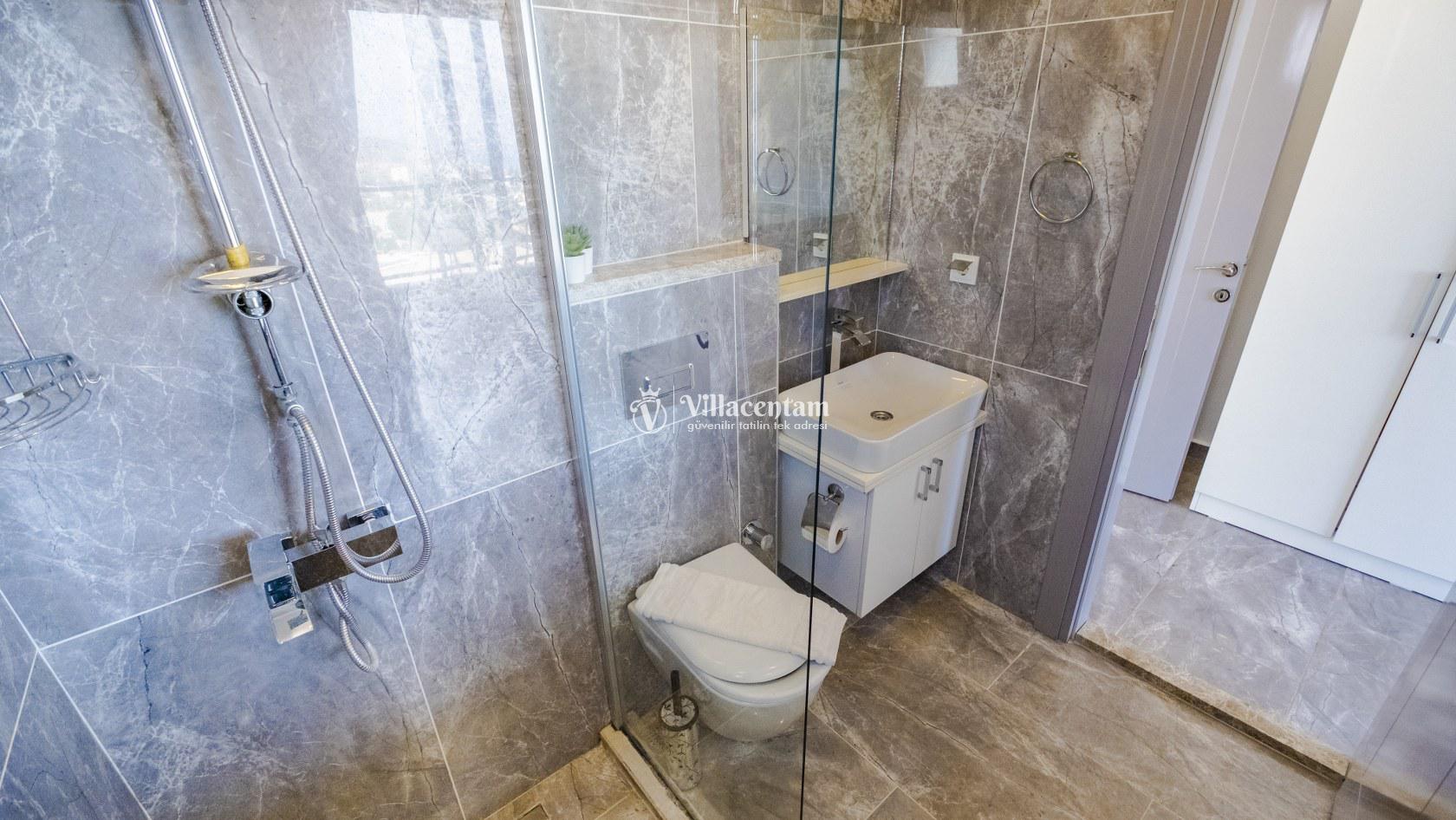 *Villalarda sıcak su için güneş enerjili su ısıtma sistemleri kullanılmaktadır. Çok yoğun sıcak su kullanımında, yoğunluğa ve su tankının büyüklüğüne bağlı olarak su tankında sıcak su tükenebilmekte ve tekrar suyun ısınması için belirli bir süre geçmesi gerekmektedir. Bu not sadece bu villa ile ilgili değil, tüm villalarımız için geçerli bir durumdur.