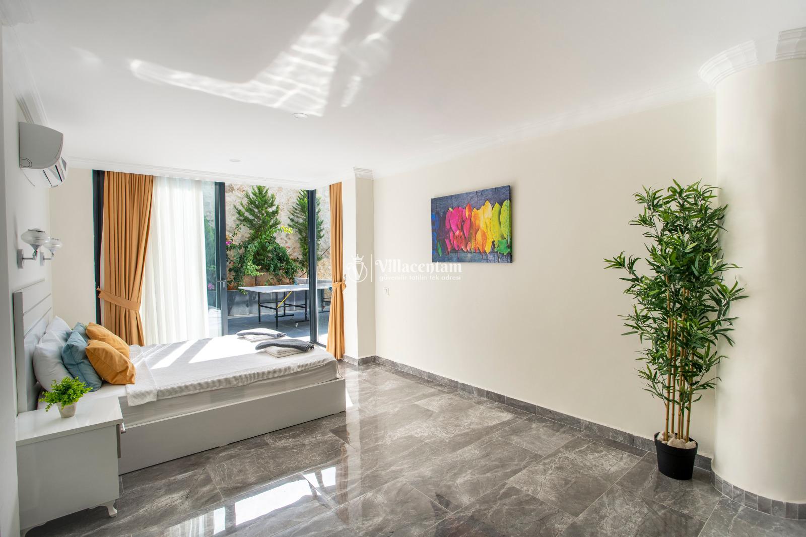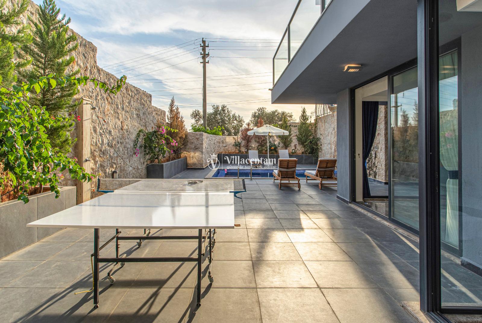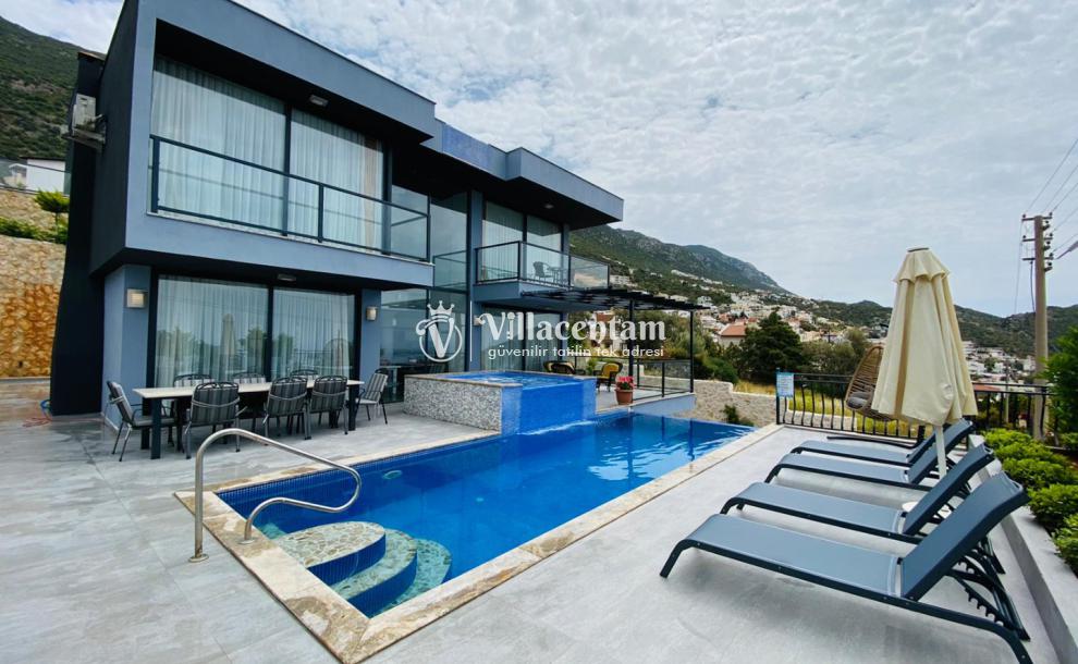 Villa Şelale 2, Antalya’nın popüler tatil beldesi Kalkan’ın Kızıltaş mevkiinde yer alan, geniş aileler ve arkadaş grupları için tasarlanmış modern ve konforlu bir tatil villasıdır. Toplam 5 + 1 odası ve 10 kişiye kadar konaklama kapasitesi ile özellikle büyük gruplar için ideal olan villa, sade ve çağdaş mimarisiyle ferah bir atmosfer sunar. Deniz manzaralı ve özenle tasarlanmış iç mekânlarında konfor unsurları ön planda tutulmuş olup zemin kattaki açık plan salon ve modern Amerikan mutfak alanı, tatil boyunca sosyal buluşmalar için mükemmel bir ortam sağlar. Villanın suit yatak odaları içinden deniz veya havuz manzarasını seyrederken rahat bir uyku deneyimi sunar ve her odada klima ile özel banyo gibi konfor özellikleri bulunur. Dış mekânda yer alan geniş özel yüzme havuzu, hem üst hem de alt havuz teraslarında güneşlenme alanları, barbekü köşesi, oturma grupları, masa tenisi ve şezlonglarla tatilinizi zenginleştirir. Havuz etrafında dinlenmek, gün boyu güneşin keyfini çıkarmak veya akşam barbekü keyfi yapmak için ideal bir ortam sunan villa, deniz ve doğaya yakın konumu ile unutulmaz bir Kalkan tatili vadeder.