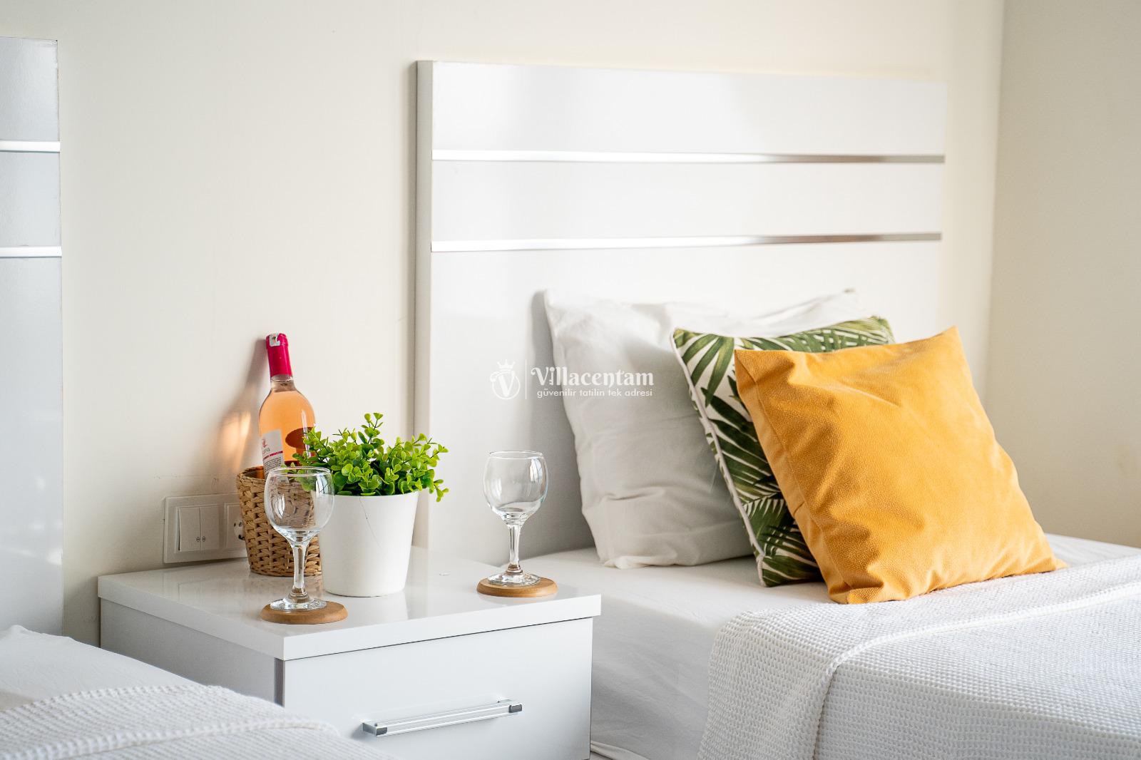 *Villalarda sıcak su için güneş enerjili su ısıtma sistemleri kullanılmaktadır. Çok yoğun sıcak su kullanımında, yoğunluğa ve su tankının büyüklüğüne bağlı olarak su tankında sıcak su tükenebilmekte ve tekrar suyun ısınması için belirli bir süre geçmesi gerekmektedir. Bu not sadece bu villa ile ilgili değil, tüm villalarımız için geçerli bir durumdur.