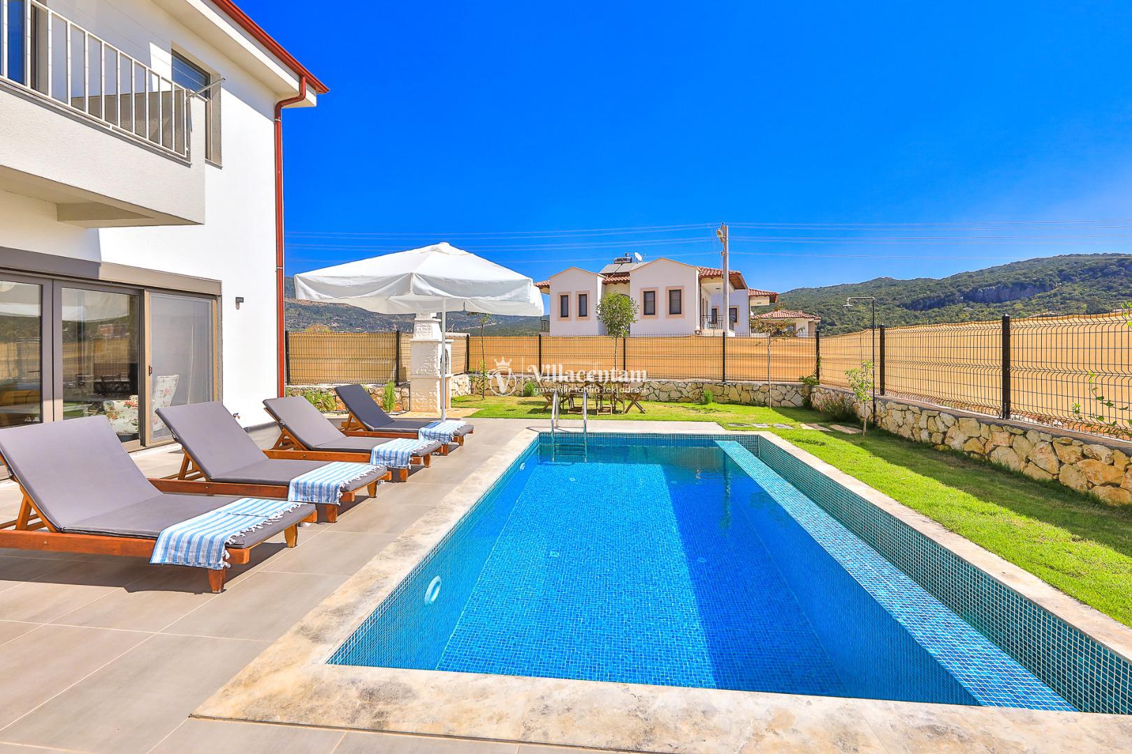 Villa Serenity Kaş,Kaş Çukurbağ köyünde konumlanmakta olan , yeşilliklerle kaplı muhteşem doğa manzarasına hakim kiralık villalarımız arasında yer almaktadır. Modern ve konforlu bir şekilde dekore edilen yazlık villamızda 3 adet yatak odası bulunmakta olup, 6 kişiye konaklama imkanı sağlamaktadır. Ferah bir havuz terasına sahip olan kiralık villamızı çekirdek aileler ve balayı çiftlerimiz gönül rahatlığı ile tercih edebilirler. Tüm gözlerden uzakta sevdiklerinizle baş başa, huzurlu ve keyifli bir yazlık villada tatil için Serenity Kaş doğru bir tercih olacaktır.