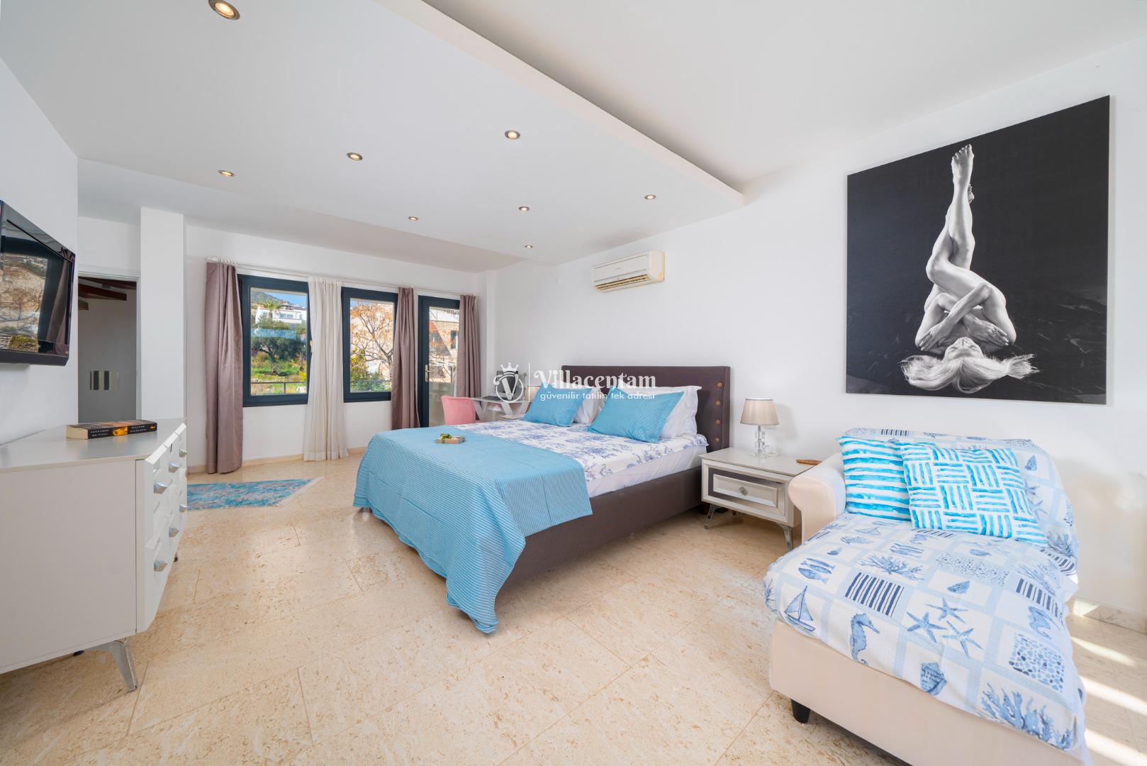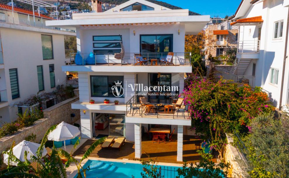 Kalkan Merkez de konumlanmış olan Villa Simena, 3 katlı lüks kiralık villalarımız arasında yer almaktadır. Deniz ve doğa manzarasına hakim olan villamız da sevdiklerinizle huzur dolu anların tadını çıkaracak ve tüm yorgunluğunuzu atacaksınız. Şık ve konforlu bir şekilde dizayn edilmiş olan kiralık villamızda 4 adet yatak odası bulunmakta olup, 8 kişi konaklayabilmektedir. Master süit yatak odasının içerisinde jakuzi de bulunmaktadır. Market ve restoranlara yürüme mesafesinedir. Havuz terası donanımlı ve ferahtır. Geniş aileler ve arkadaş grupları tercih edebilir ve heyecan dolu anların tadını çıkarabilirler.
