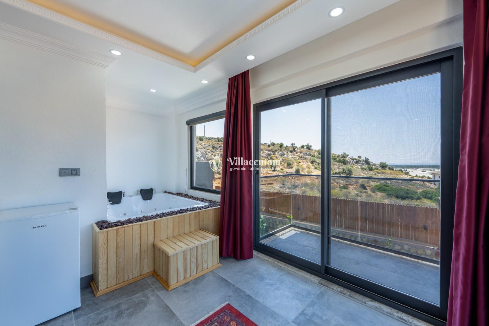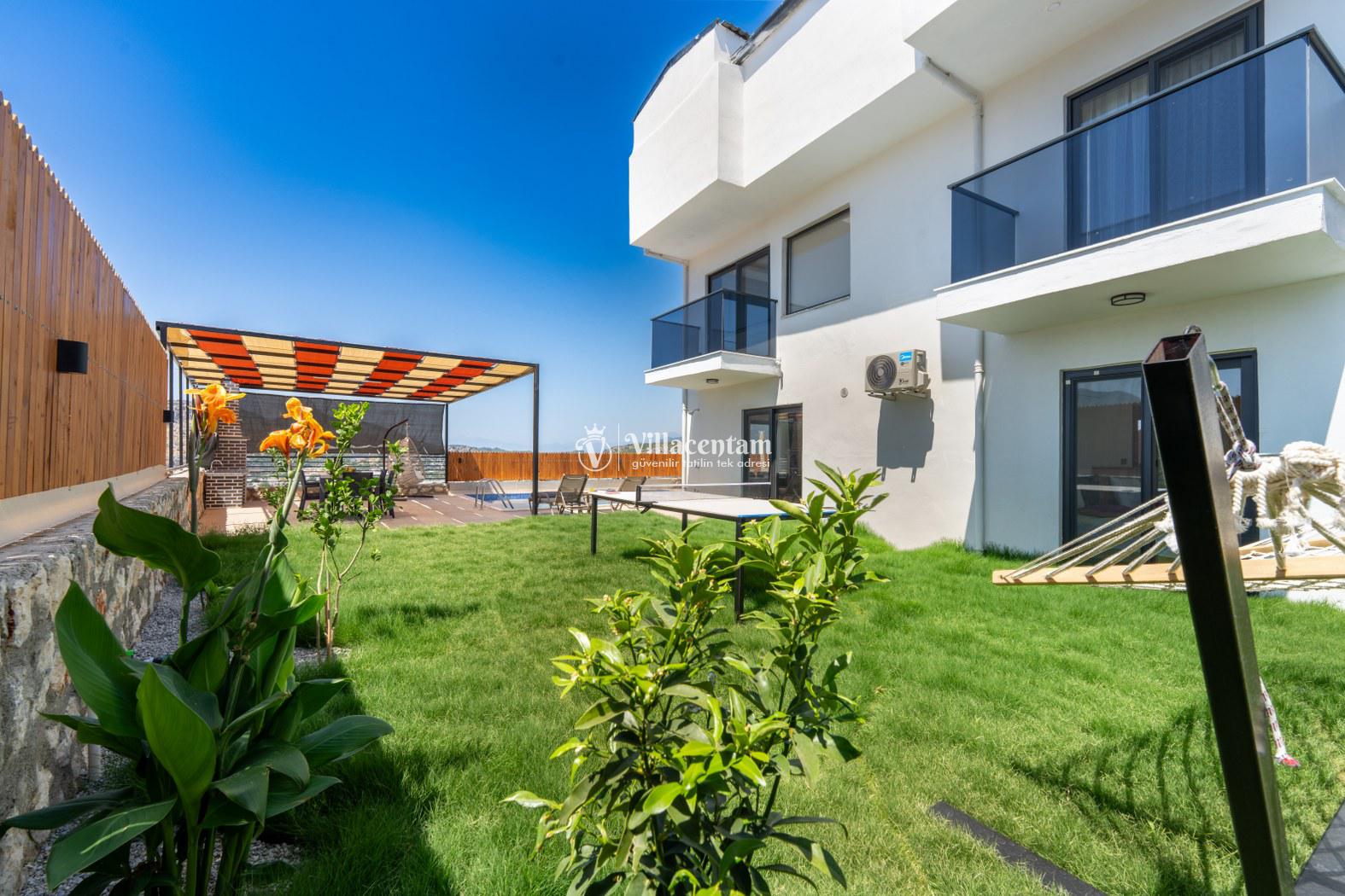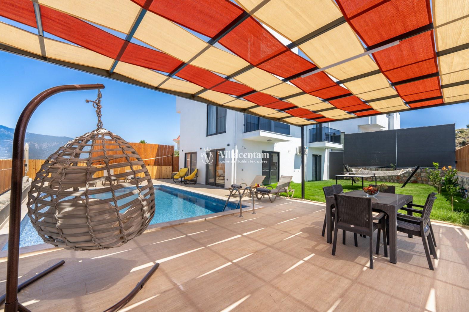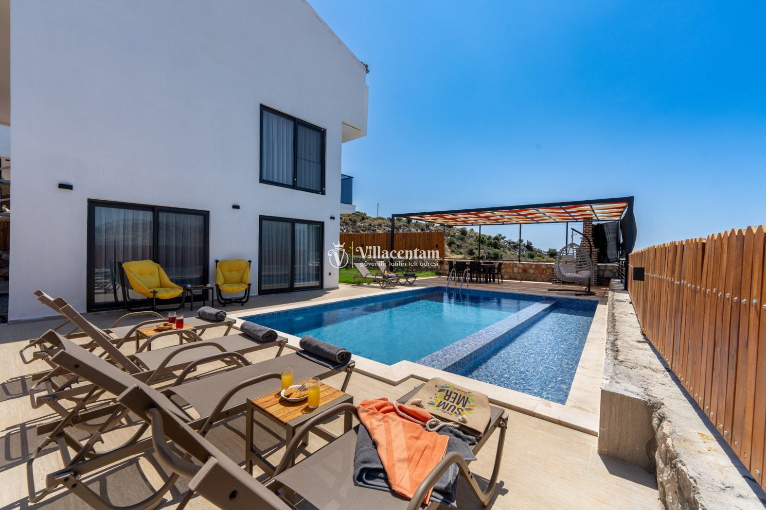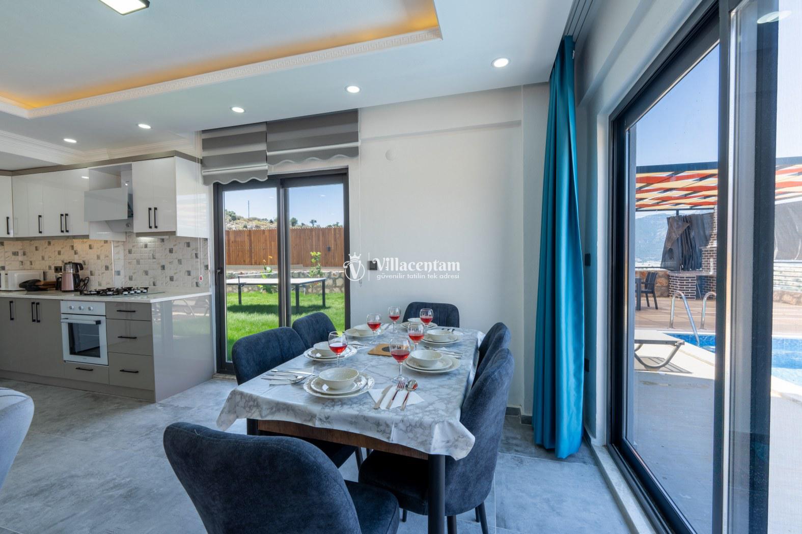 Doğanın kalbinde, şehir gürültüsünden tamamen uzak, huzur dolu bir tatil deneyimi yaşamak isteyen misafirler için özenle tasarlanan villamız; 3 yatak odası, 6 kişilik konaklama kapasitesi ve özel jakuzisiyle konforu lüksle birleştiriyor. Geniş yaşam alanları, modern mimarisi ve yemyeşil çevresiyle aileler ve arkadaş grupları için ideal bir tatil atmosferi sunar.Tam donanımlı mutfak, modern ankastre ekipmanlardan geniş tezgâh alanına kadar her detayıyla konforlu yemek hazırlama imkânı sağlar. Misafirler ister içerideki yemek alanında, ister terastaki açık hava masasında doğa eşliğinde yemeklerini keyifle yiyebilirler.Villada bulunan 3 adet yatak odasının her biri özenle dizayn edilmiştir. Ana yatak odasında özel jakuzi, ebeveyn banyosu ve geniş bir balkon yer alır. Diğer iki yatak odası ise 6 kişiye kadar olan konaklamalarda misafirlerin rahatını sağlamak için kaliteli yataklarla donatılmıştır. Her odada klima bulunmakta olup konfor dört mevsim boyunca sürdürülebilir hale getirilmiştir.Dış mekânda sizi karşılayan geniş özel yüzme havuzu, şezlonglar ve yemek alanıyla birlikte tüm gün doğanın tadını çıkarabileceğiniz bir ortam sunar. Havuz terası kendinizi tamamen özgür hissedeceğiniz şekilde konumlandırılmış olup mahremiyete önem veren misafirler için idealdir. Akşam saatlerinde havuz başında gün batımını izlemek, yıldızlar altında keyifli vakit geçirmek tatilinizin en unutulmaz anları arasında yer alacak.