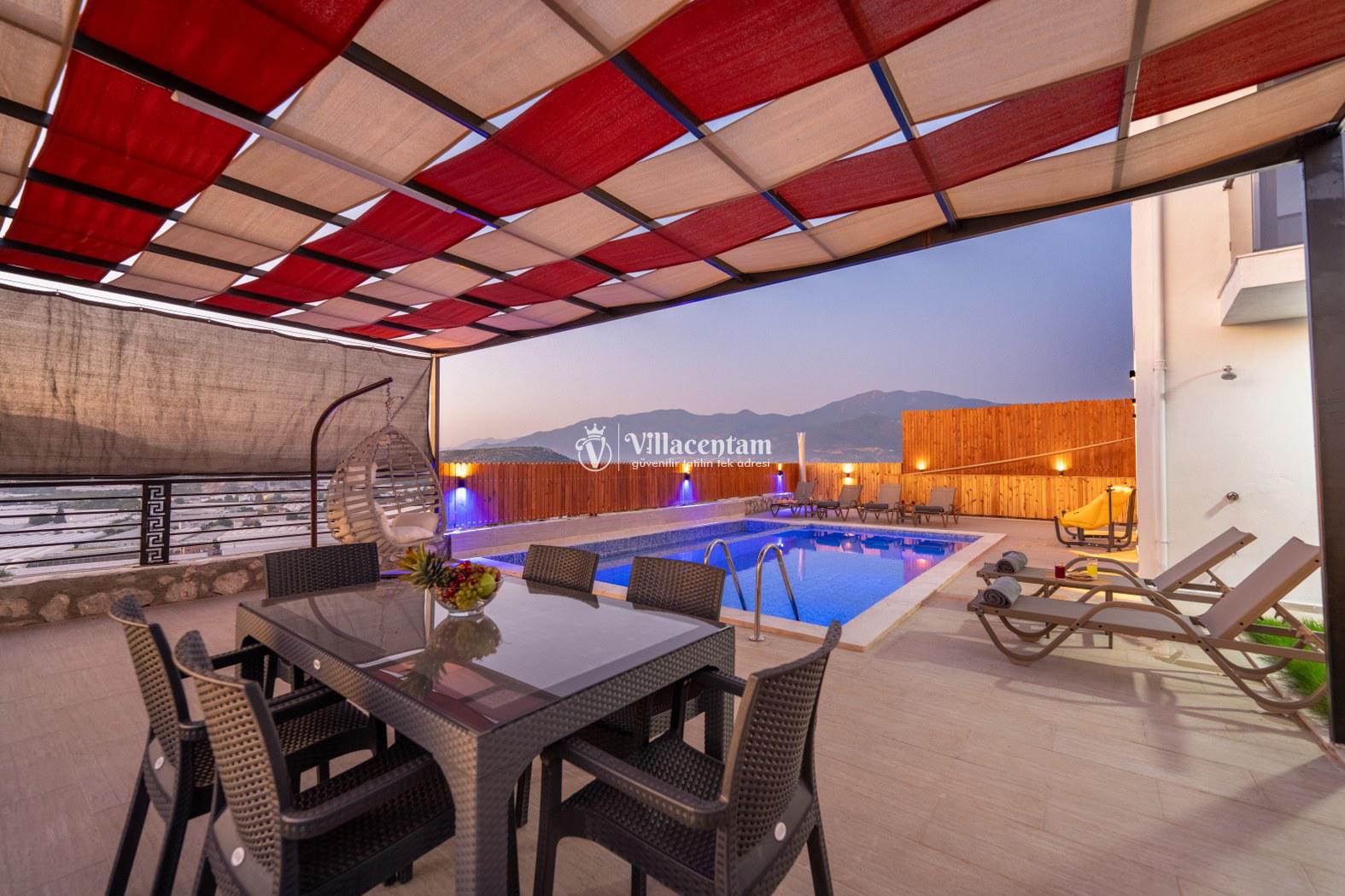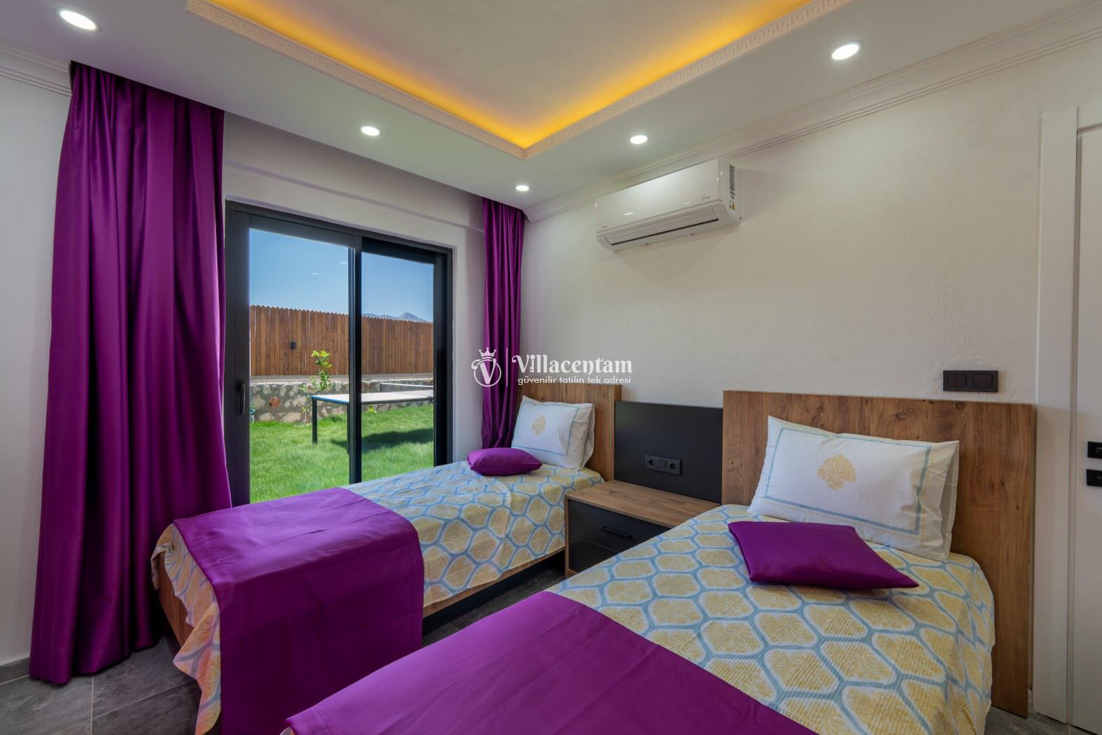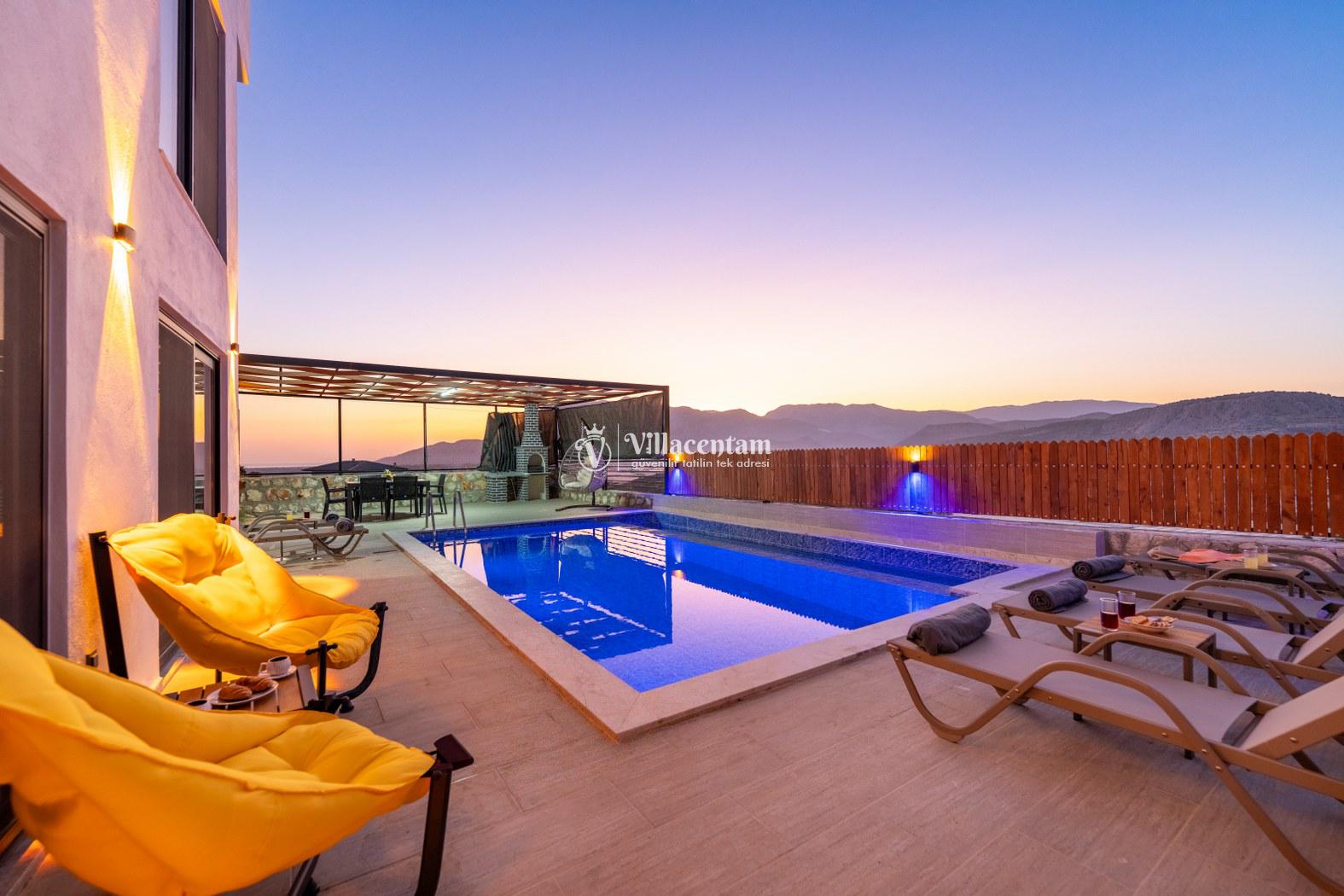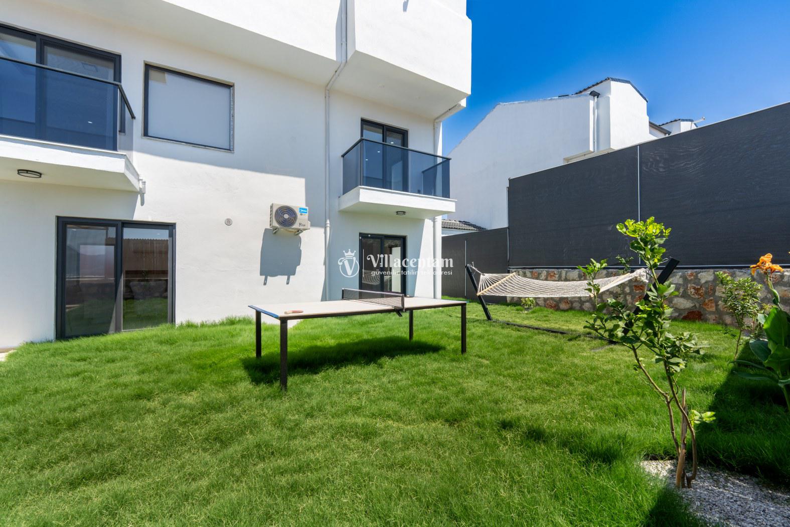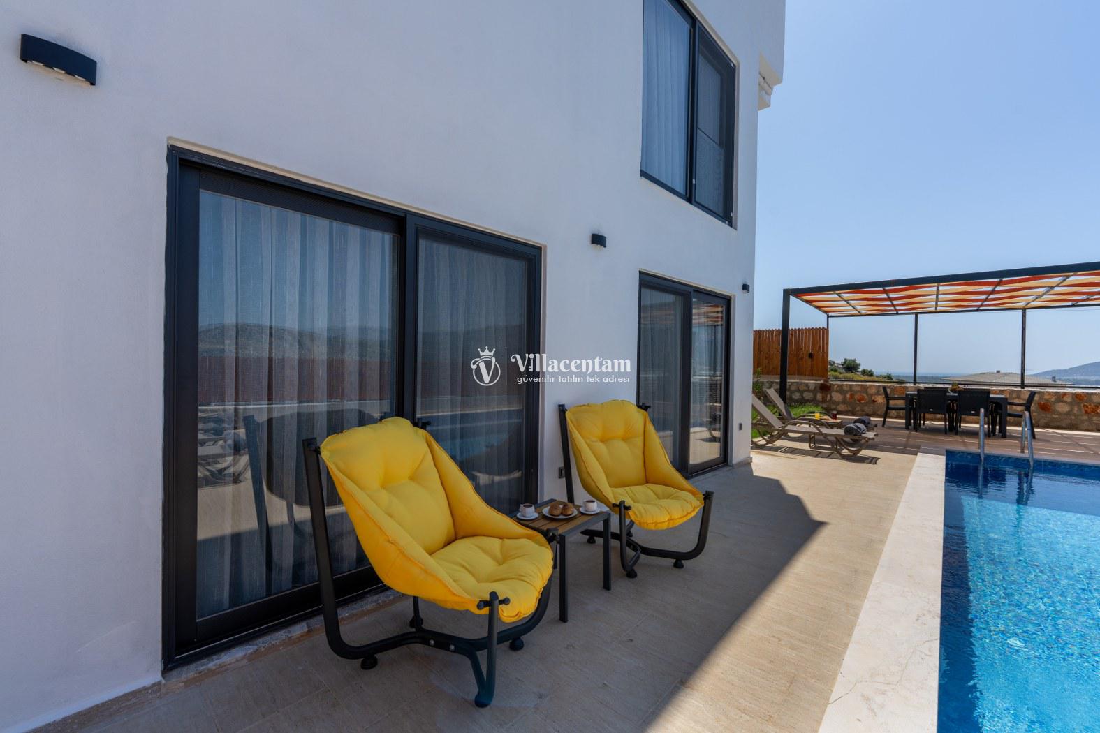 Doğanın kalbinde, şehir gürültüsünden tamamen uzak, huzur dolu bir tatil deneyimi yaşamak isteyen misafirler için özenle tasarlanan villamız; 3 yatak odası, 6 kişilik konaklama kapasitesi ve özel jakuzisiyle konforu lüksle birleştiriyor. Geniş yaşam alanları, modern mimarisi ve yemyeşil çevresiyle aileler ve arkadaş grupları için ideal bir tatil atmosferi sunar.Tam donanımlı mutfak, modern ankastre ekipmanlardan geniş tezgâh alanına kadar her detayıyla konforlu yemek hazırlama imkânı sağlar. Misafirler ister içerideki yemek alanında, ister terastaki açık hava masasında doğa eşliğinde yemeklerini keyifle yiyebilirler.Villada bulunan 3 adet yatak odasının her biri özenle dizayn edilmiştir. Ana yatak odasında özel jakuzi, ebeveyn banyosu ve geniş bir balkon yer alır. Diğer iki yatak odası ise 6 kişiye kadar olan konaklamalarda misafirlerin rahatını sağlamak için kaliteli yataklarla donatılmıştır. Her odada klima bulunmakta olup konfor dört mevsim boyunca sürdürülebilir hale getirilmiştir.Dış mekânda sizi karşılayan geniş özel yüzme havuzu, şezlonglar ve yemek alanıyla birlikte tüm gün doğanın tadını çıkarabileceğiniz bir ortam sunar. Havuz terası kendinizi tamamen özgür hissedeceğiniz şekilde konumlandırılmış olup mahremiyete önem veren misafirler için idealdir. Akşam saatlerinde havuz başında gün batımını izlemek, yıldızlar altında keyifli vakit geçirmek tatilinizin en unutulmaz anları arasında yer alacak.