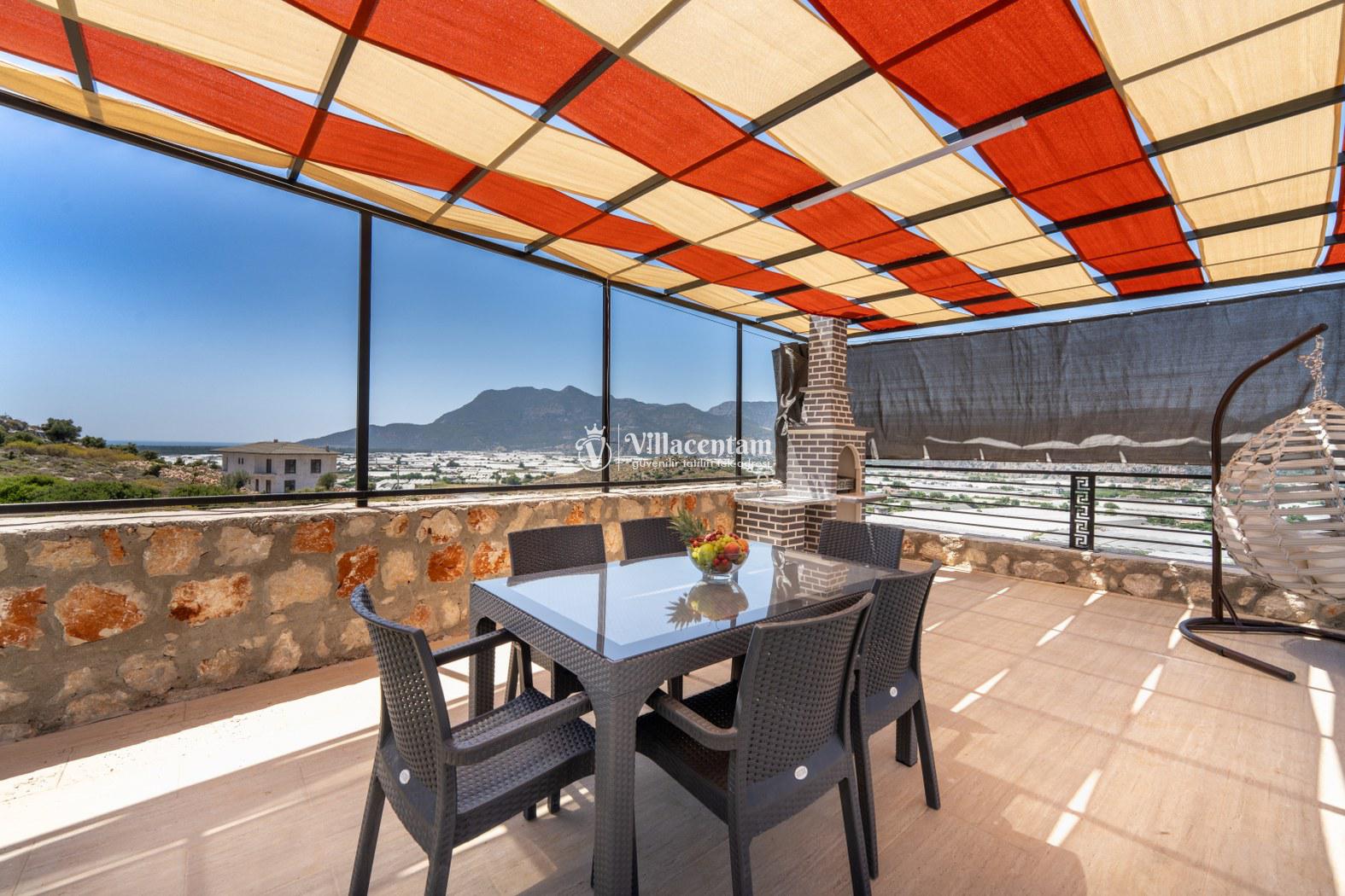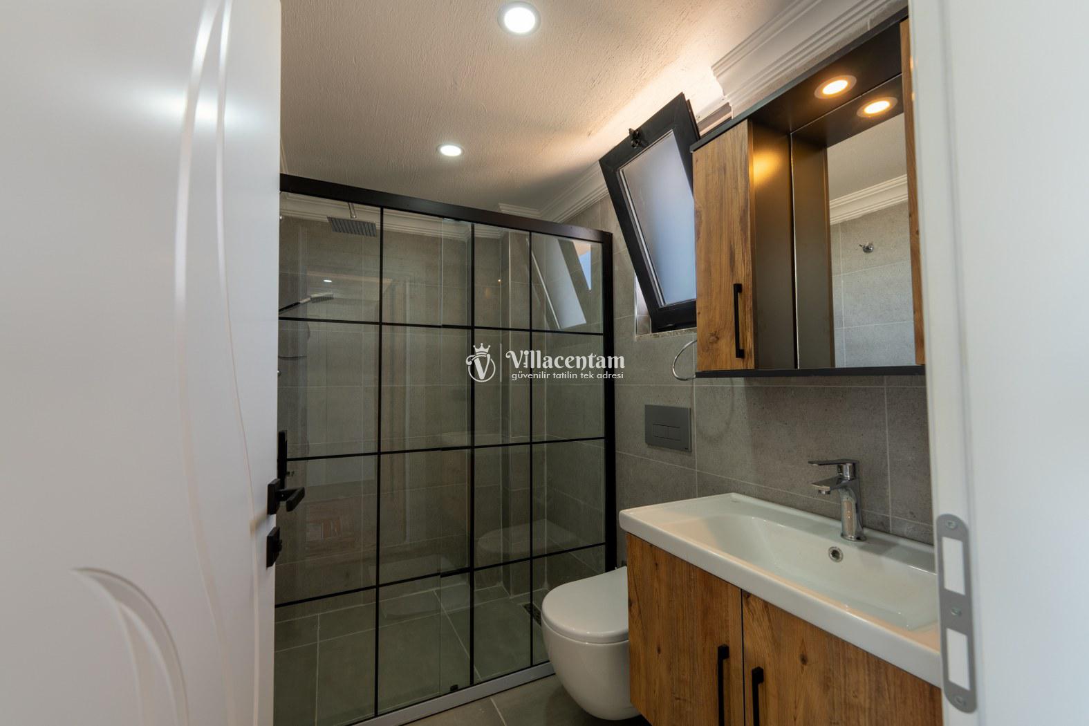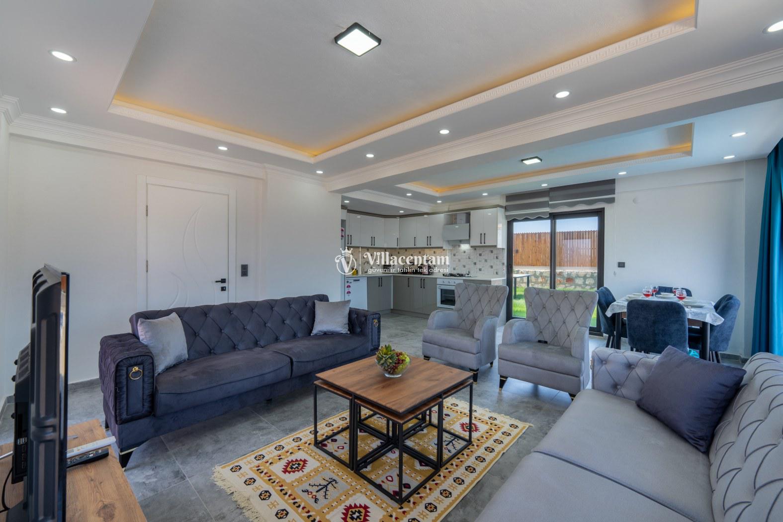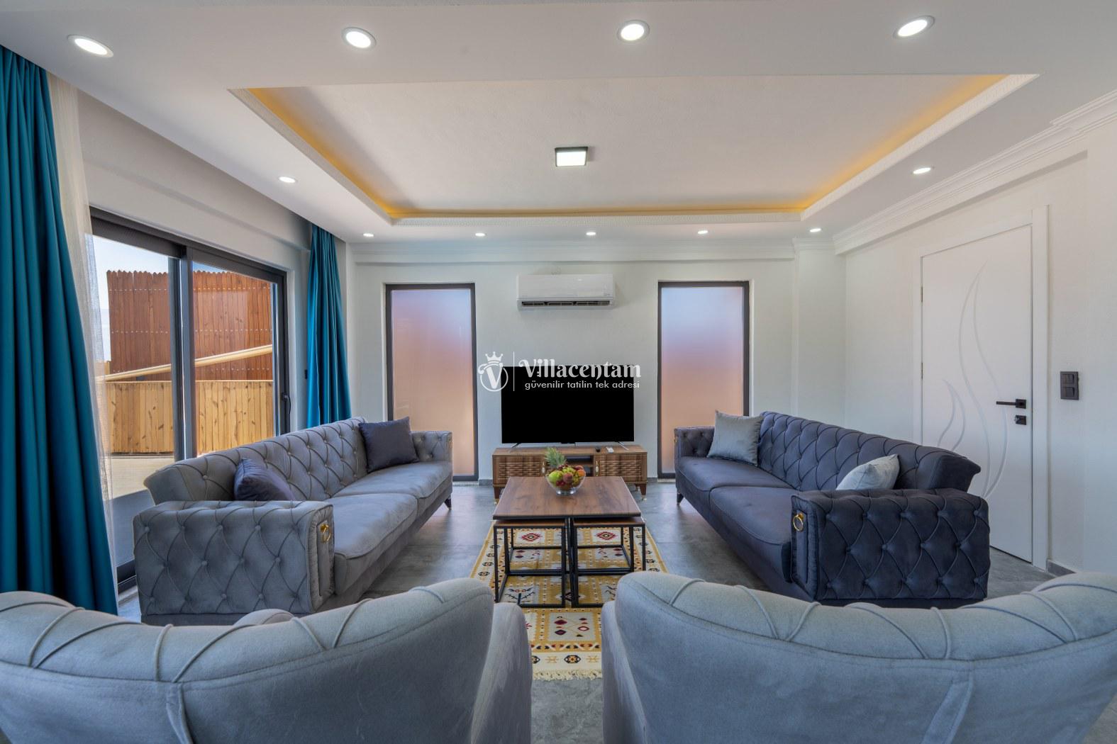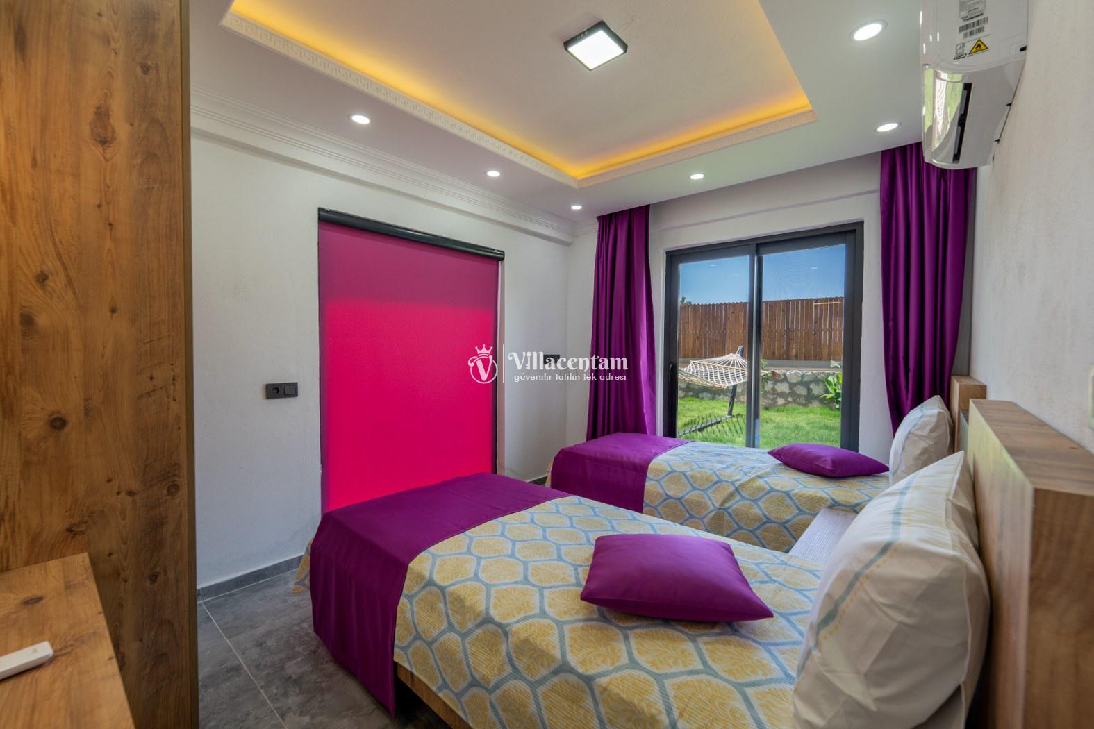 Doğanın kalbinde, şehir gürültüsünden tamamen uzak, huzur dolu bir tatil deneyimi yaşamak isteyen misafirler için özenle tasarlanan villamız; 3 yatak odası, 6 kişilik konaklama kapasitesi ve özel jakuzisiyle konforu lüksle birleştiriyor. Geniş yaşam alanları, modern mimarisi ve yemyeşil çevresiyle aileler ve arkadaş grupları için ideal bir tatil atmosferi sunar.Tam donanımlı mutfak, modern ankastre ekipmanlardan geniş tezgâh alanına kadar her detayıyla konforlu yemek hazırlama imkânı sağlar. Misafirler ister içerideki yemek alanında, ister terastaki açık hava masasında doğa eşliğinde yemeklerini keyifle yiyebilirler.Villada bulunan 3 adet yatak odasının her biri özenle dizayn edilmiştir. Ana yatak odasında özel jakuzi, ebeveyn banyosu ve geniş bir balkon yer alır. Diğer iki yatak odası ise 6 kişiye kadar olan konaklamalarda misafirlerin rahatını sağlamak için kaliteli yataklarla donatılmıştır. Her odada klima bulunmakta olup konfor dört mevsim boyunca sürdürülebilir hale getirilmiştir.Dış mekânda sizi karşılayan geniş özel yüzme havuzu, şezlonglar ve yemek alanıyla birlikte tüm gün doğanın tadını çıkarabileceğiniz bir ortam sunar. Havuz terası kendinizi tamamen özgür hissedeceğiniz şekilde konumlandırılmış olup mahremiyete önem veren misafirler için idealdir. Akşam saatlerinde havuz başında gün batımını izlemek, yıldızlar altında keyifli vakit geçirmek tatilinizin en unutulmaz anları arasında yer alacak.