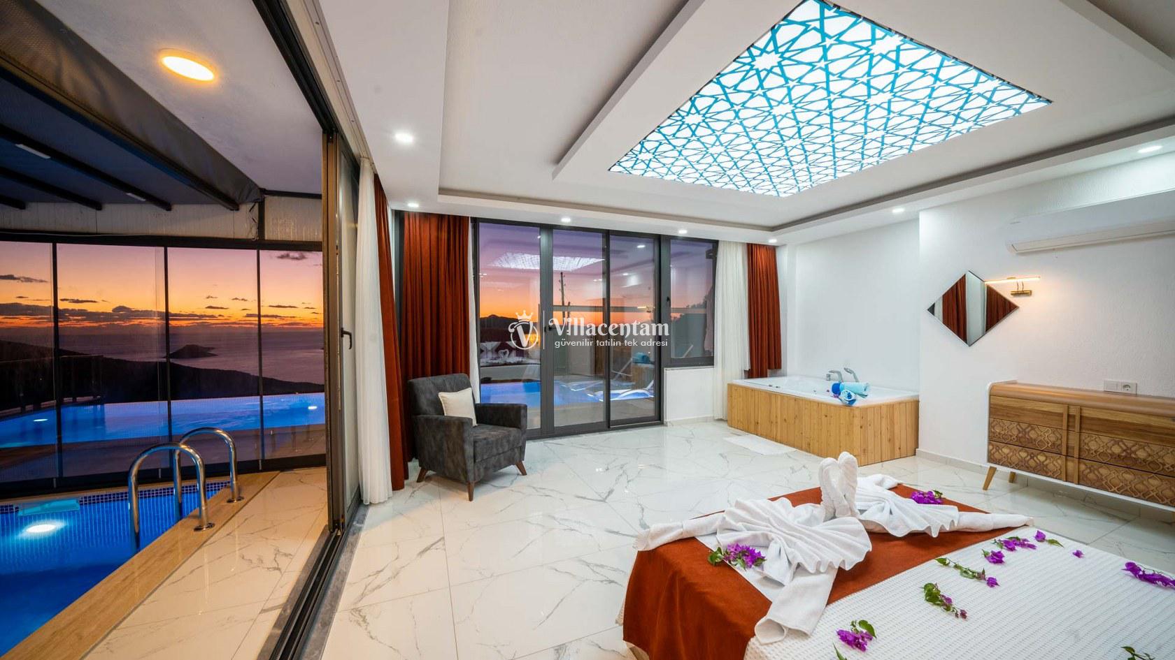 Villa Spring 1, Kalkan Kördere mevkiinde konumlanmakta olan masmavi muhteşem deniz ve yeşilliklerle kaplı doğa manzarasına hakim kiralık villarımız arasında yer almaktadır. Şık ve konforlu bir şekilde dekore edilen yazlık villamızda 2 adet yatak odası bulunmakta olup, 4 kişiye konaklama imkanı sağlamaktadır. Yatak odalarından bir tanesinin içerisinde tüm yorgunluğunuzu giderebileceğiniz jakuzi yer almaktadır. Aynı zamanda kış aylarında tatil planı yapan misafirlerimiz için villamızda kapalı ısıtma havuzu bulunmaktadır. Havuz ve havuz terası korunaklı olan yazlık villamızı muhafazakar aileler ve balayı çiftleri rahatlıkla tercih edebilirler. Dış özel yüzme havuzuna entegre sığ havuz mevcuttur. Havuz terasında tatilinizi eğlenceli hale getirebilmek adına langırt ve villanın bahçesinde çocuklu aileler için küçük bir oyun parkı yer almaktadır. Sessizlik ve sakinlik içerisinde unutamayacağınız bir yazlık villada tatil için Villa Spring 1' i tercih edebilirsiniz.