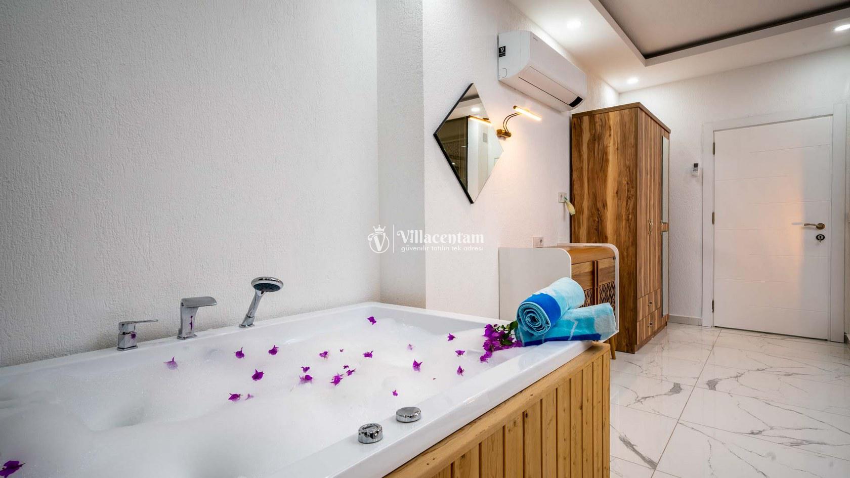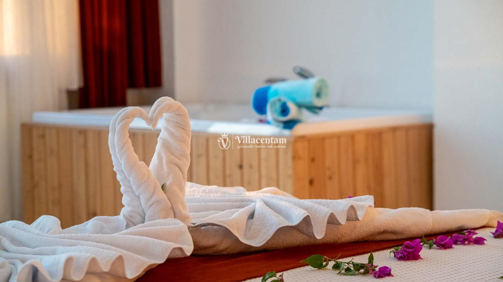 NOT 2: Villamızın kapalı havuzunda yer alan ısıtma sistemi günlük 1.500 TL karşılığında aktif edilmektedir. Misafirlerin gelmeden 3 gün önceden ısıtma taleplerini bildirmeleri gerekmektedir. Havuz sıcaklığı 27-30 dereceye ulaşmaktadır.