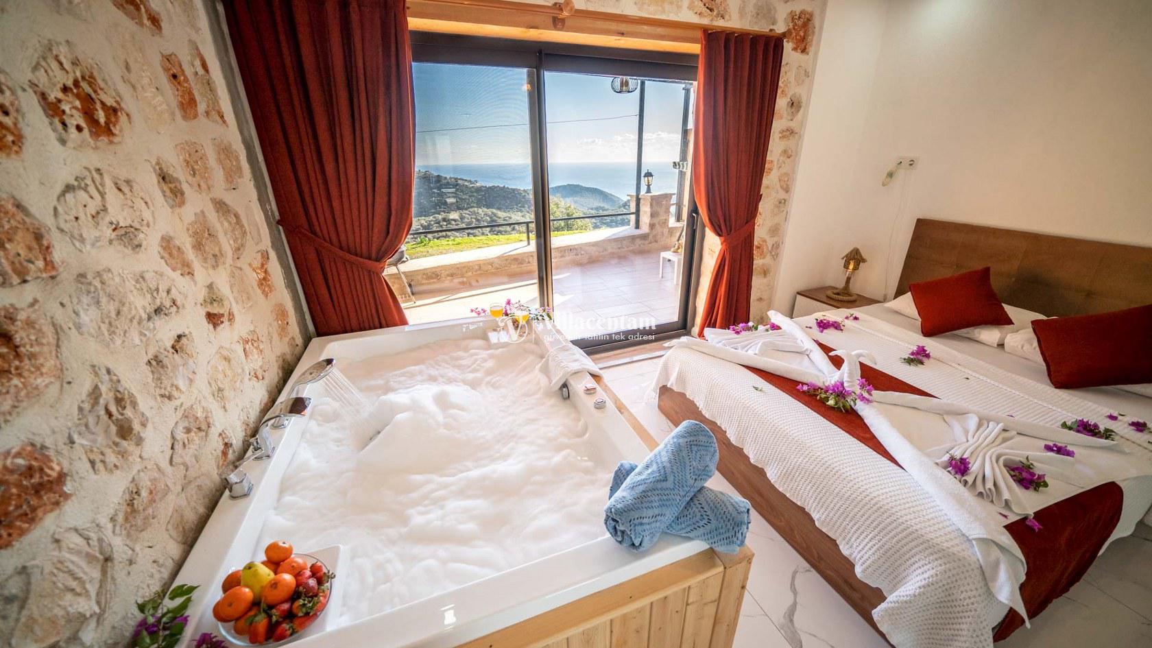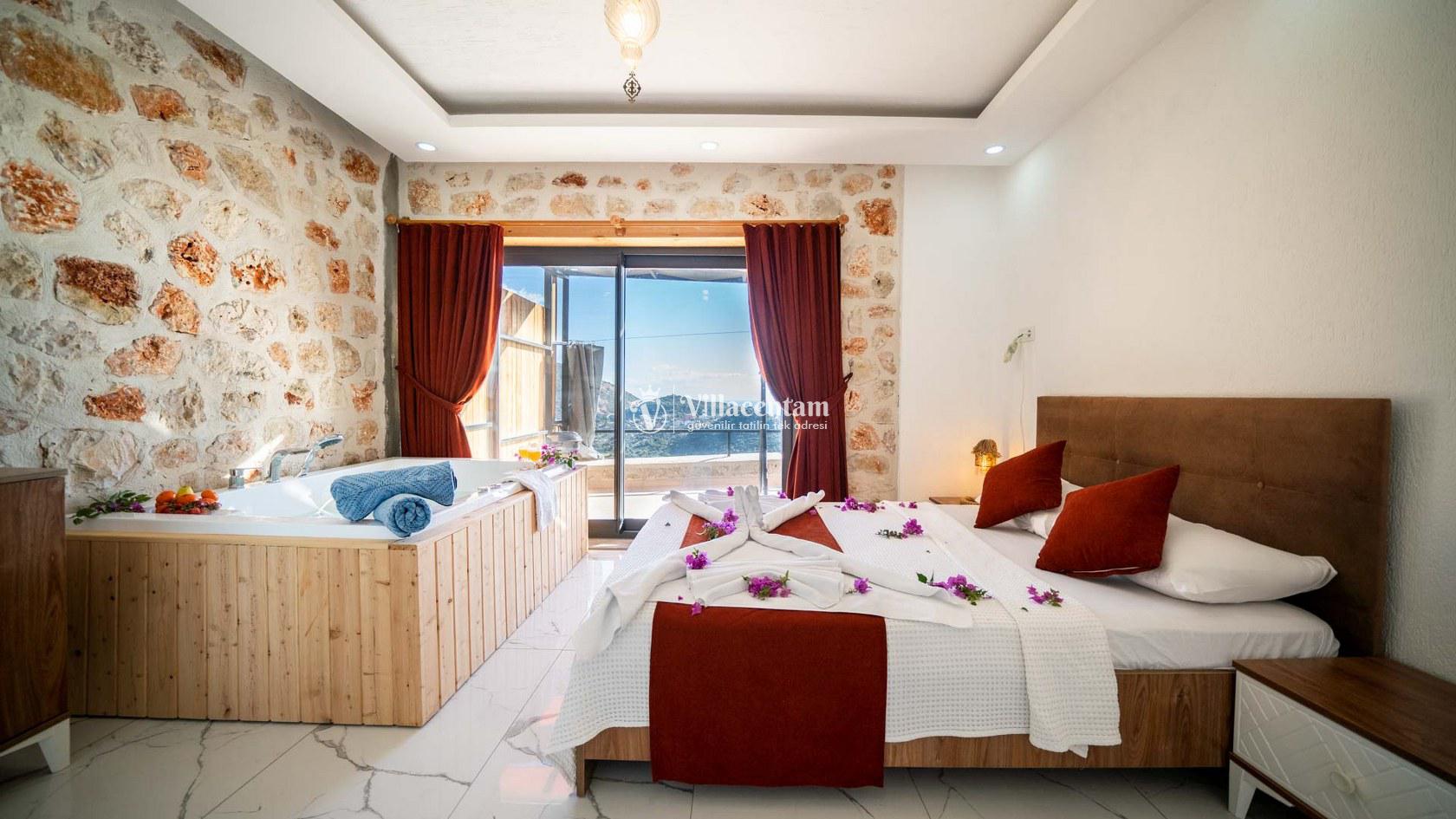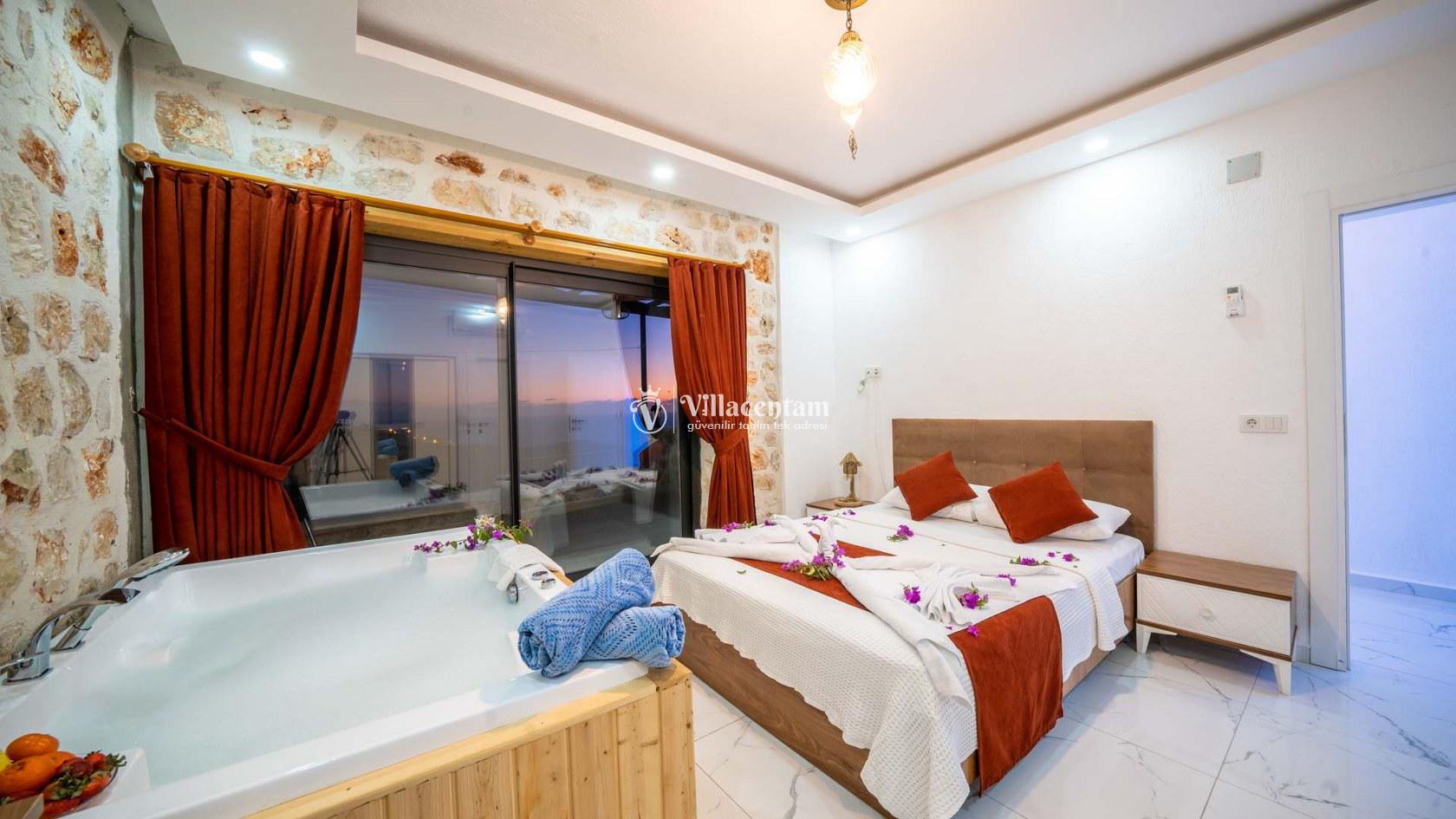 Villa Spring 2, Kalkan Kördere mevkiinde konumlanmakta olan masmavi muhteşem deniz ve yeşilliklerle kaplı doğa manzarasına hakim kiralık villarımız arasında yer almaktadır. Şık ve konforlu bir şekilde dekore edilen yazlık villamızda 2 adet yatak odası bulunmakta olup, 4 kişiye konaklama imkanı sağlamaktadır. Yatak odalarından bir tanesinin içerisinde tüm yorgunluğunuzu giderebileceğiniz jakuzi yer almaktadır. Havuz ve havuz terası korunaklı olan yazlık villamızı muhafazakar aileler ve balayı çiftleri rahatlıkla tercih edebilirler. Yazlık villamızdatatilinizi eğlenceli kılabilmek adına langırt yer almaktadır. Sessizlik ve sakinlik içerisinde unutamayacağınız bir yazlık villada tatil için Villa Spring 2' yi tercih edebilirsiniz.