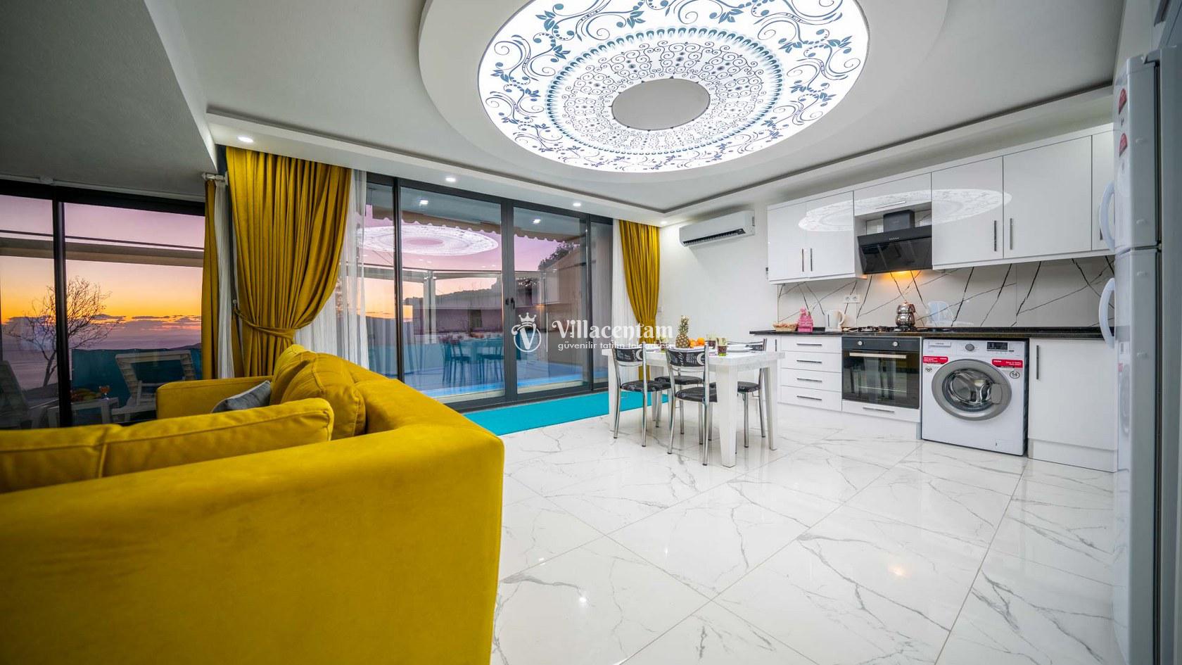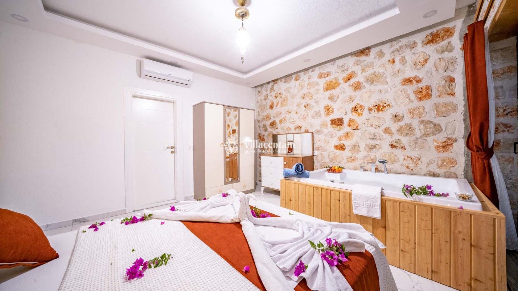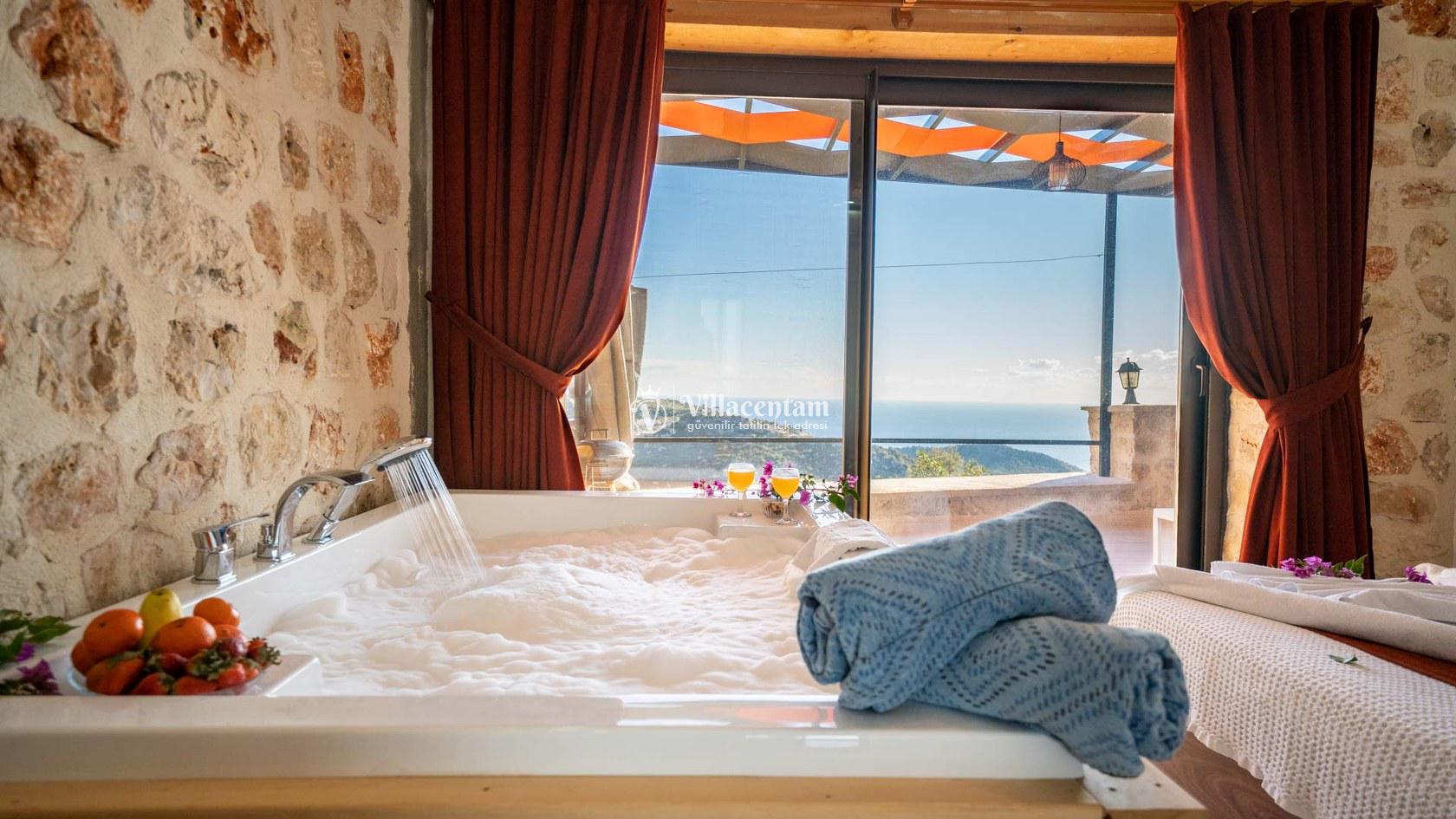 Villa Spring 2, Kalkan Kördere mevkiinde konumlanmakta olan masmavi muhteşem deniz ve yeşilliklerle kaplı doğa manzarasına hakim kiralık villarımız arasında yer almaktadır. Şık ve konforlu bir şekilde dekore edilen yazlık villamızda 2 adet yatak odası bulunmakta olup, 4 kişiye konaklama imkanı sağlamaktadır. Yatak odalarından bir tanesinin içerisinde tüm yorgunluğunuzu giderebileceğiniz jakuzi yer almaktadır. Havuz ve havuz terası korunaklı olan yazlık villamızı muhafazakar aileler ve balayı çiftleri rahatlıkla tercih edebilirler. Yazlık villamızdatatilinizi eğlenceli kılabilmek adına langırt yer almaktadır. Sessizlik ve sakinlik içerisinde unutamayacağınız bir yazlık villada tatil için Villa Spring 2' yi tercih edebilirsiniz.
