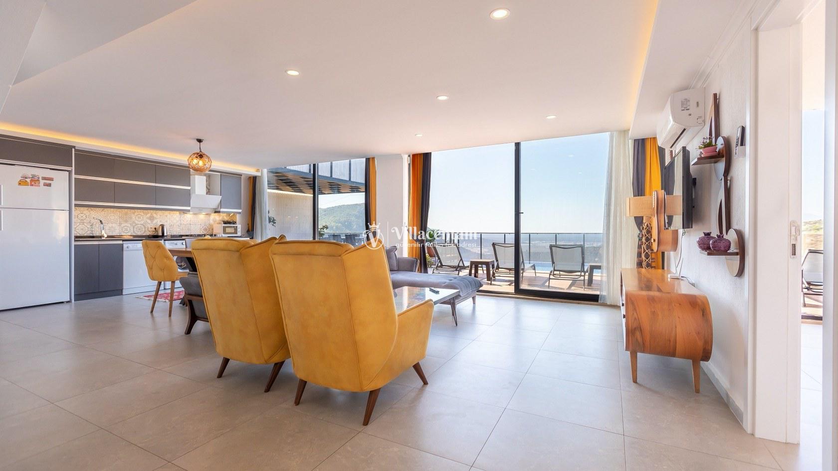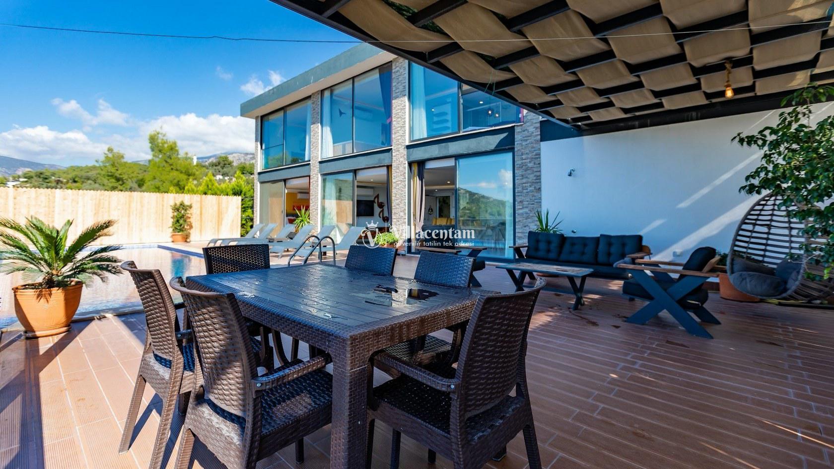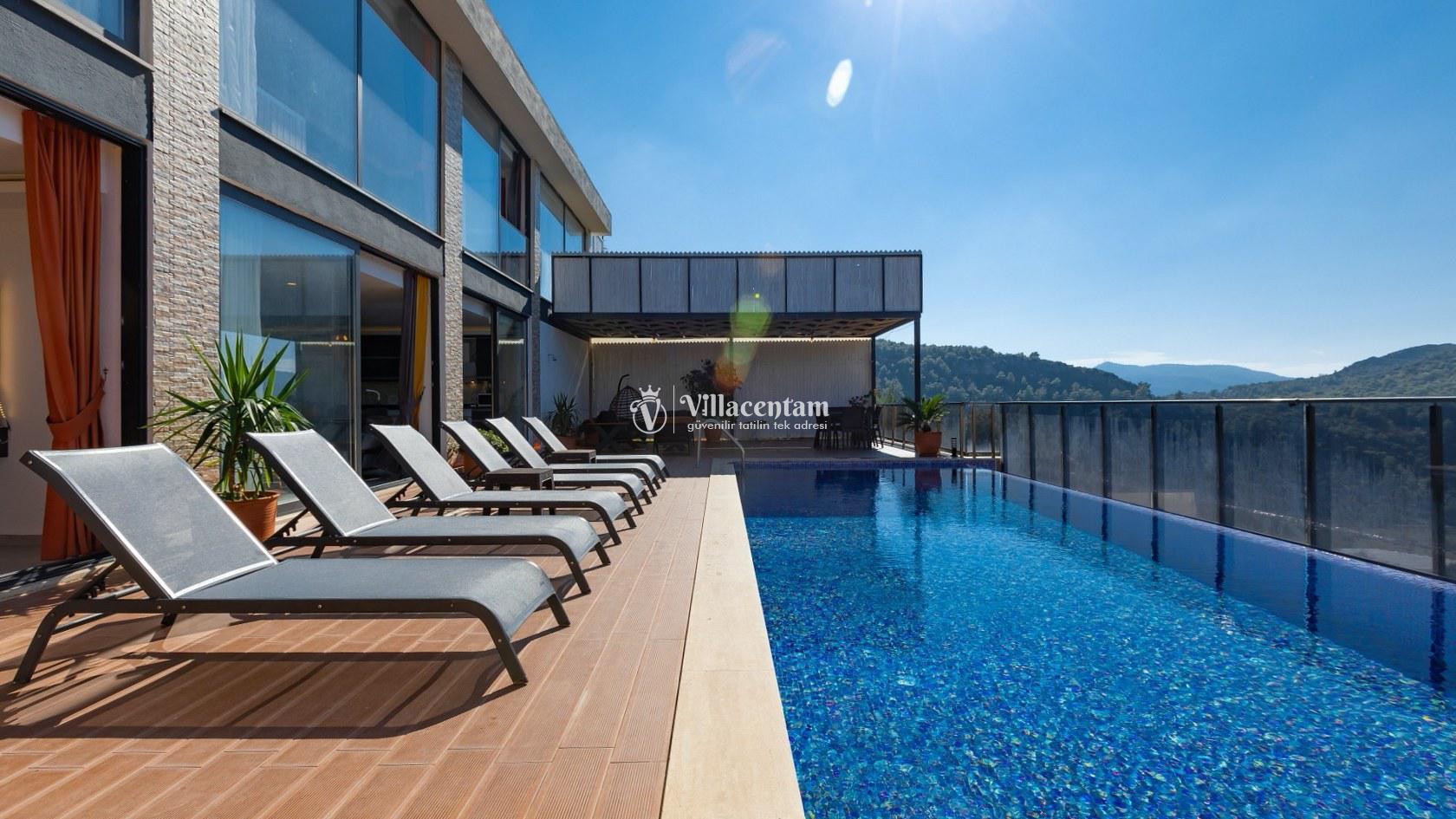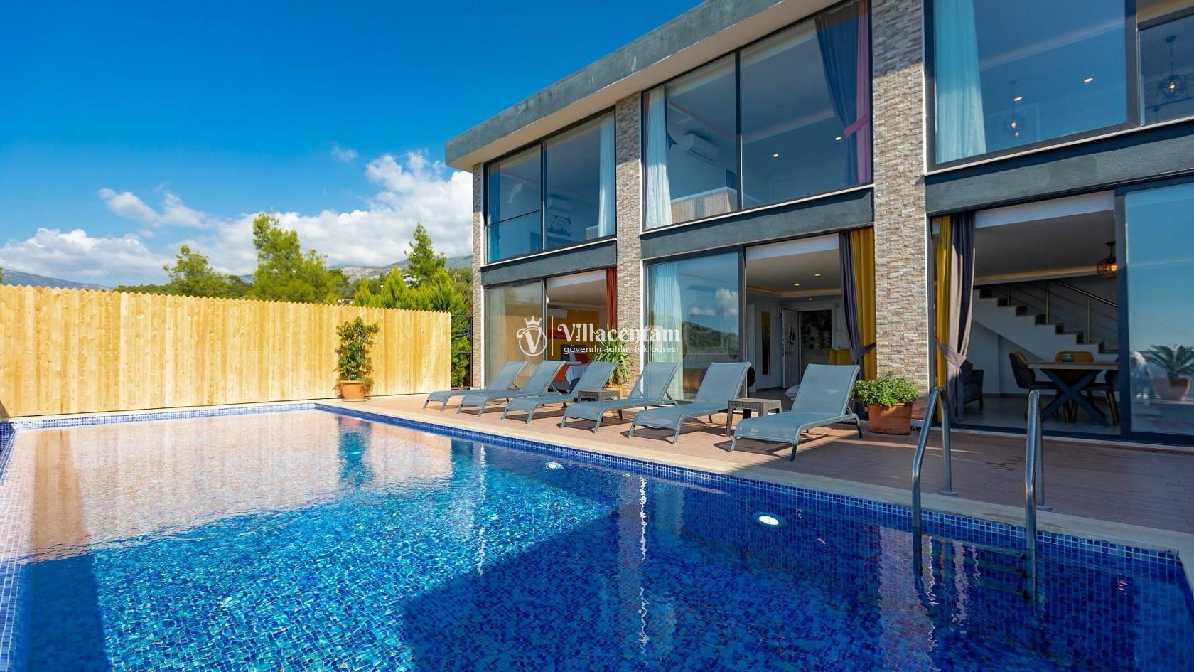 Kalkan’ın doğayla iç içe Üzümlü bölgesinde yer alan Villa Suare, 3 yatak odası ve 3 banyosu ile 6 kişiye kadar konaklama imkanı sunan modern ve konforlu bir tatil villasıdır. Villanın şık ve çağdaş dizaynı, ferah yaşam alanları ve doğa manzaralı korunaklı havuzu ile huzurlu bir tatil deneyimi sağlar.