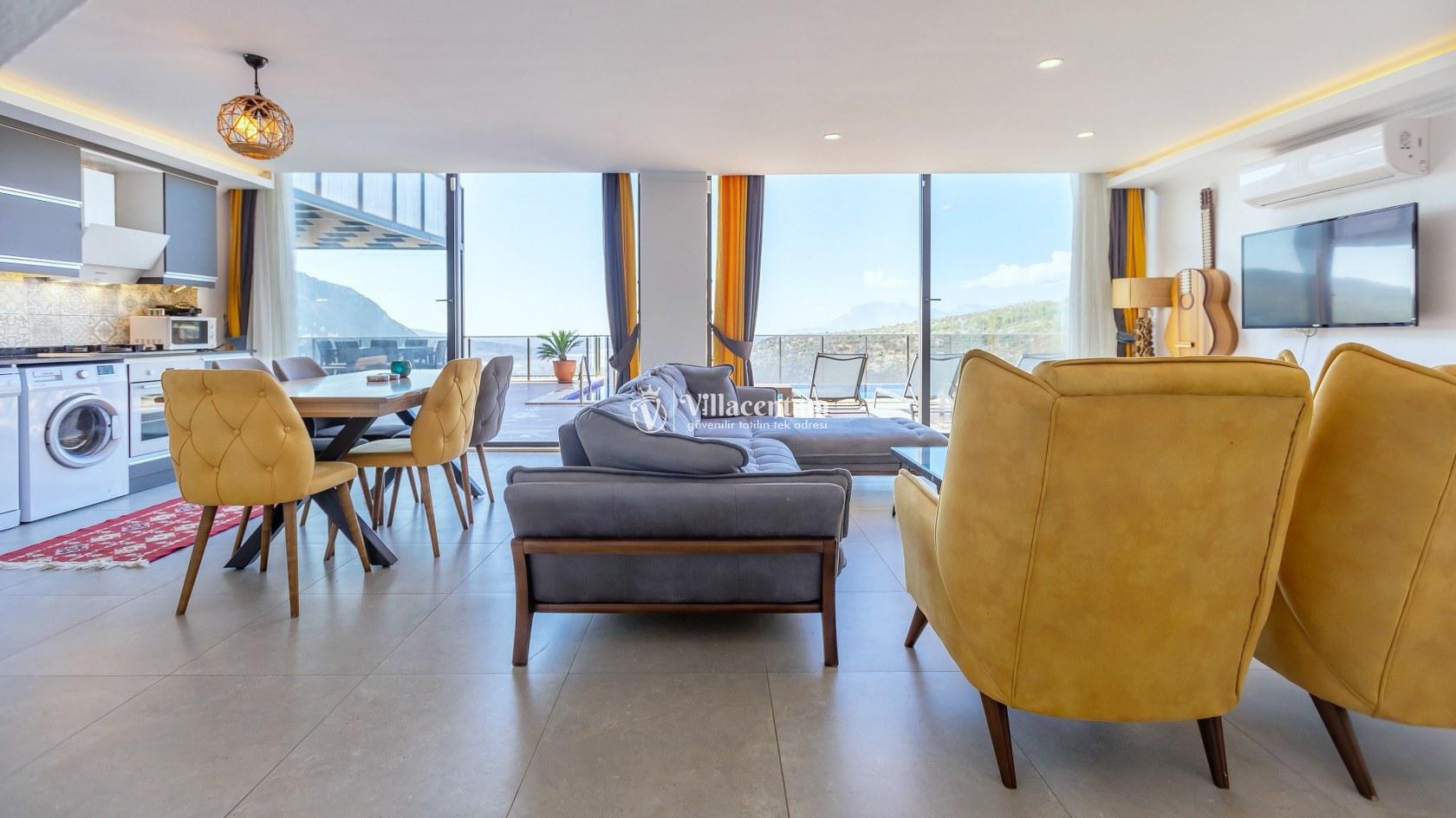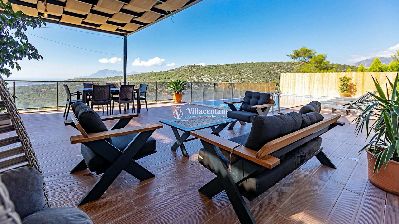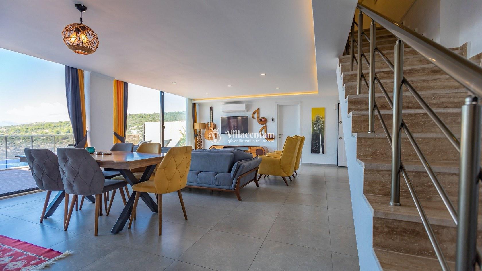 Villa Suare, doğanın dinginliği içinde konumlanmış olup, Kalkan merkezine ve çevredeki plajlara araçla kolay erişim sağlayan bir konumdadır. Hem kalabalık aileler hem de arkadaş grupları için ideal bir seçenek olarak misafirlerini bekler.