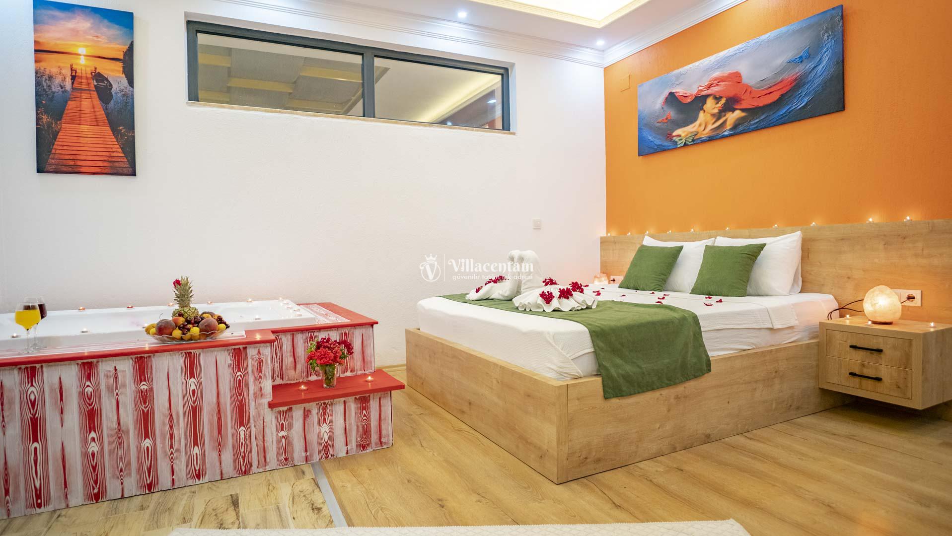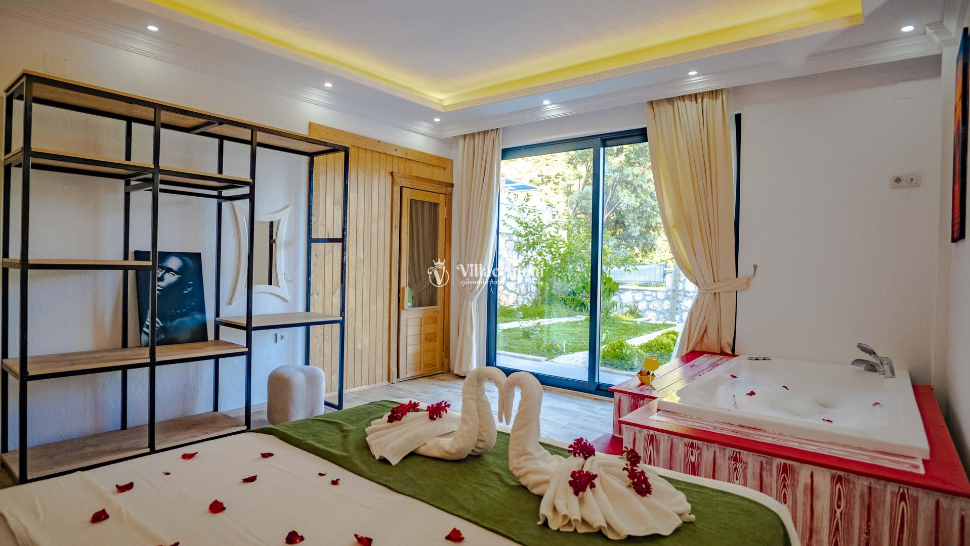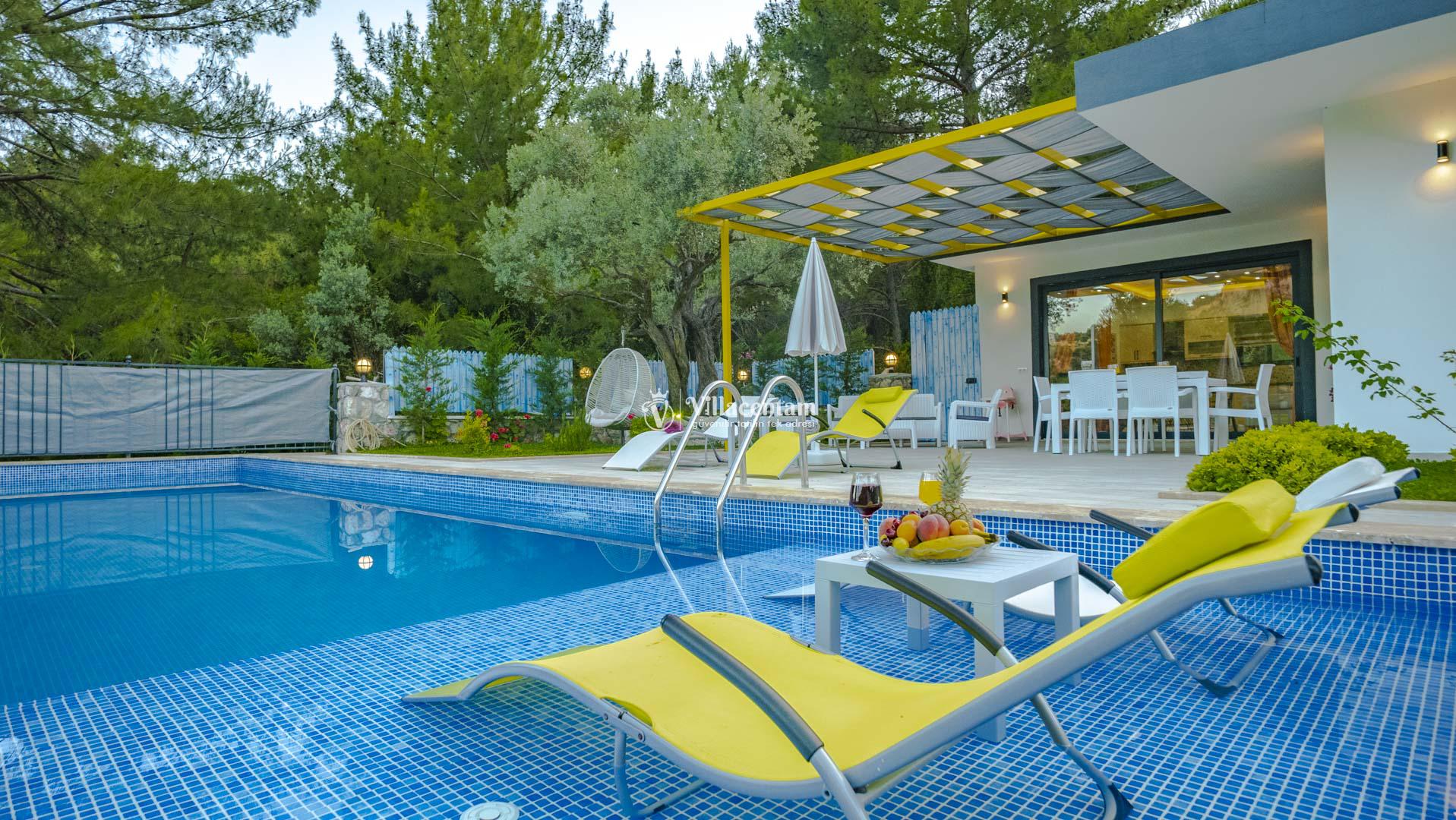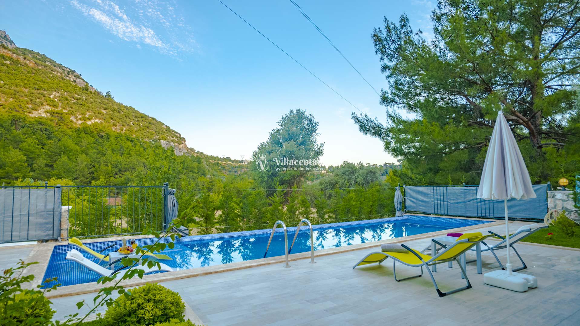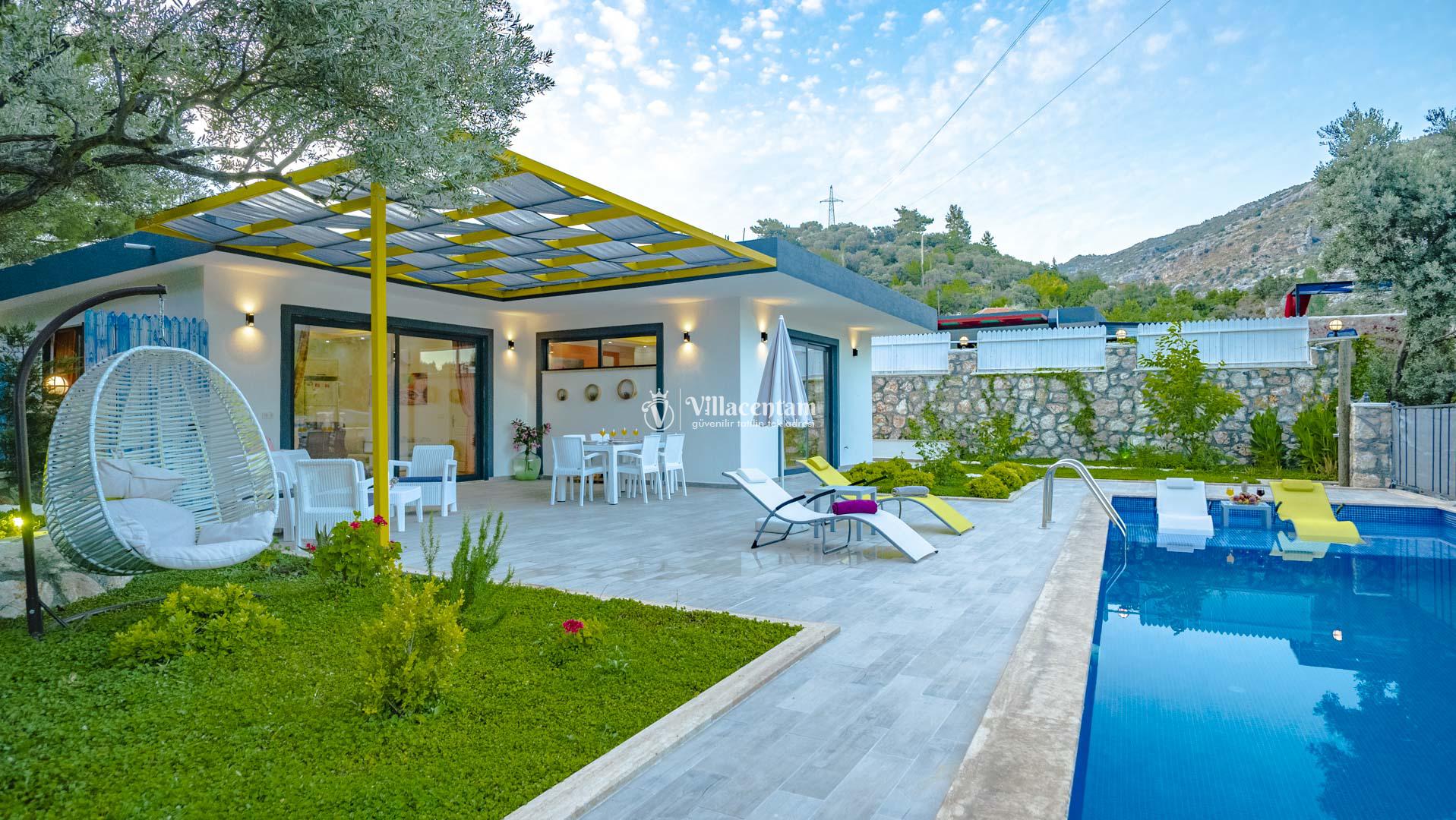 Villa Sukula, Kalkan İslamlar mevkiinde konumlanmakta olan muhteşem doğa manzarasına hakim kiralık villalarımız arasında yer almaktadır. Şık ve konforlu bir şekilde dizayn edilen yazlık villamızda 2 adet yatak odası bulunmakta olup, 5 kişiye konaklama imkanı sağlamaktadır. Villamızın havuz terasının korunaklı olması sayesinde size özel bir ortamda rahat bir tatil keyfi yaşayabilirsiniz. Villamızın 1 yatak odasında tüm yılın vermiş olduğu yorgunluğu atabileceğiniz jakuzi konforu sağlanmaktadır. Ayrıca villamızda ücretsiz olarak kullanabileceğiniz sauna da mevcuttur.