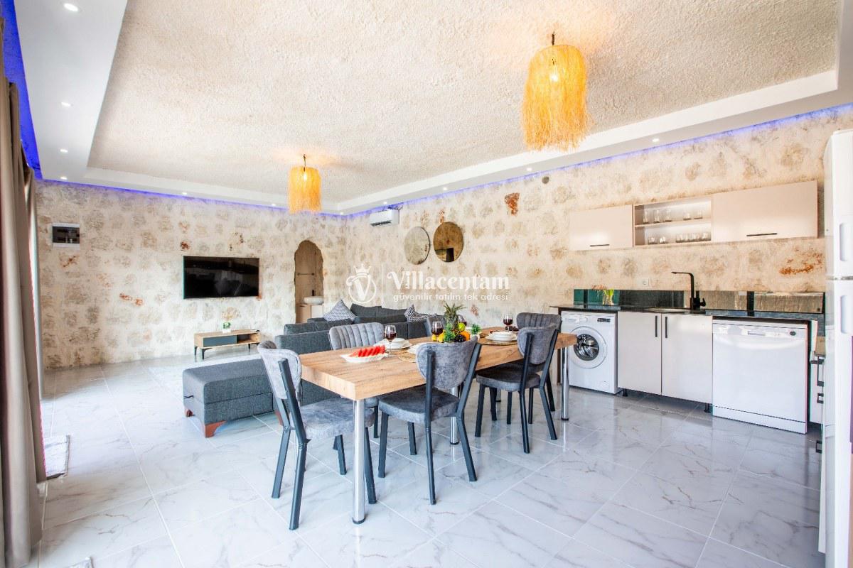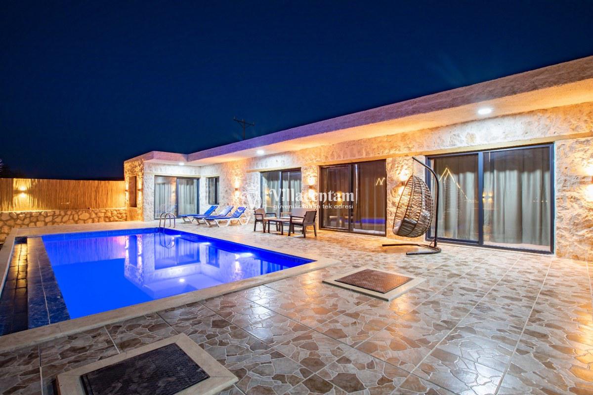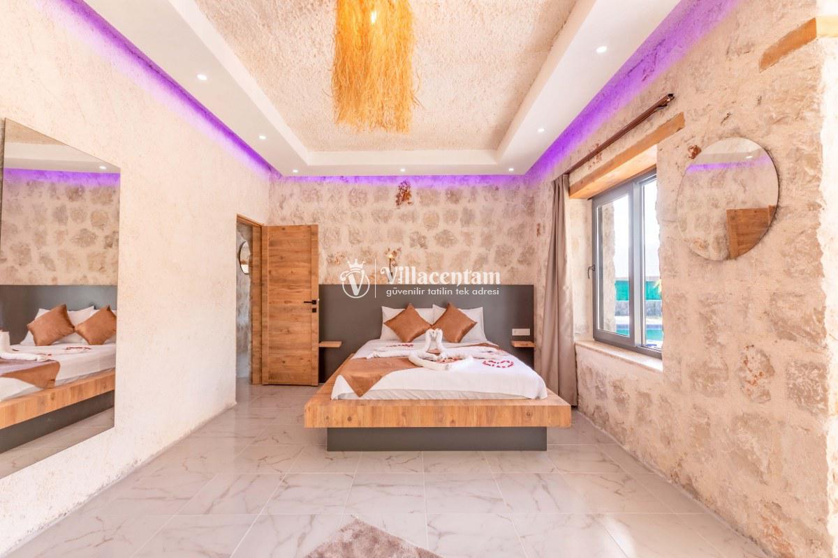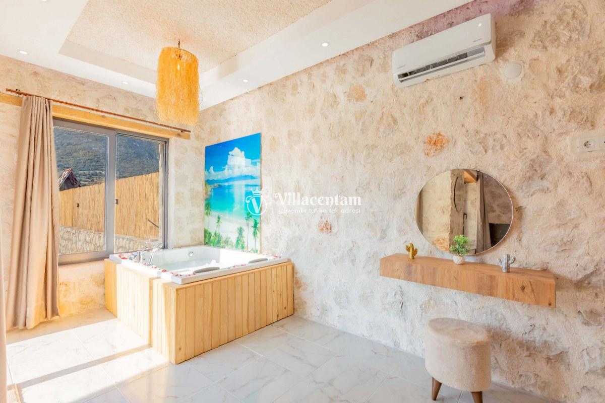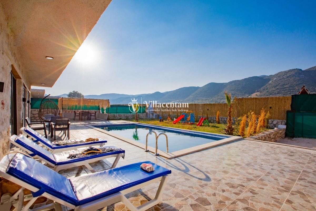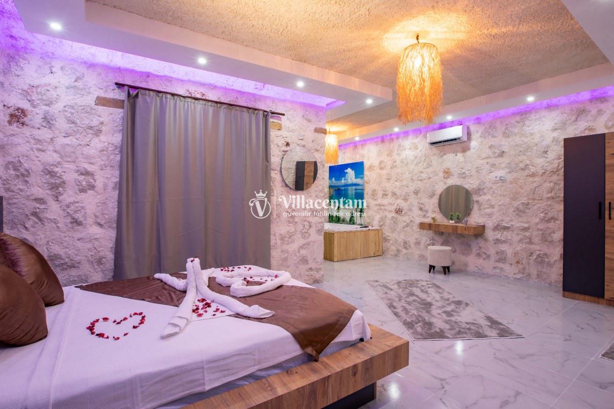 Villa Sunflower Tre, Kalkan Sarıbelen köyünde konumlanmakta olan yeşilliklerle kaplı doğa manzarasına hakim, taş yapı mimarisi ile otantik bir görünüme sahip kiralık villalarımız arasında yer almaktadır. Modern ve konforlu bir şekilde dekore edilen yazlık villamızda 2 adet yatak odası bulunmakta olup, 4 kişiye konaklama imkanı sağlamaktadır. Yatak odalarından bir tanesinin içerisinde tüm yılın vermiş olduğu yorgunluğu giderebileceğiniz jakuzi yer almaktadır. Her bir detayın en ince ayrıntısına kadar düşünüldüğü villamızda çocuklar için uygun mini oyun alanı mevcuttur. Havuz ve havuz terası korunaklı hale getirilen kiralık villamızı muhafazakar aileler, balayı çiftleri ve çekirdek aileler rahatlıkla tercih edebilirler. Sessizlik ve sakinlik içerisinde huzur dolu bir yazlık villada balayı tatili için Villa Sunflower Tre’ yi tercih edebilirsiniz.
