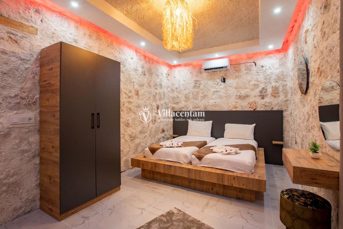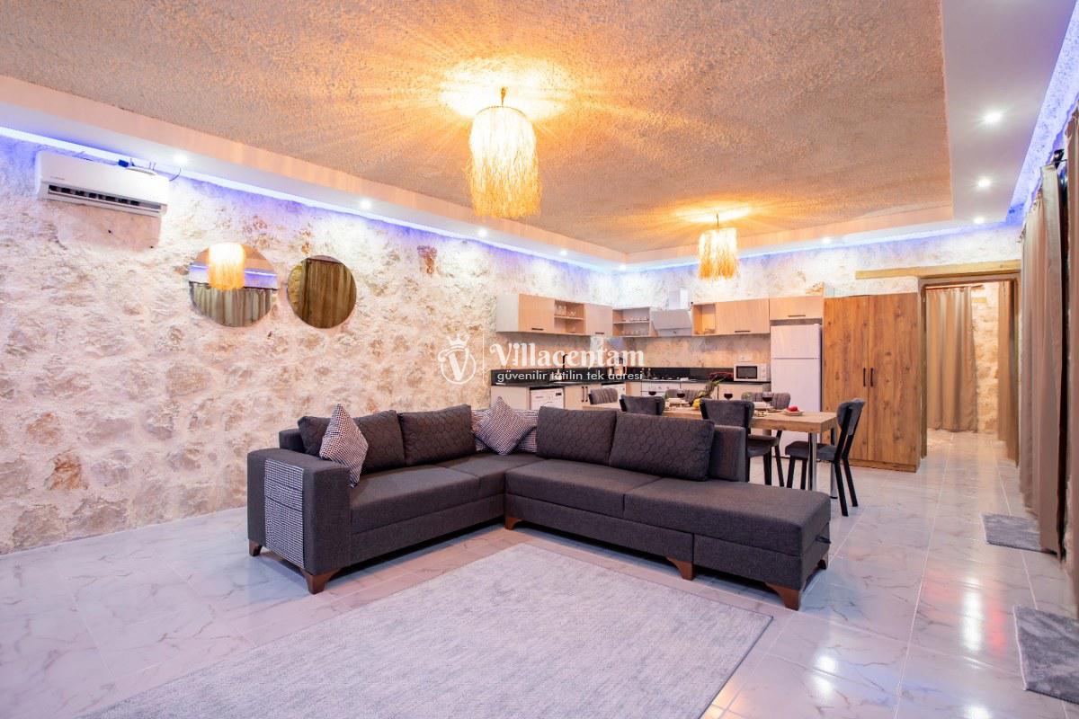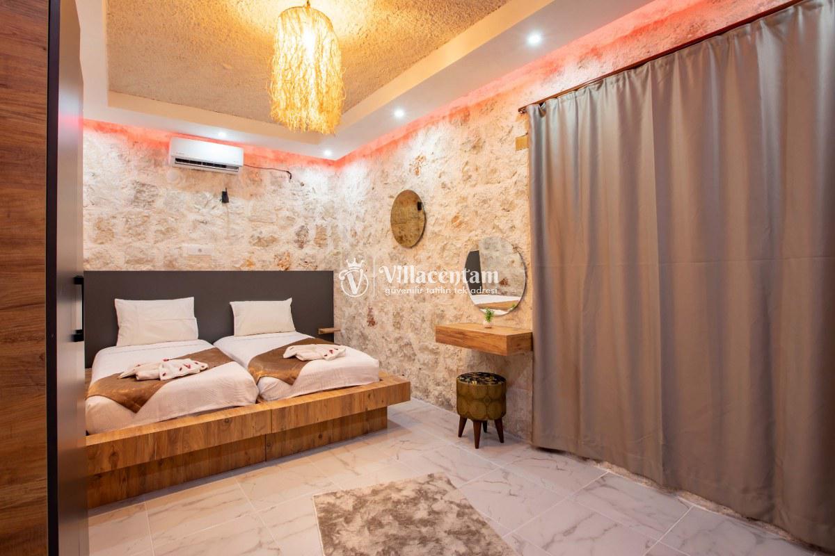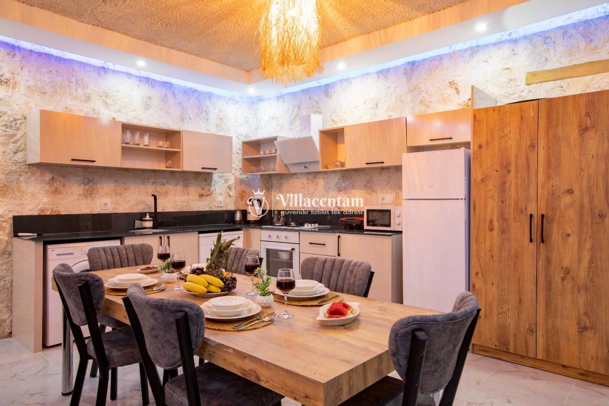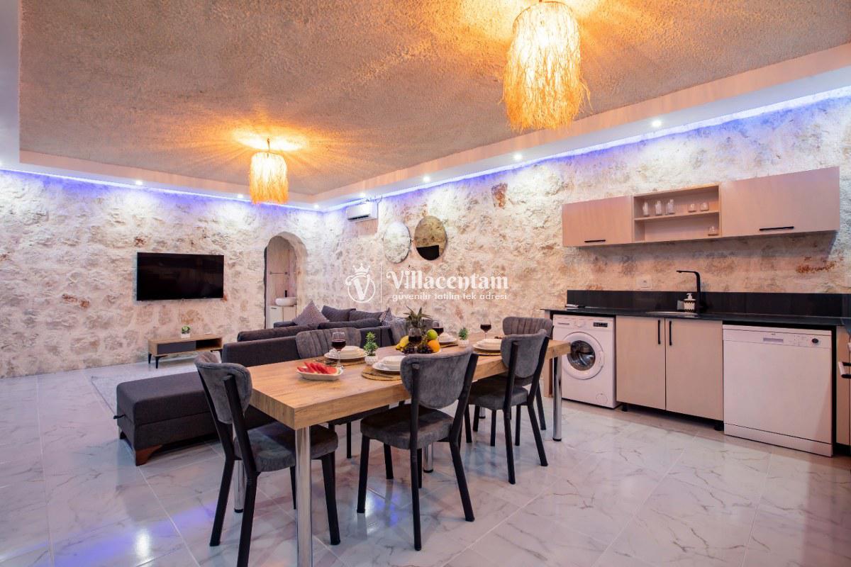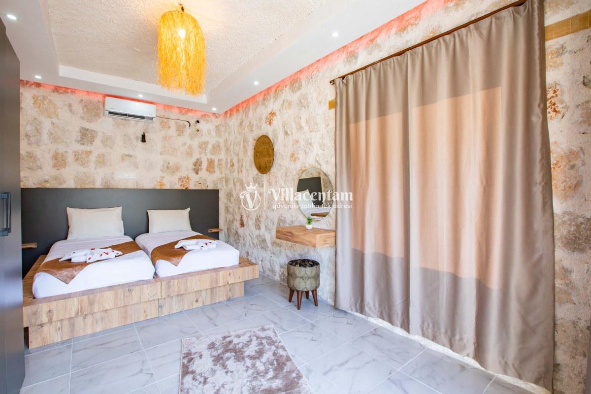 Villa Sunflower Tre, Kalkan Sarıbelen köyünde konumlanmakta olan yeşilliklerle kaplı doğa manzarasına hakim, taş yapı mimarisi ile otantik bir görünüme sahip kiralık villalarımız arasında yer almaktadır. Modern ve konforlu bir şekilde dekore edilen yazlık villamızda 2 adet yatak odası bulunmakta olup, 4 kişiye konaklama imkanı sağlamaktadır. Yatak odalarından bir tanesinin içerisinde tüm yılın vermiş olduğu yorgunluğu giderebileceğiniz jakuzi yer almaktadır. Her bir detayın en ince ayrıntısına kadar düşünüldüğü villamızda çocuklar için uygun mini oyun alanı mevcuttur. Havuz ve havuz terası korunaklı hale getirilen kiralık villamızı muhafazakar aileler, balayı çiftleri ve çekirdek aileler rahatlıkla tercih edebilirler. Sessizlik ve sakinlik içerisinde huzur dolu bir yazlık villada balayı tatili için Villa Sunflower Tre’ yi tercih edebilirsiniz.