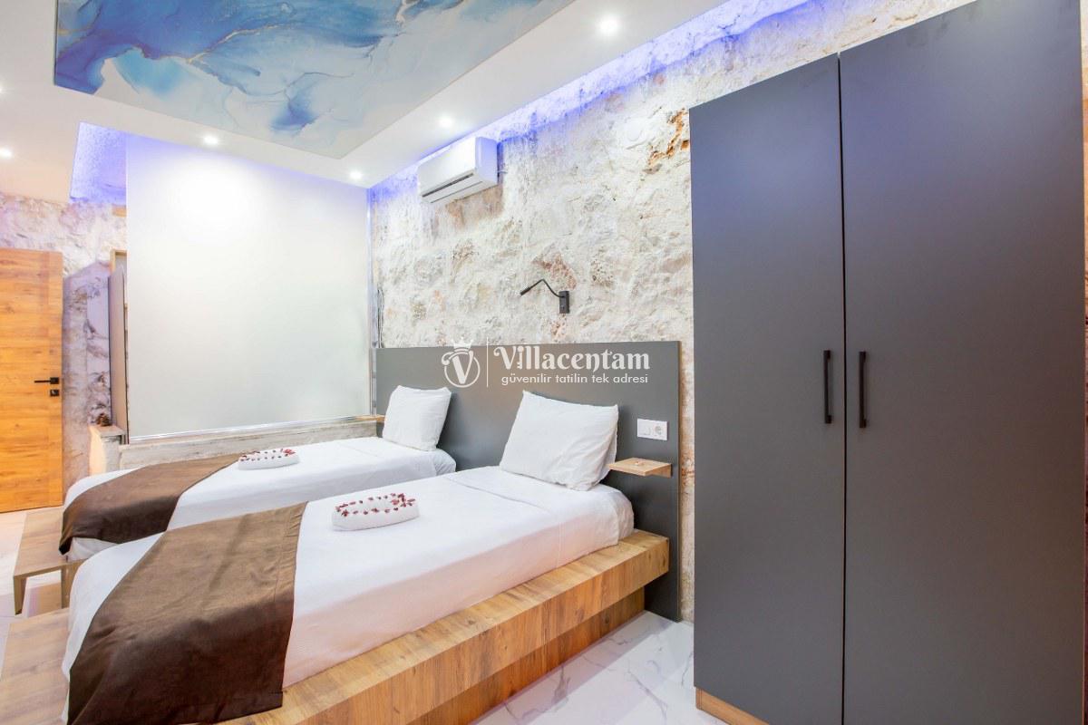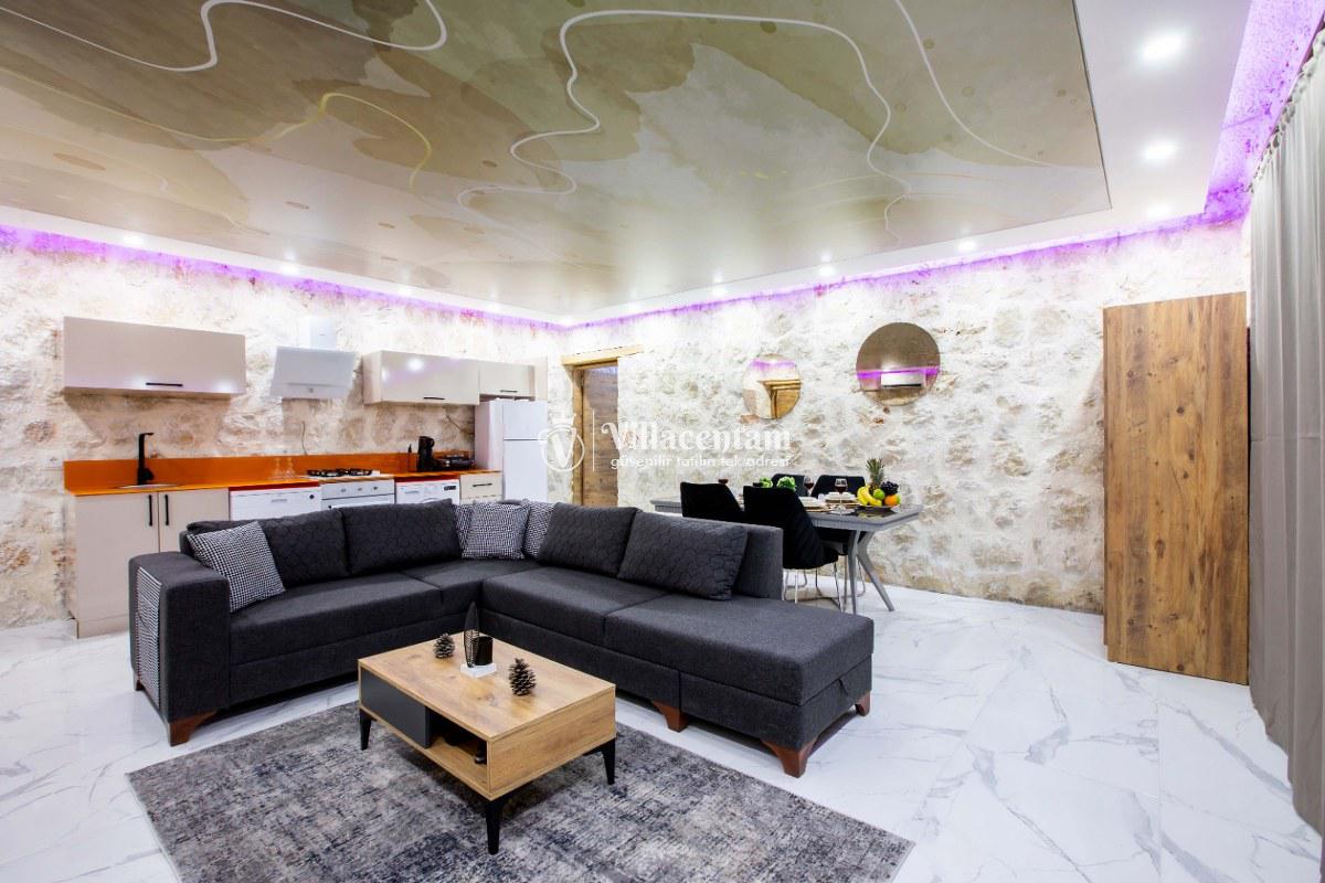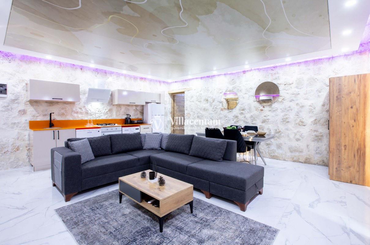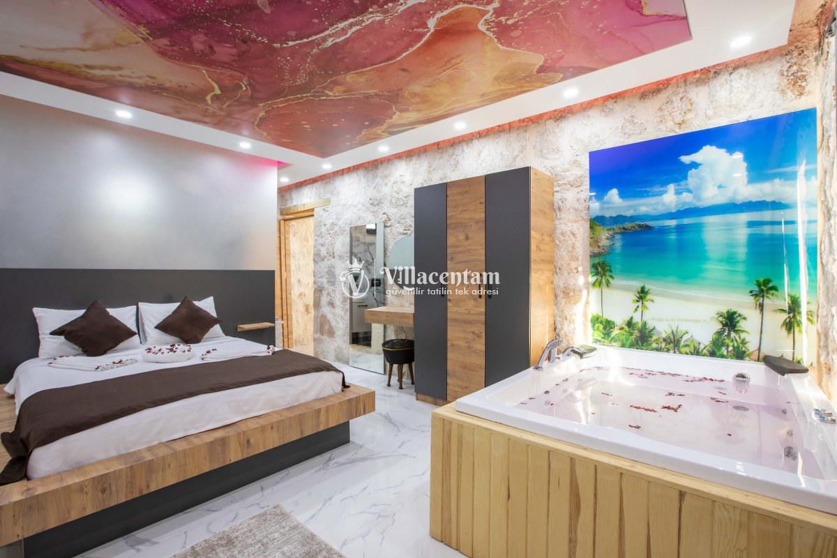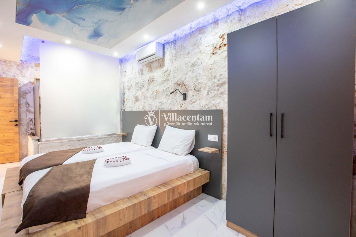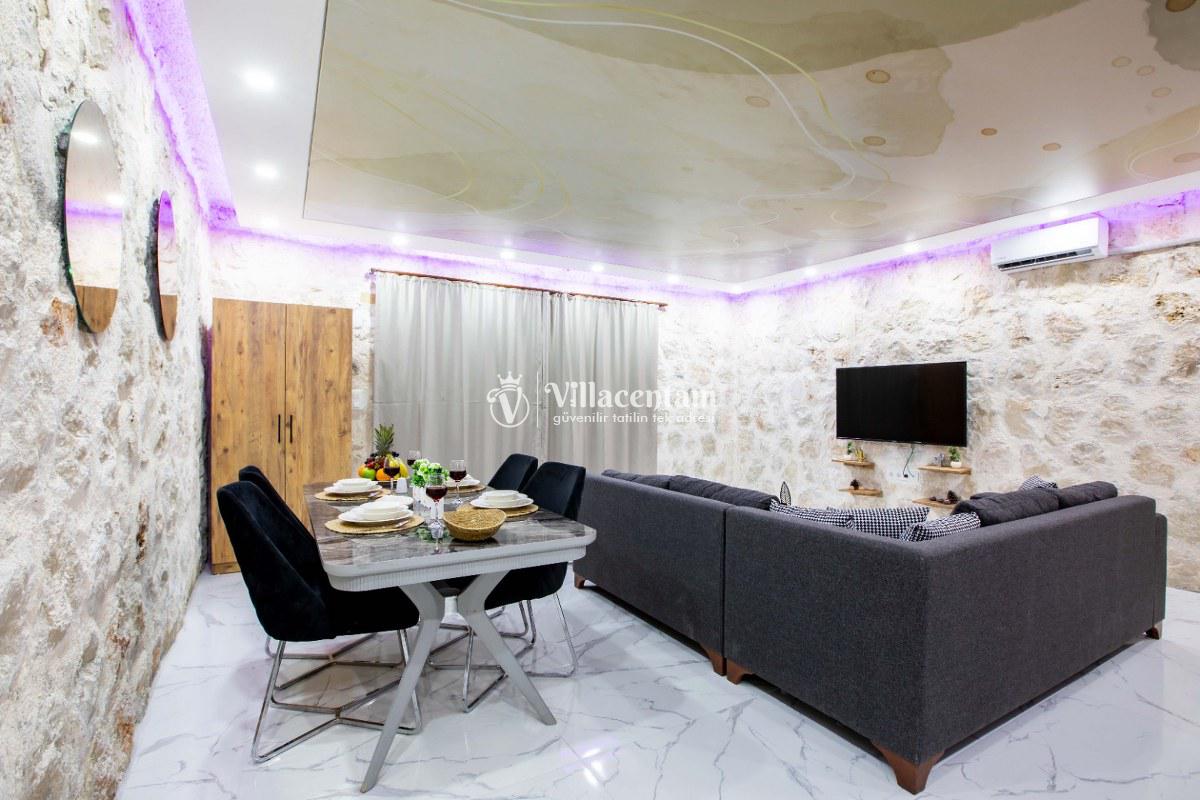 Villa Sunflower Uno, Kalkan Sarıbelen köyünde konumlanmakta olan yeşilliklerle kaplı doğa manzarasına hakim, taş yapı mimarisi ile otantik bir görünüme sahip kiralık villalarımız arasında yer almaktadır. Modern ve konforlu bir şekilde dekore edilen yazlık villamızda 2 adet yatak odası bulunmakta olup, 4 kişiye konaklama imkanı sağlamaktadır. Yatak odalarından bir tanesinin içerisinde tüm yılın vermiş olduğu yorgunluğu giderebileceğiniz jakuzi yer almaktadır. Her bir detayın en ince ayrıntısına kadar düşünüldüğü villamızda çocuklar için uygun mini oyun alanı mevcuttur. Havuz ve havuz terası korunaklı hale getirilen kiralık villamızı muhafazakar aileler, balayı çiftleri ve çekirdek aileler rahatlıkla tercih edebilirler. Sessizlik ve sakinlik içerisinde huzur dolu bir yazlık villada balayı tatili için Villa Sunflower Uno’ yu tercih edebilirsiniz.