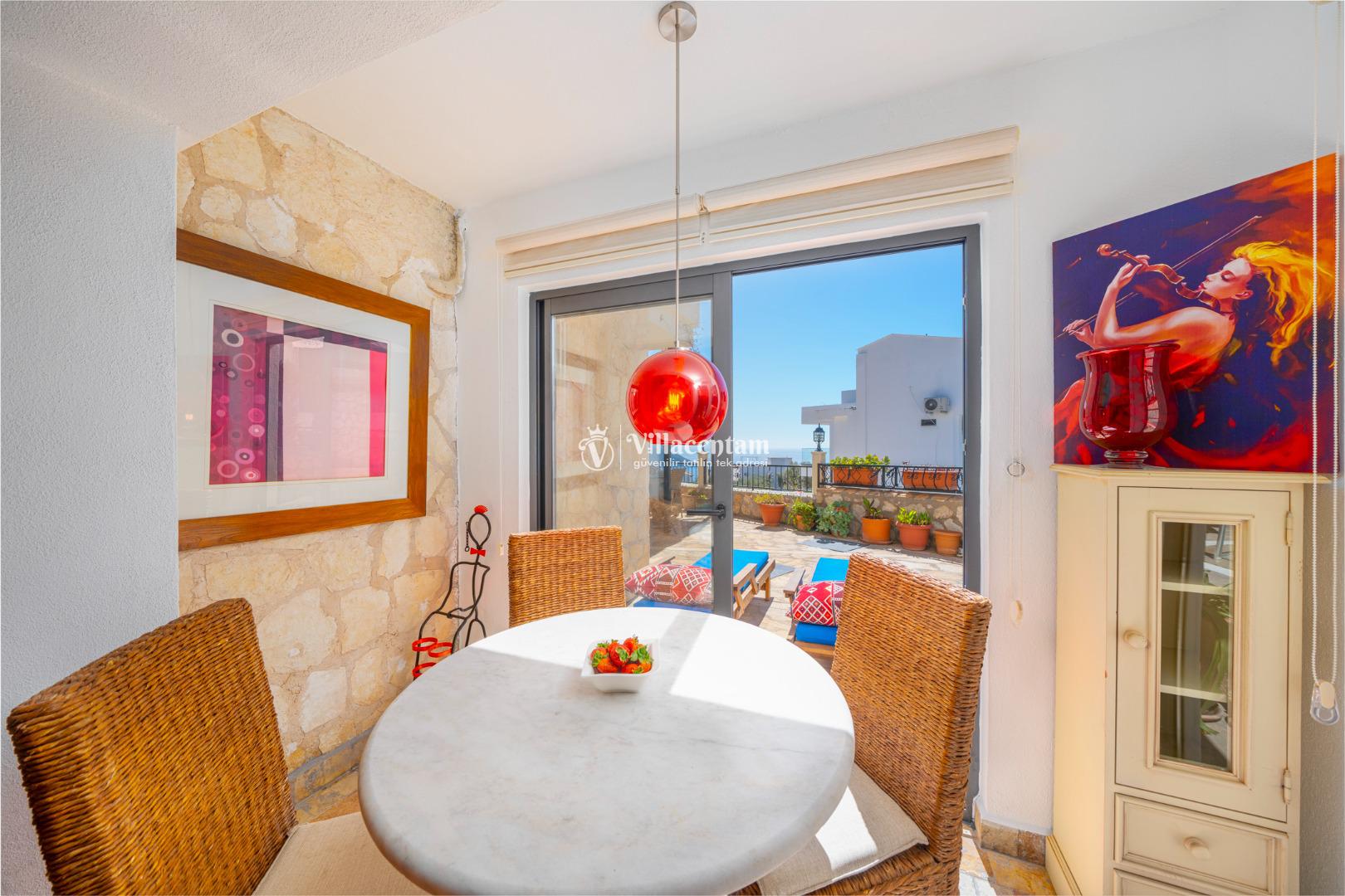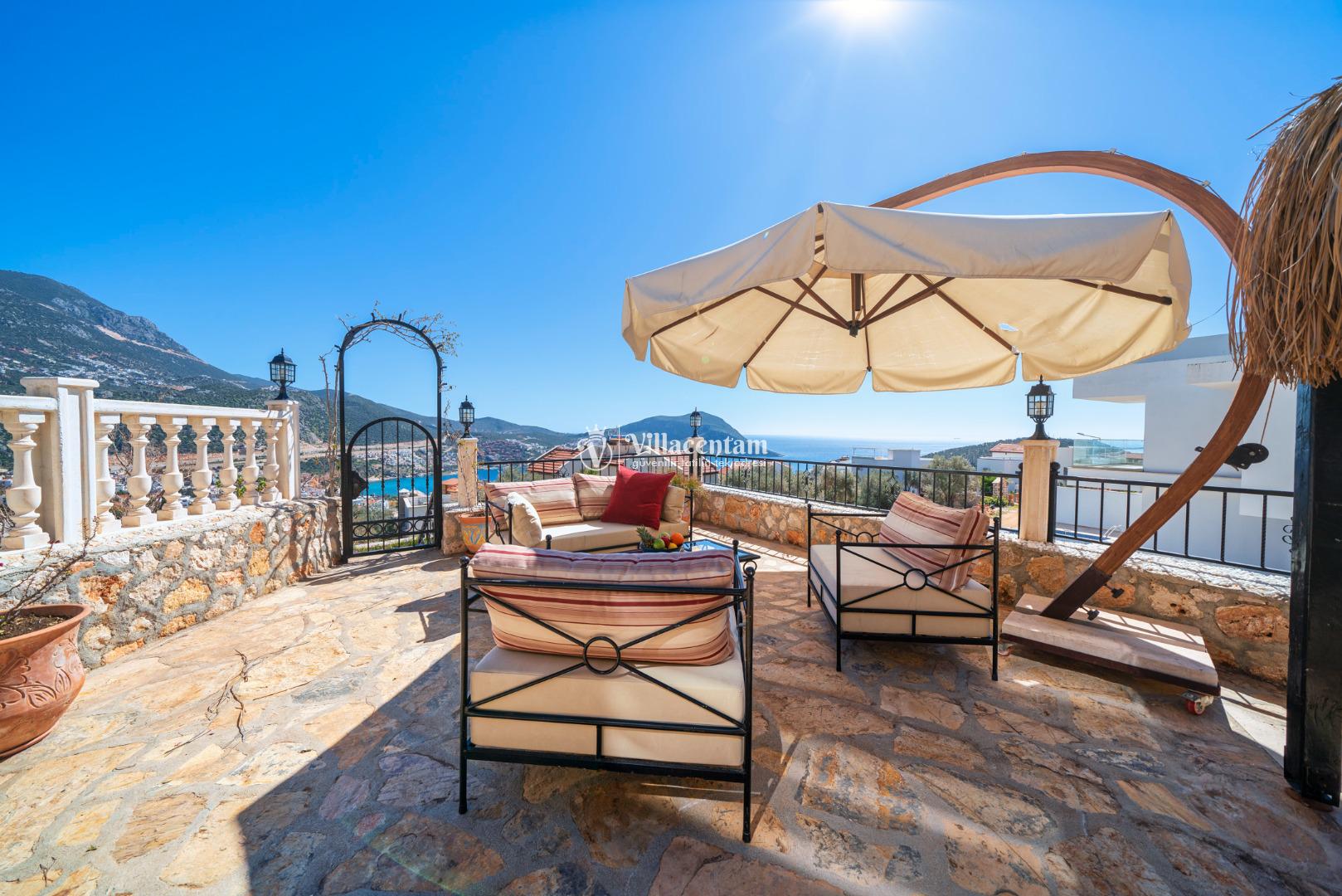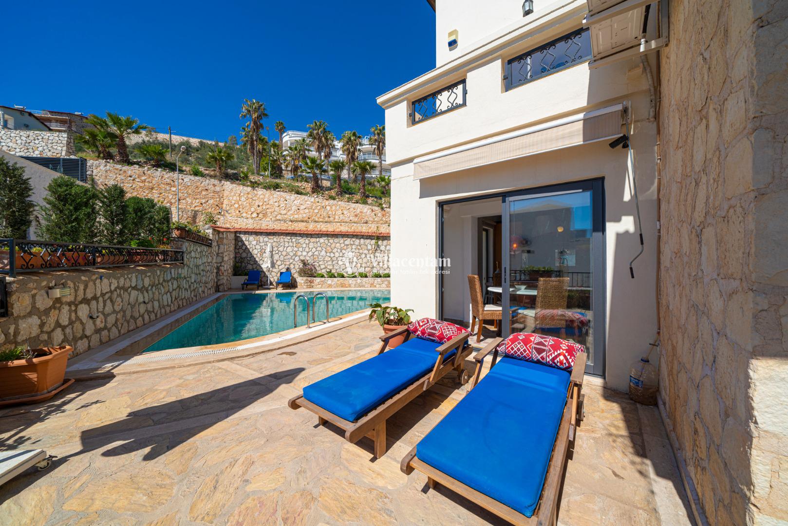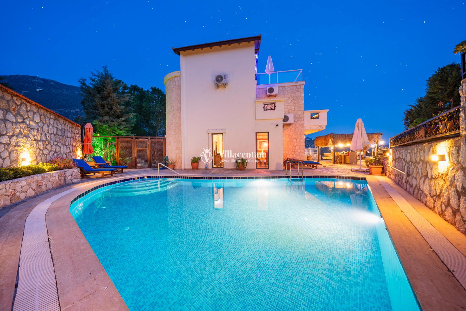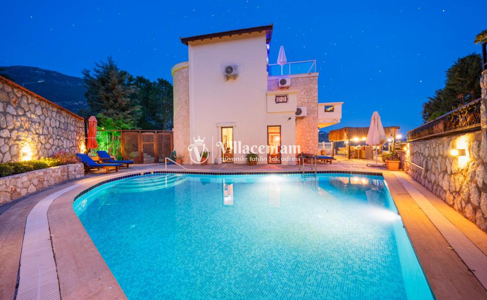 Kalkan Ortaalan mevkiinde konumlanmış olan Villa Tashla, 3 katlı lüks kiralık villalarımız arasında yer almaktadır. Deniz ve doğa manzarasına hakim olan villamız da sevdiklerinizle huzur dolu anların tadını çıkaracak ve tüm yorgunluğunuzu atacaksınız. Şık ve konforlu bir şekilde dizayn edilmiş olan kiralık villamızda 3 adet yatak odası bulunmakta olup, 6 kişi konaklayabilmektedir. Master süit yatak odasının içerisinde jakuzi de bulunmaktadır. Market ve restoranlara yürüme mesafesinedir. Havuz terası donanımlı ve ferahtır. Geniş aileler ve arkadaş grupları tercih edebilir ve heyecan dolu anların tadını çıkarabilirler.